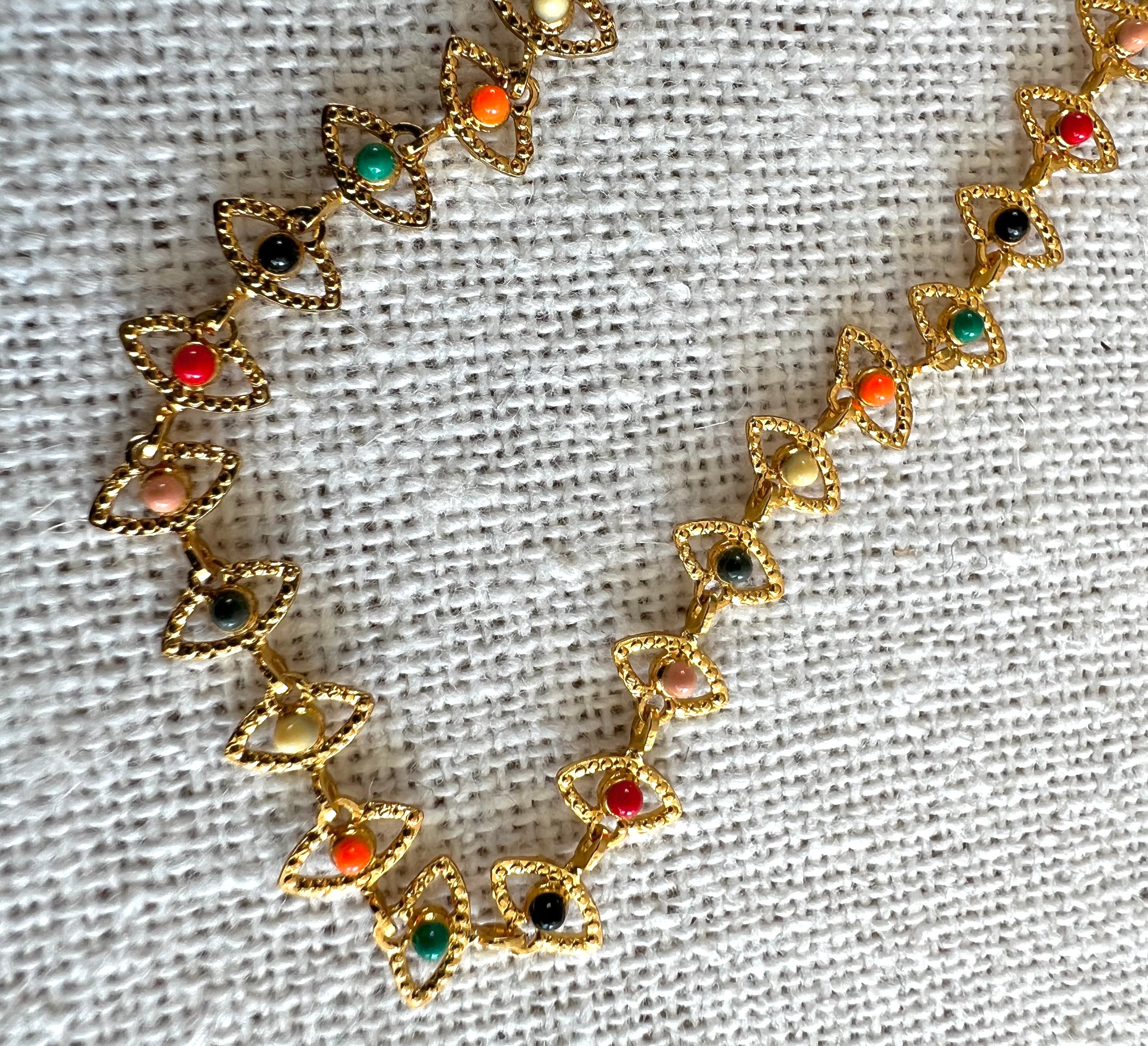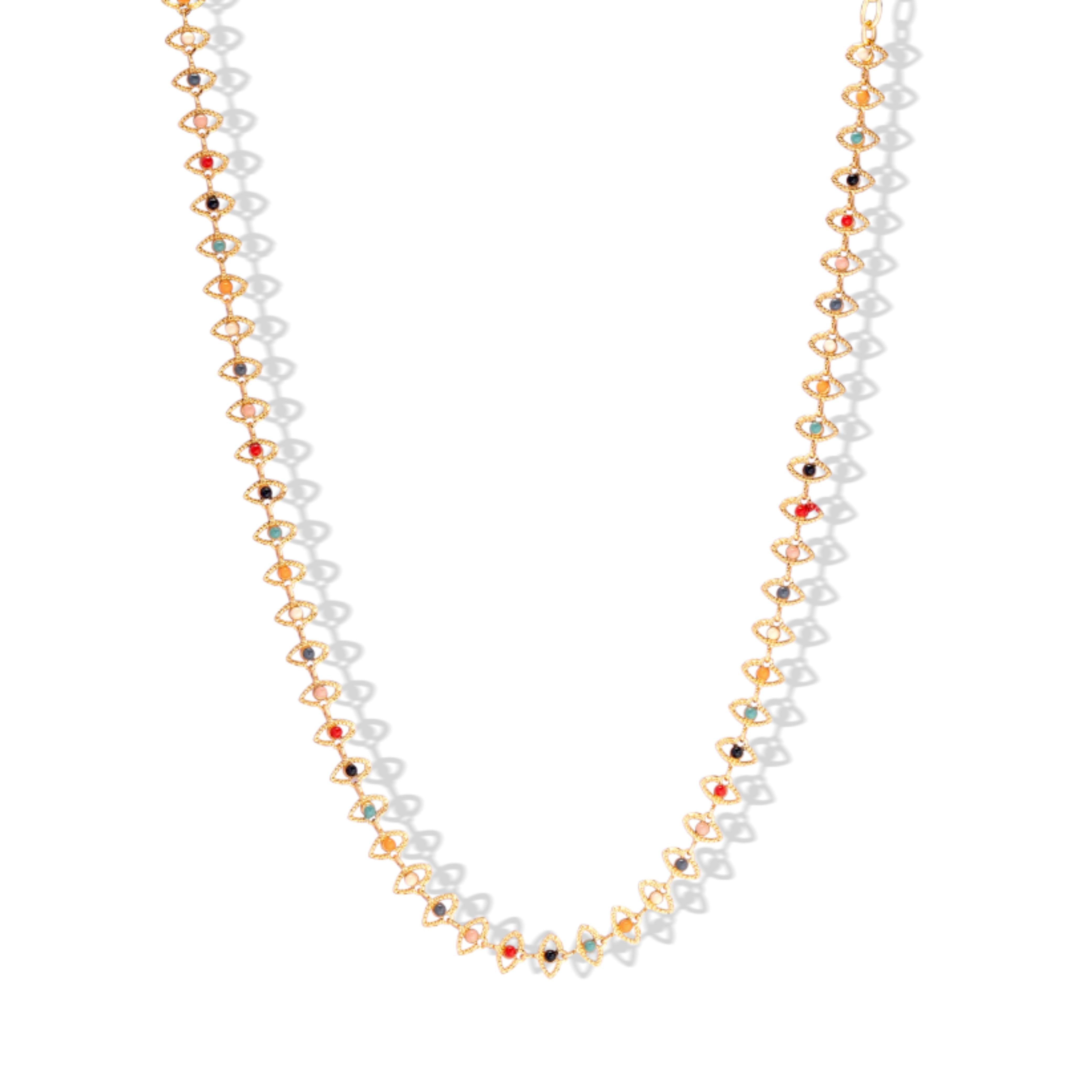 The new Eyezicle Necklace is the answer to your dainty gold chain evil eye rainbow necklace dreams.