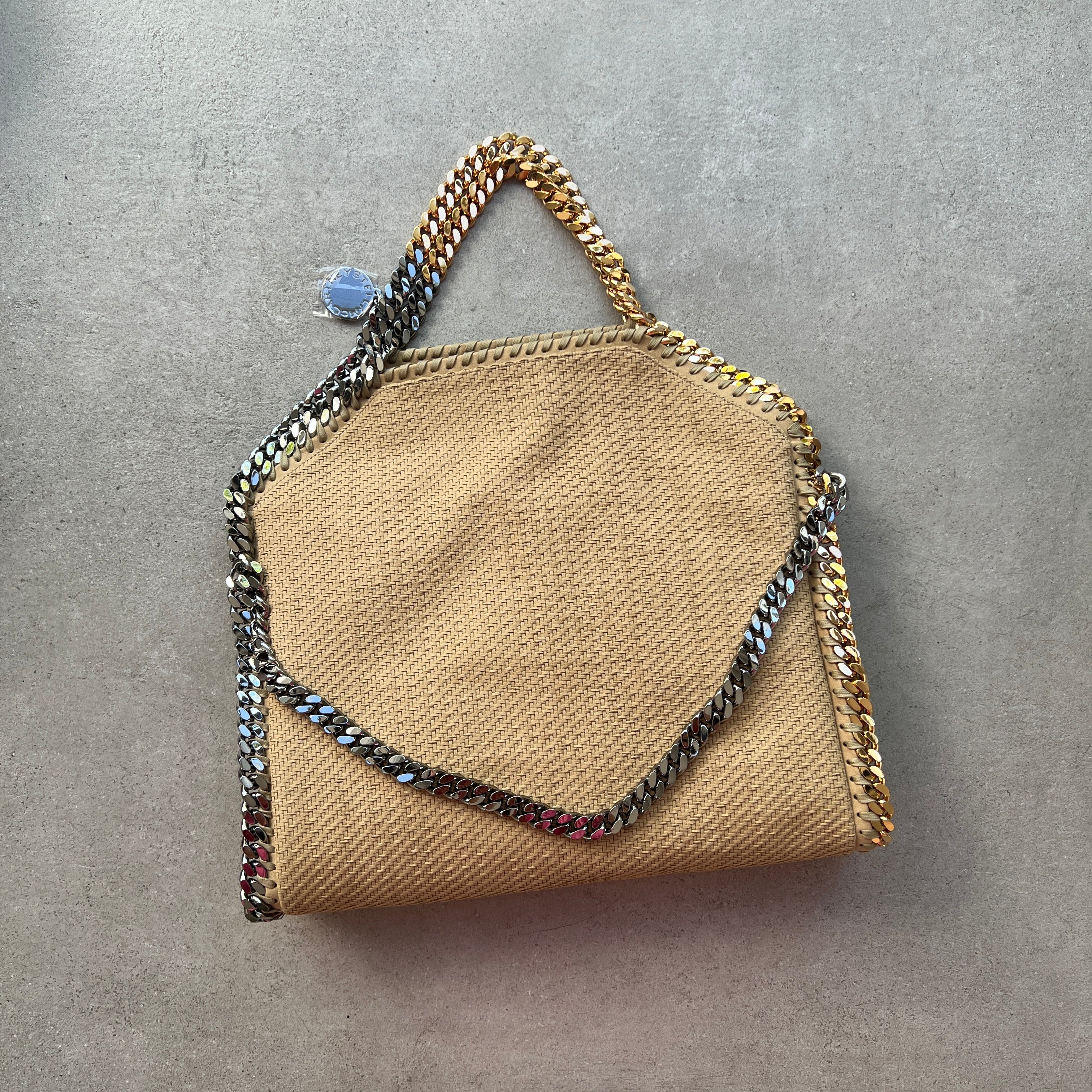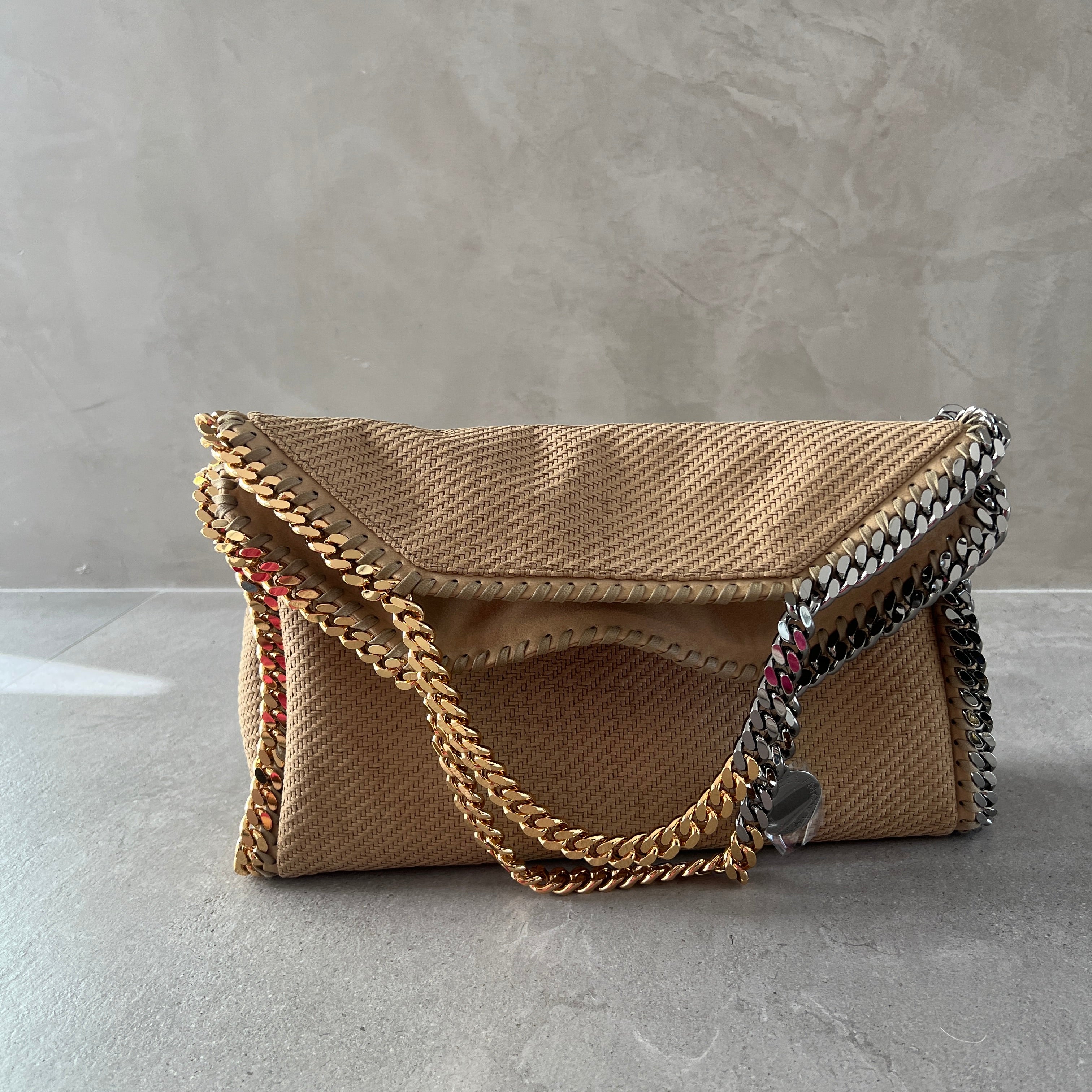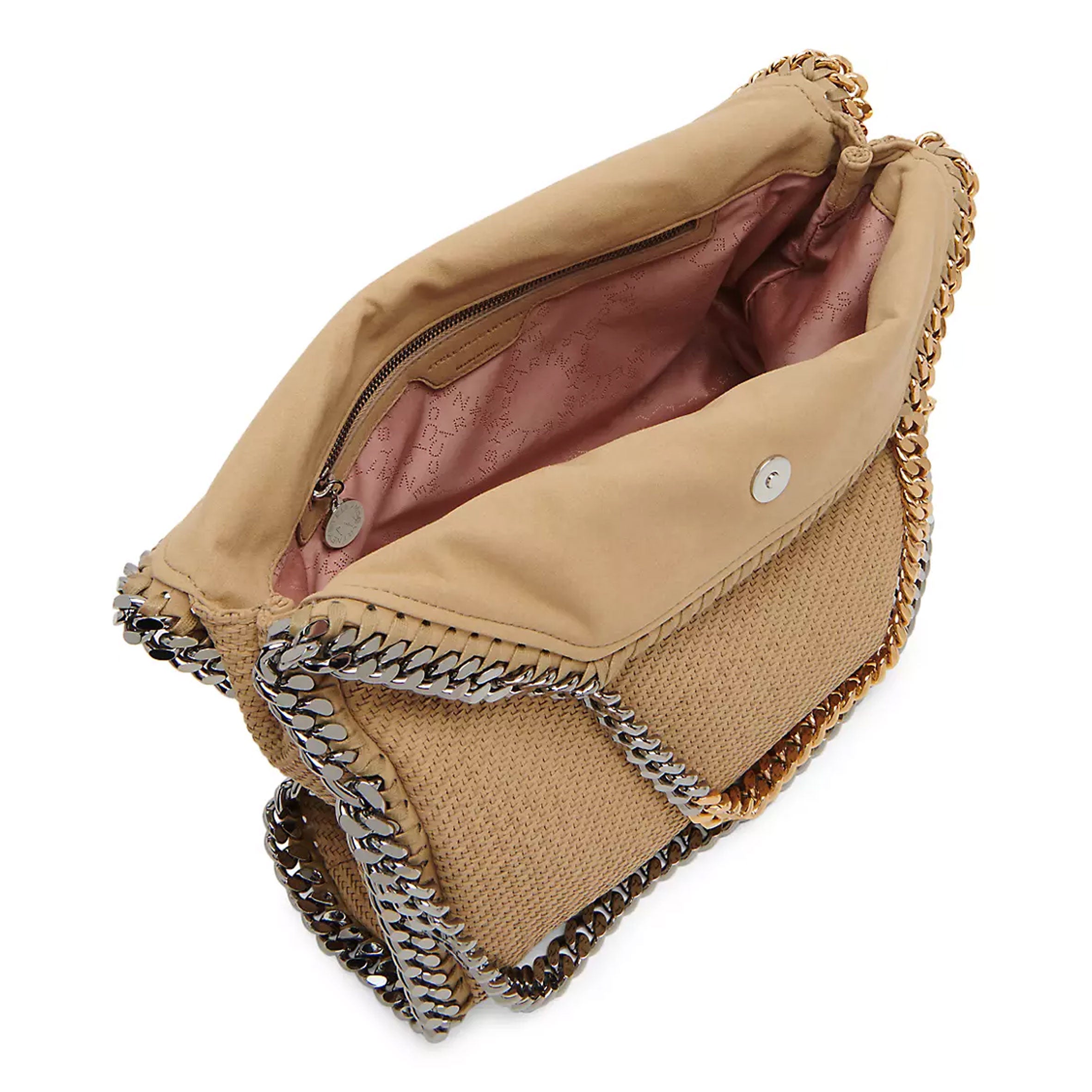 Falabella Large 3 Chain Tote Bag in Woven Suede, Light Camel