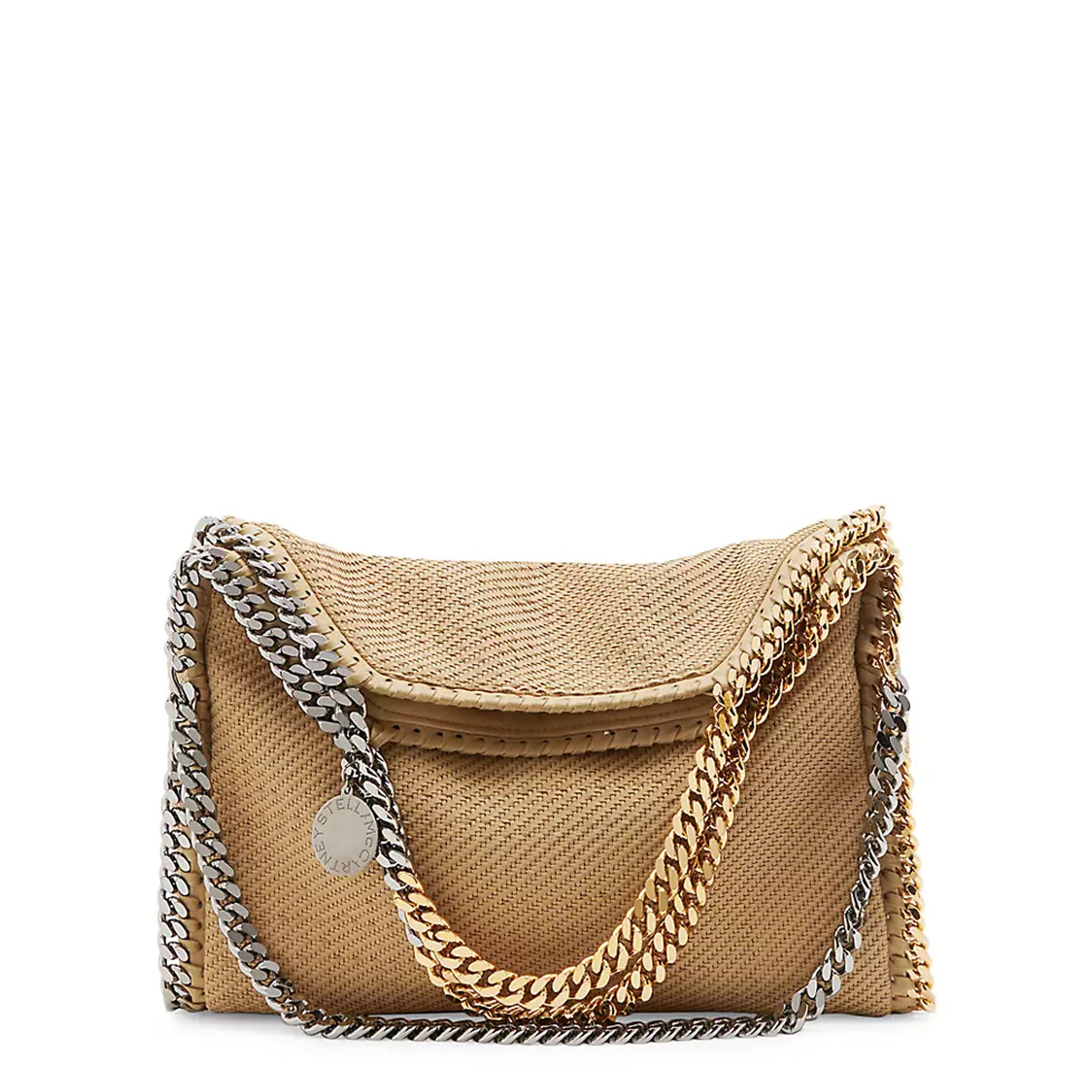 From the Falabella Collection. Rendered in a woven construction, this Stella McCartney tote bag is styled with two-tone chain-link hardware and a circular logo-engraved charm.