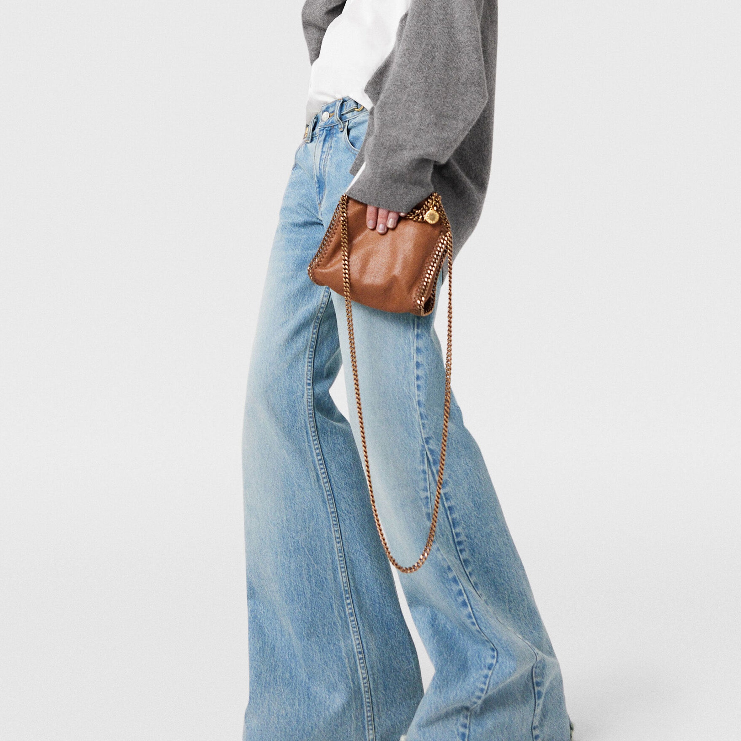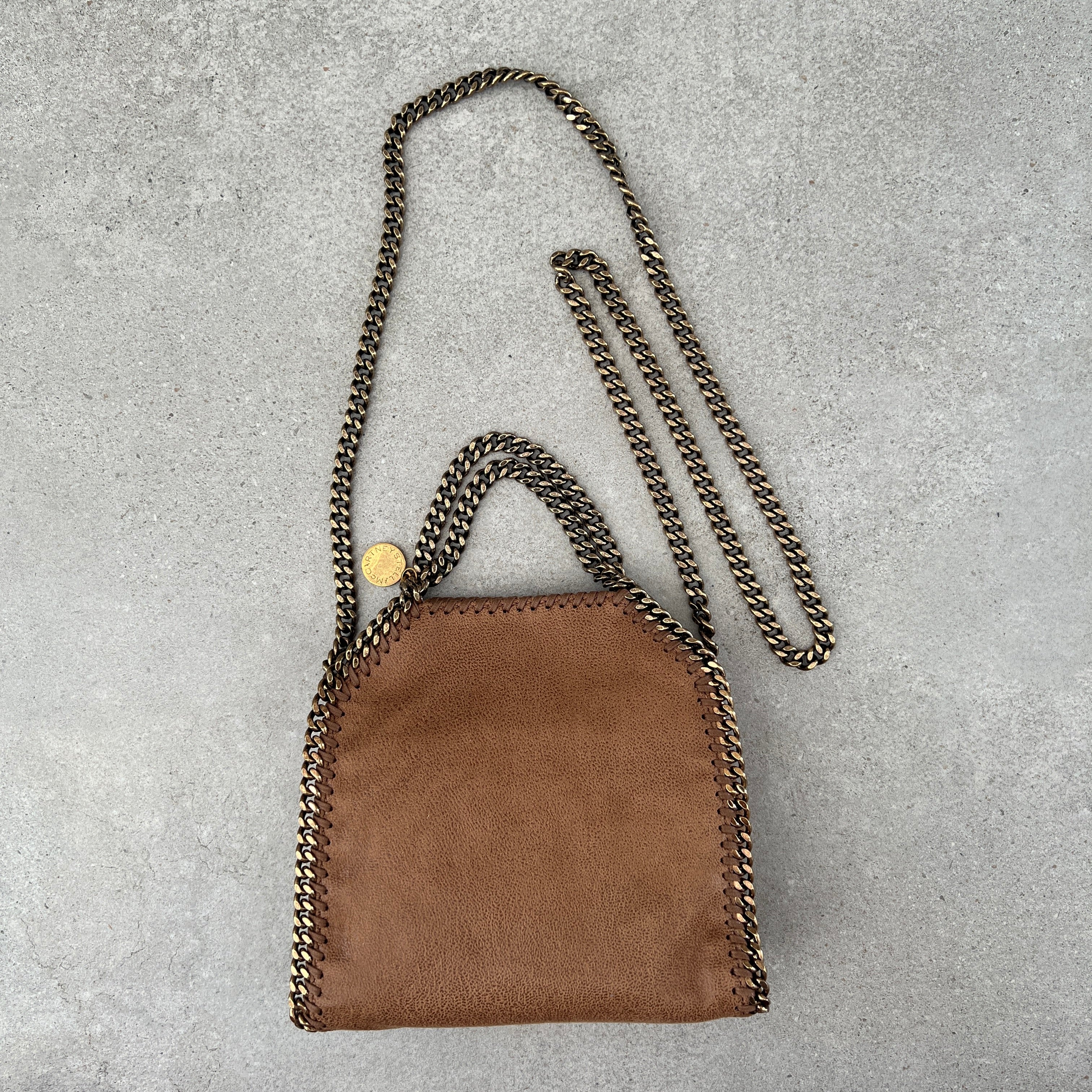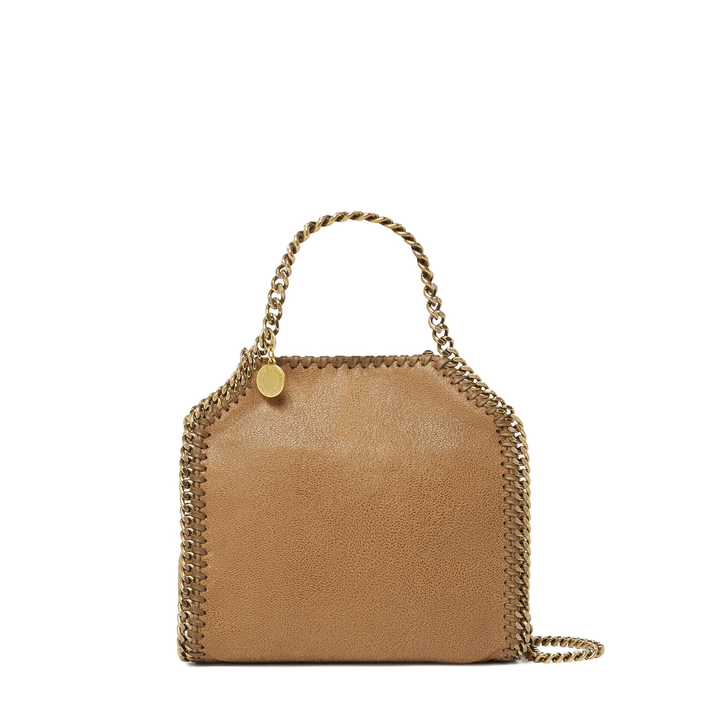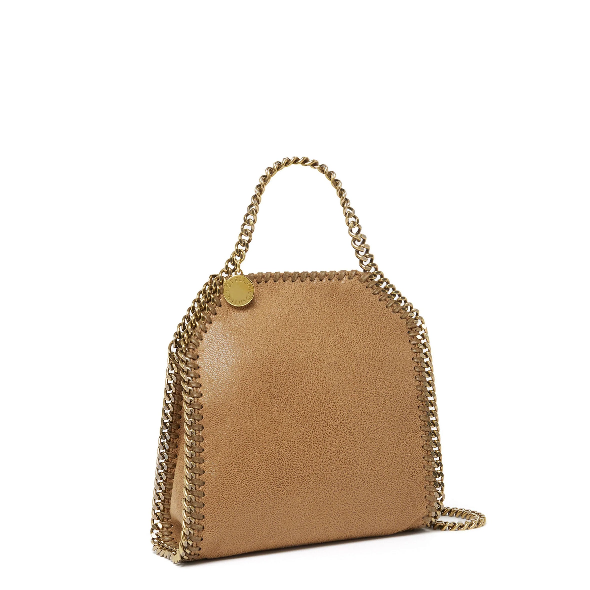 Characterised by its slouchy silhouette and diamond-cut chain, the Falabella tiny tote bag is a diminutive version of an icon. The tote bag is made from grained vegan Shaggy Deer fabric with a logo-patterned lining – made from recycled materials – and a slip pocket to organise the essentials.