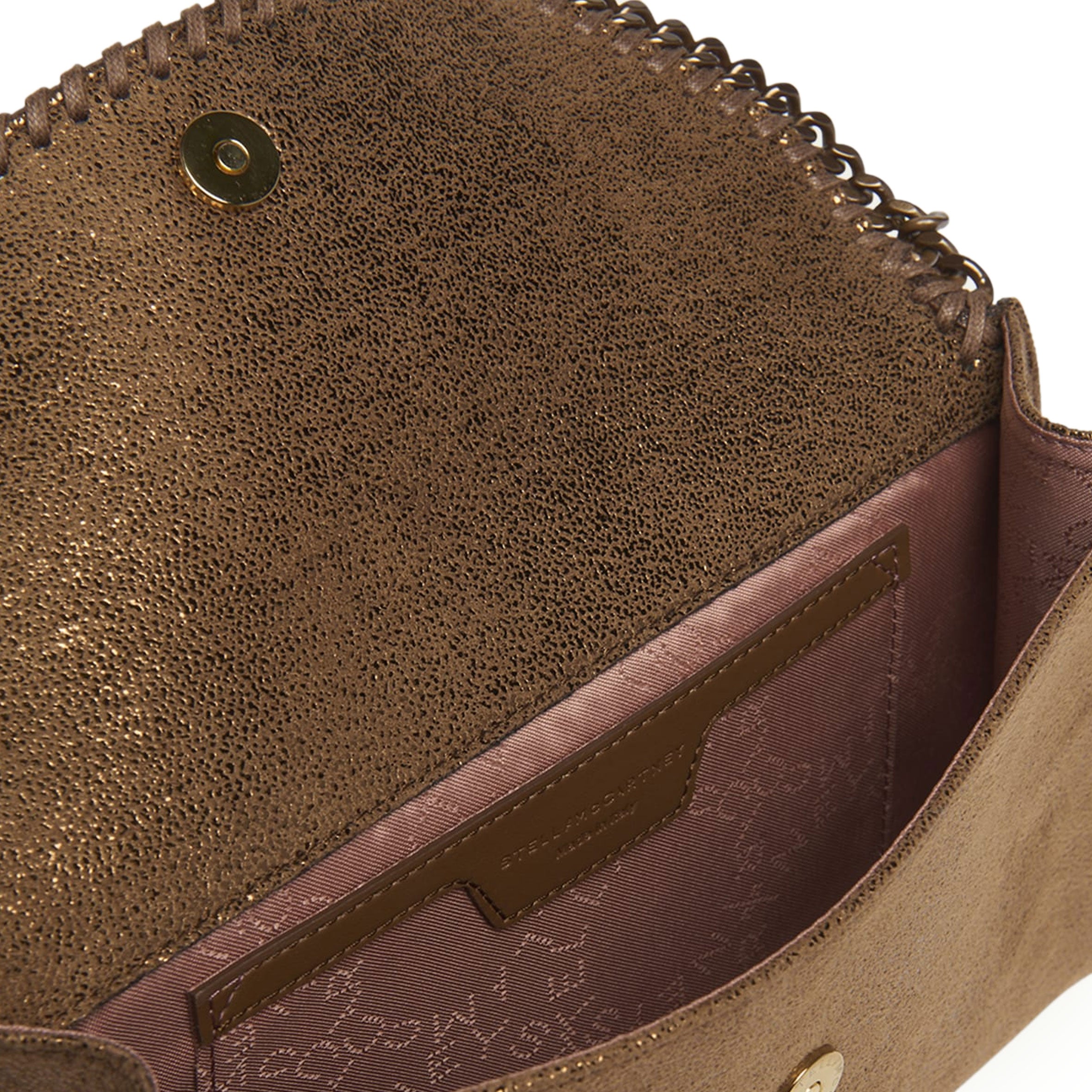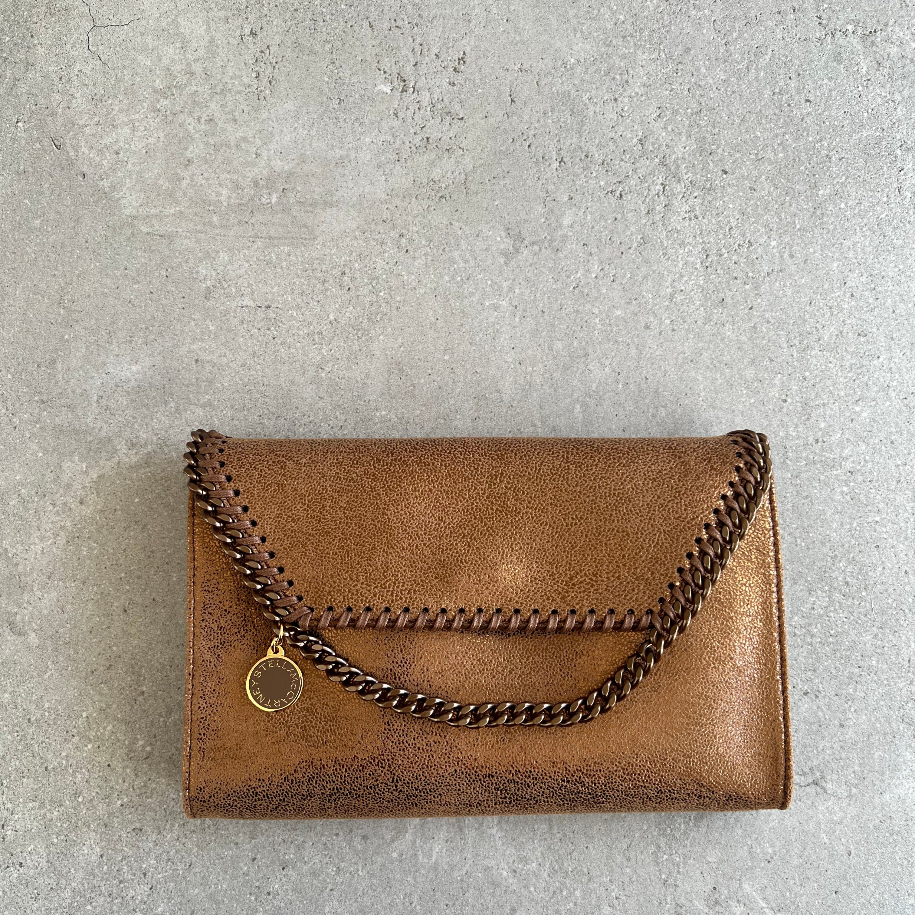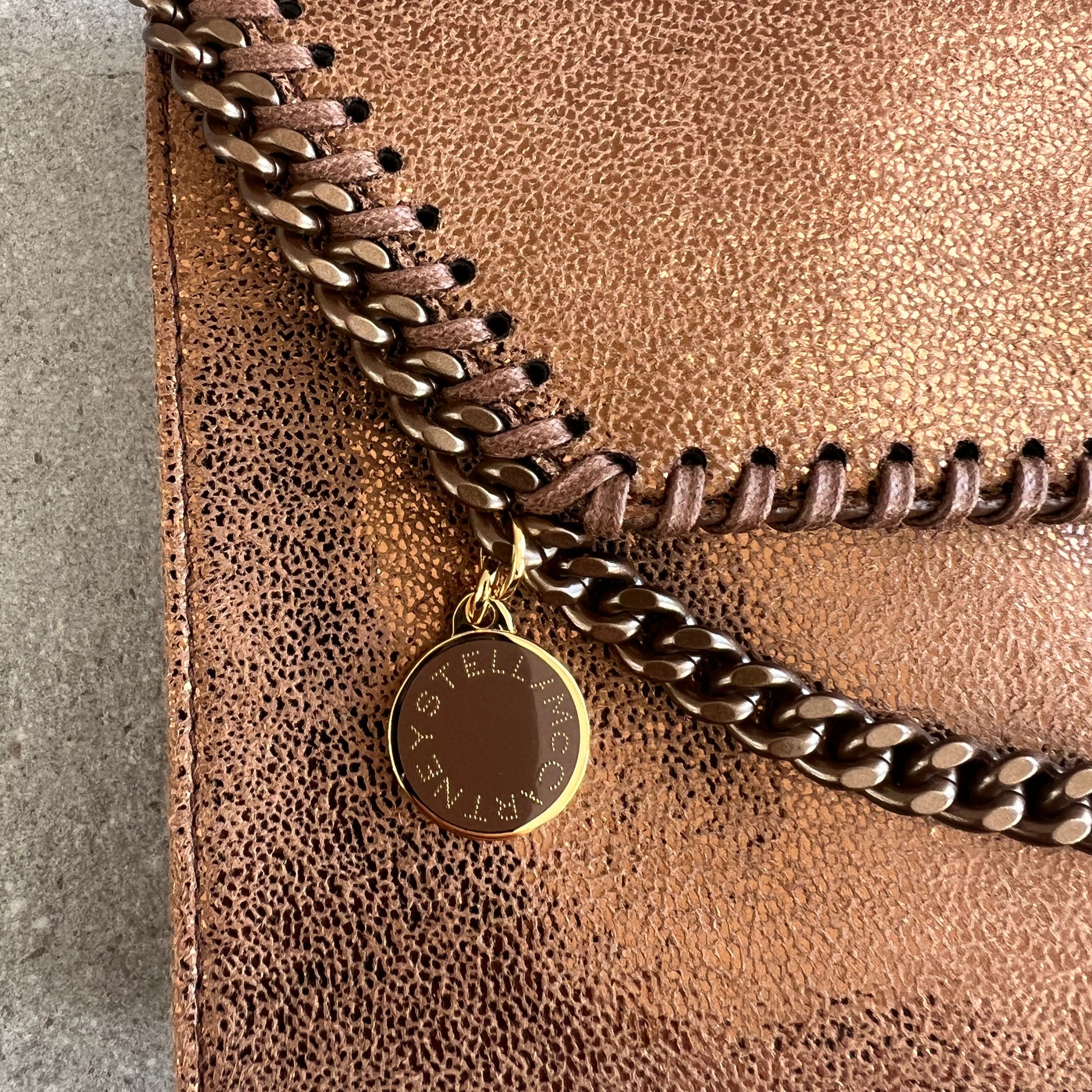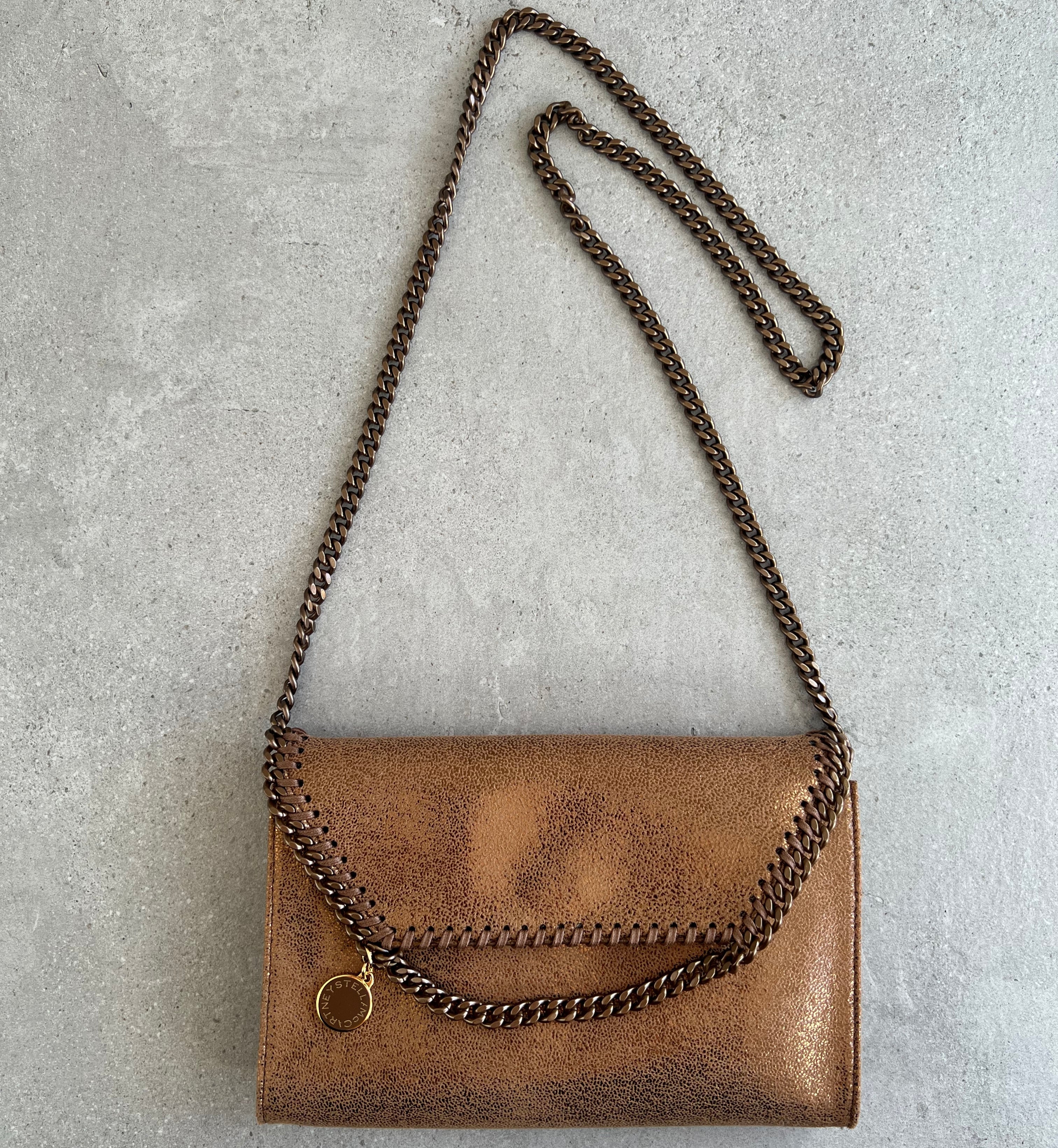 The bag is elevated with high-shine gold hardware, a long chain strap and a flap front for round-the-clock appeal. Framed with the iconic diamond-cut Falabella chain, the bag strikes a dichotomy of soft and tough lines.