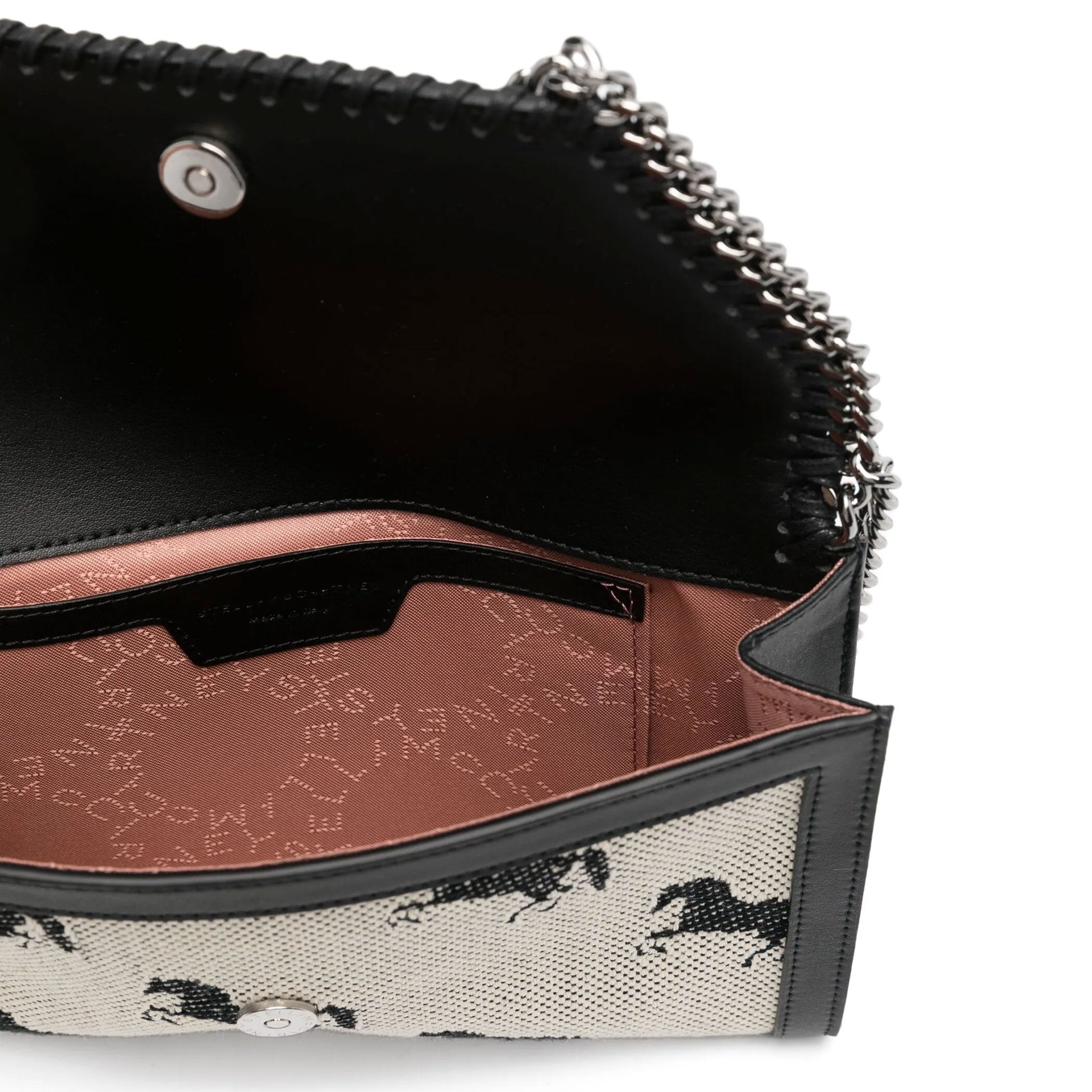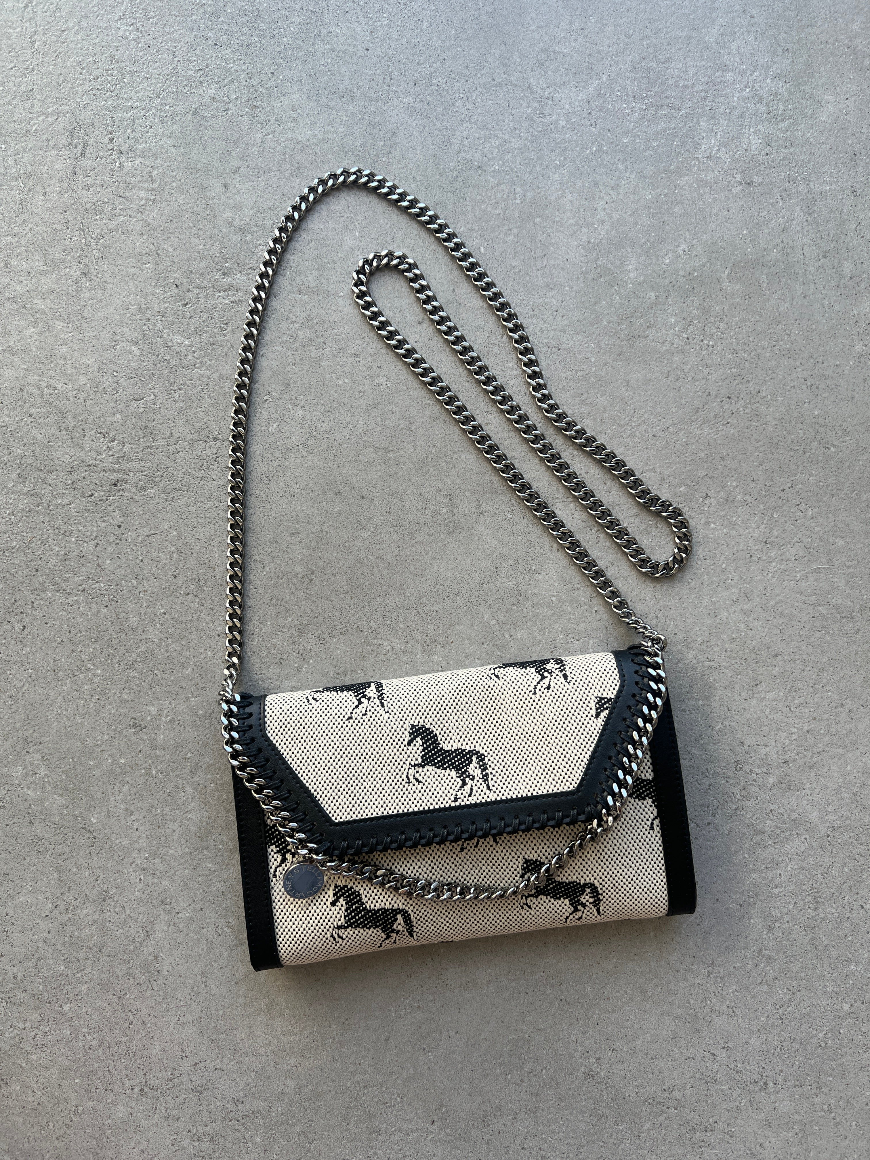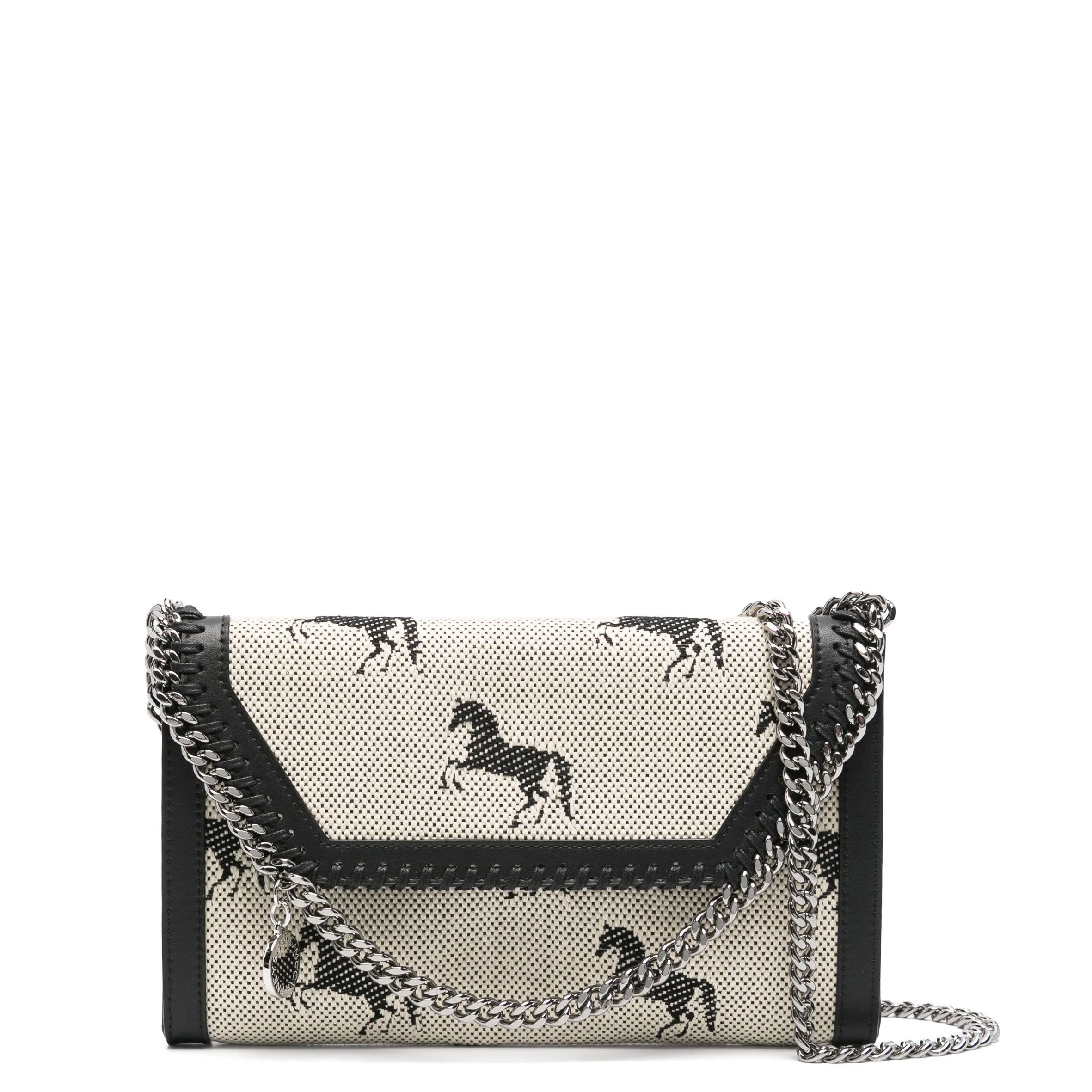 The iconic Falabella Clutch/cross body bag updated with a Horses Jacquard Fabric.