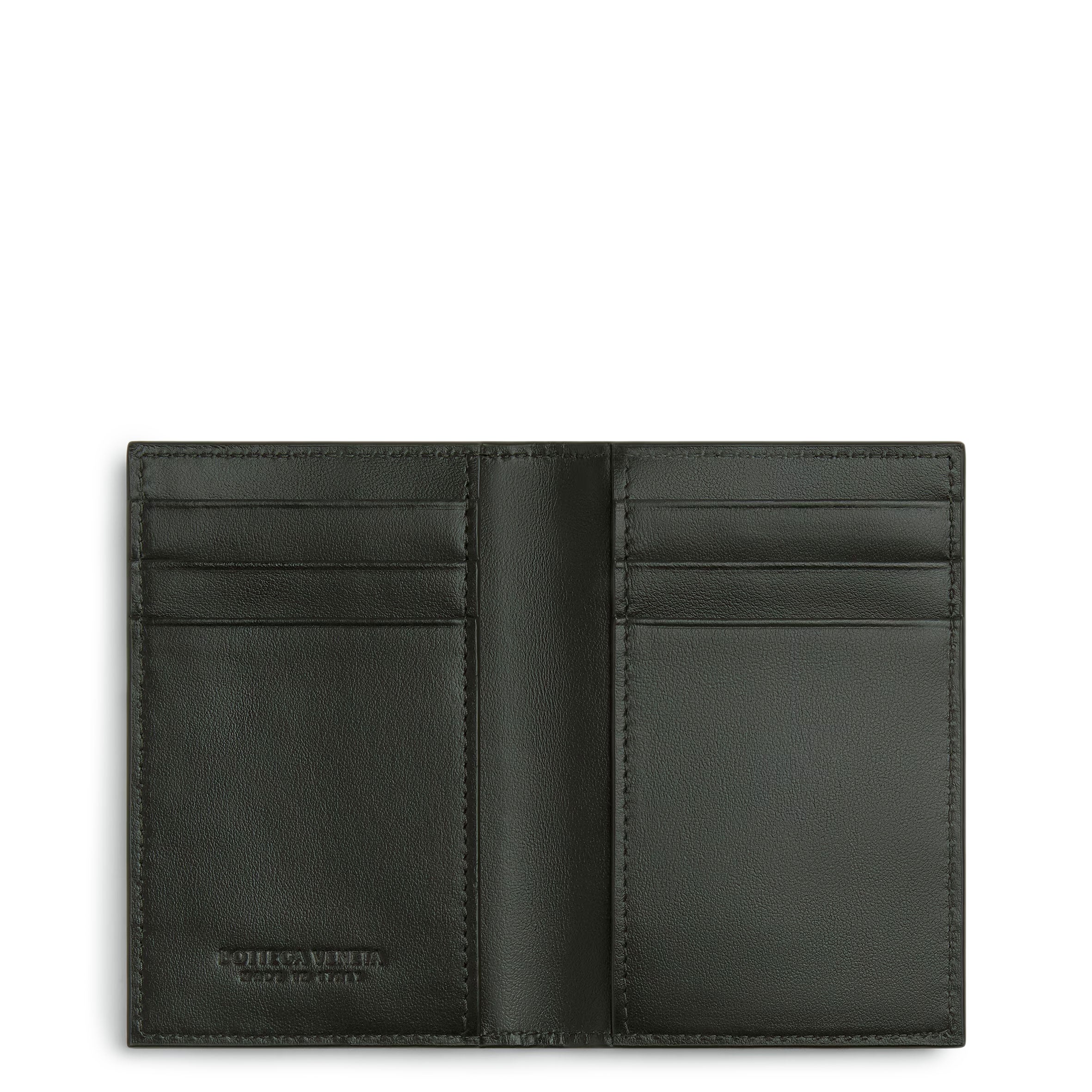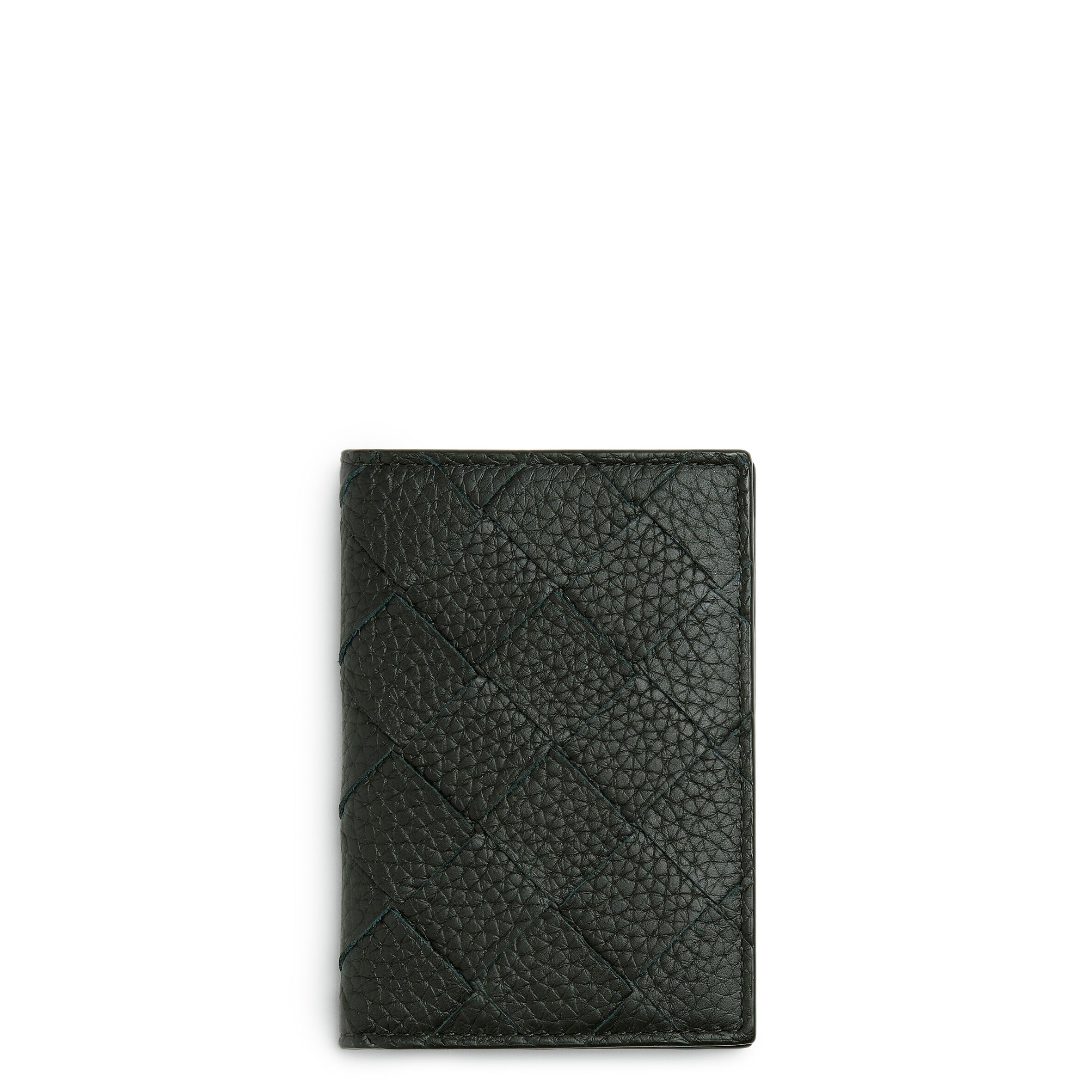 Grained Intrecciato calfskin leather card case with six card slots, two additional pockets