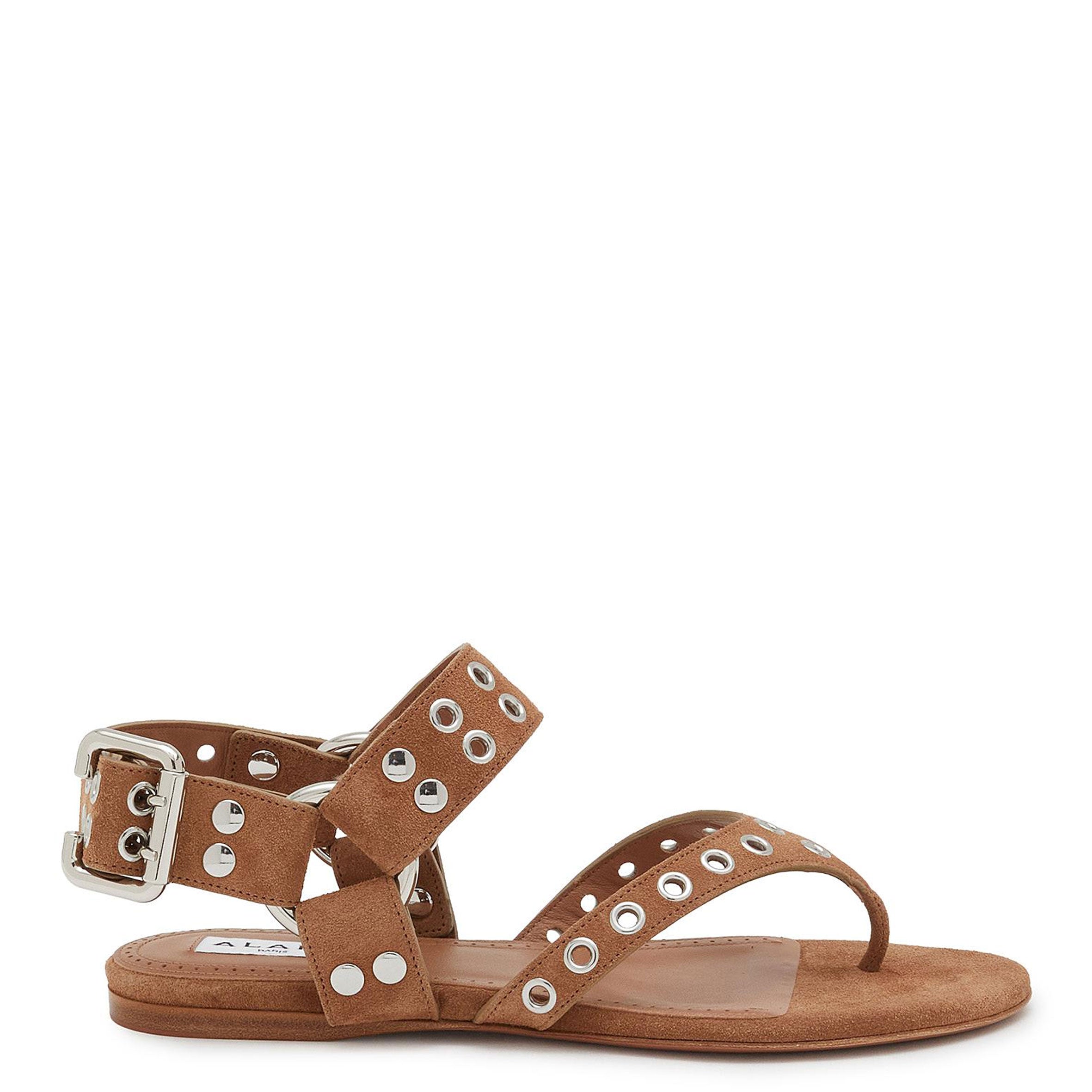 Flat Eyelet Stud Thongs Suede, Terre D'Ombre