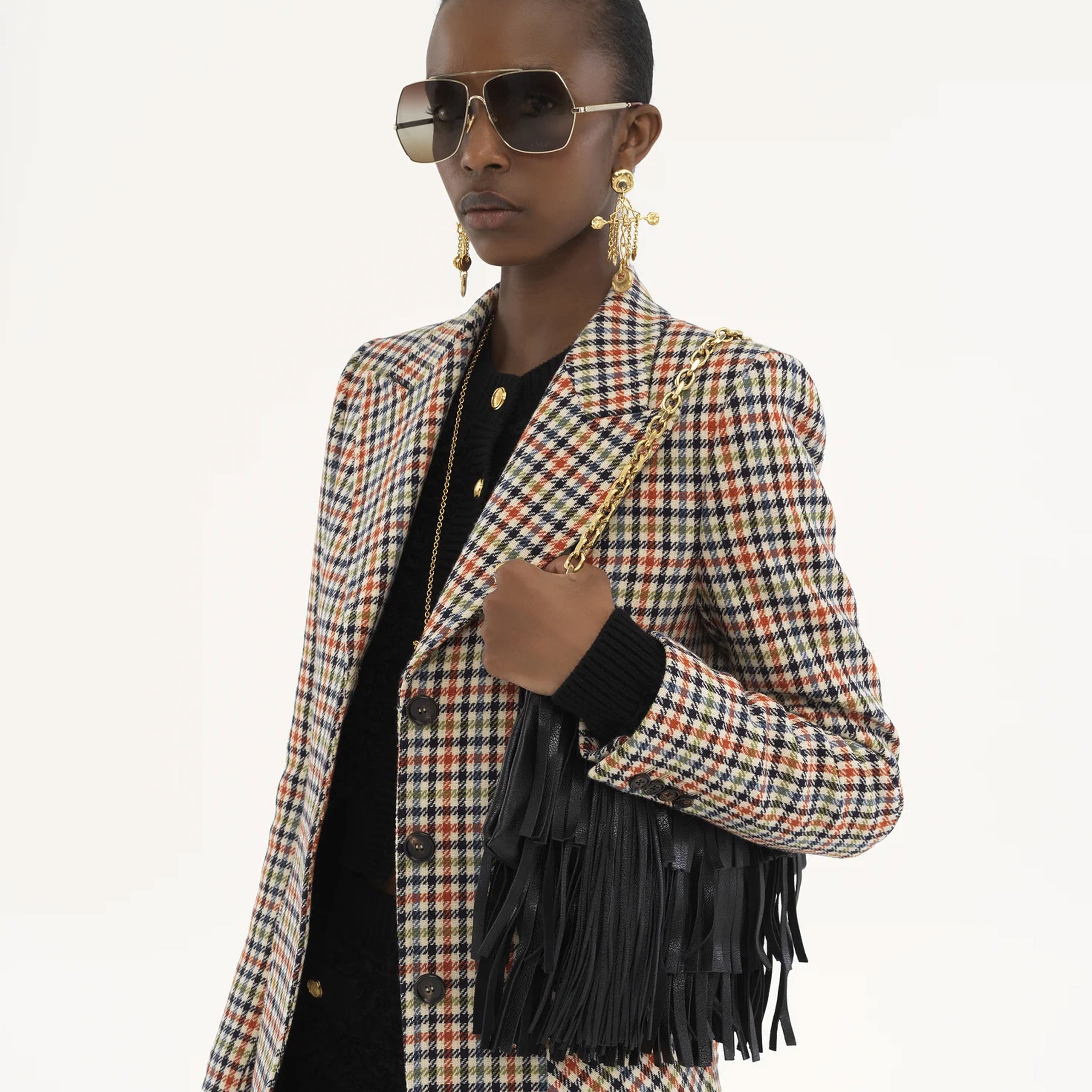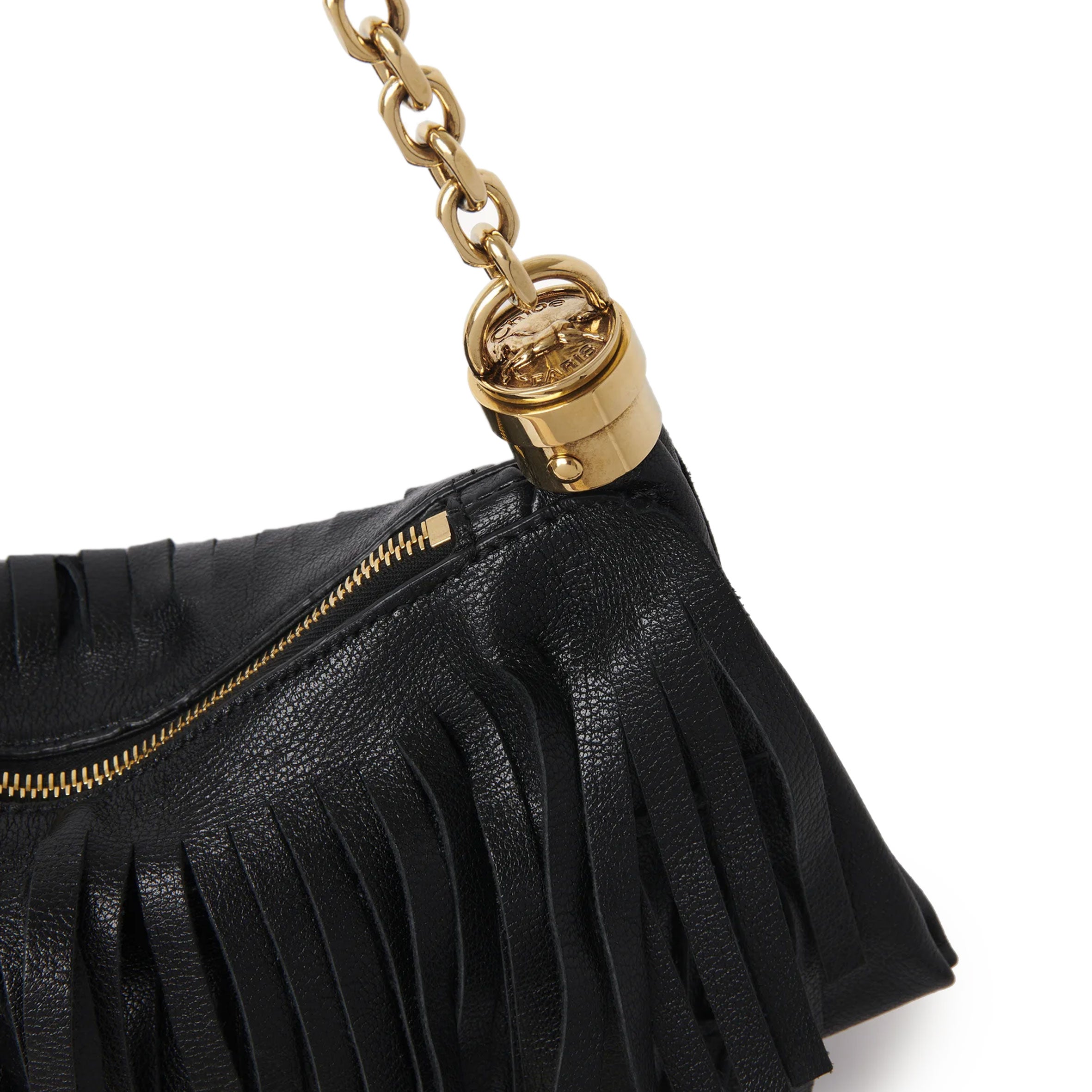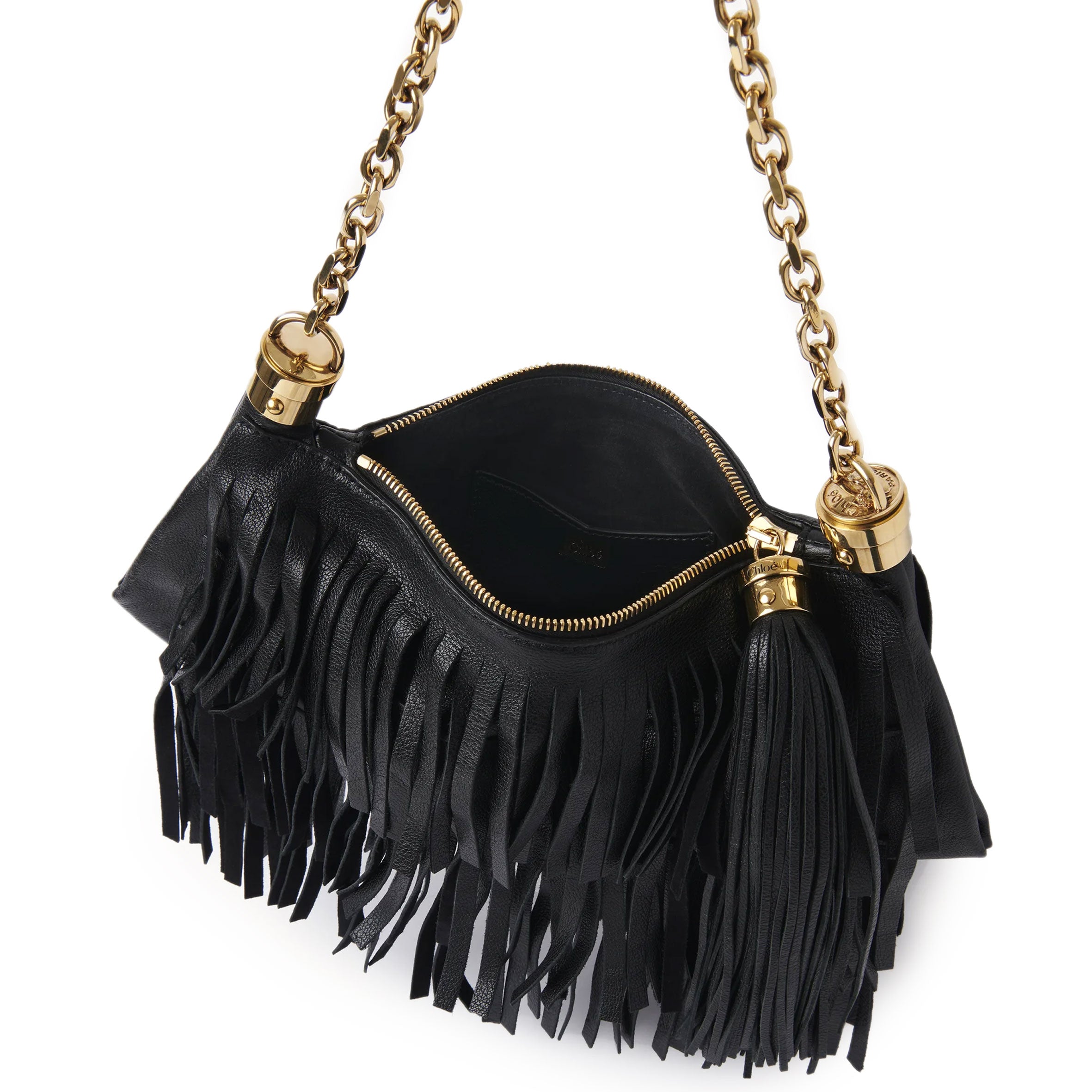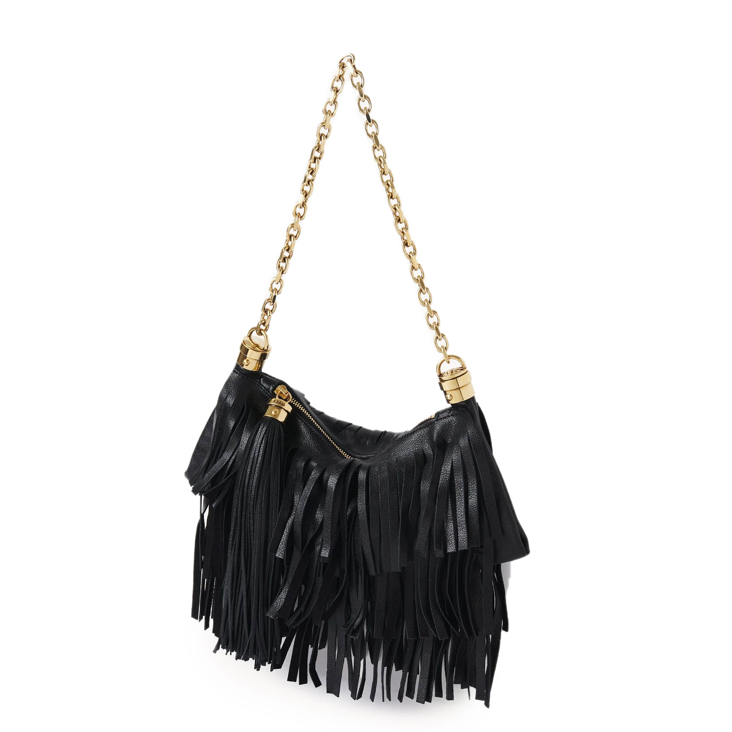 The small Chloé Foulard shoulder bag is crafted from buffalo leather with layers of fringes inspired by the drape of a scarf. This compact bag is finished with an oversized tassel, chain strap and the Maison's signature Horse Medal hardware.