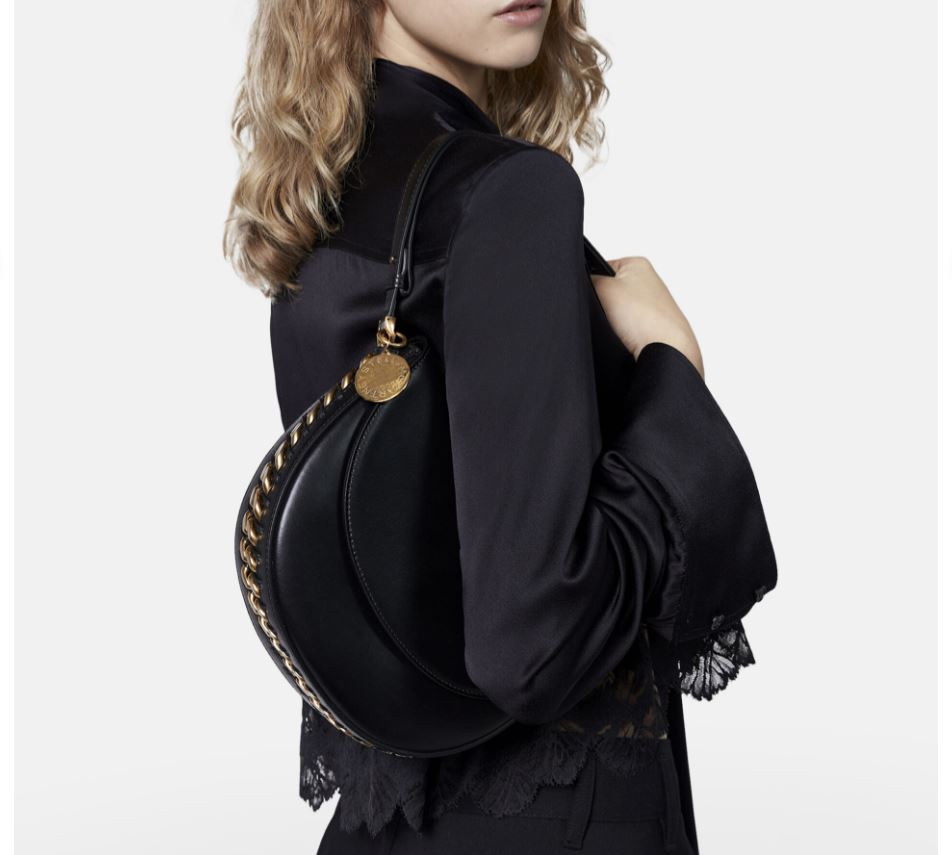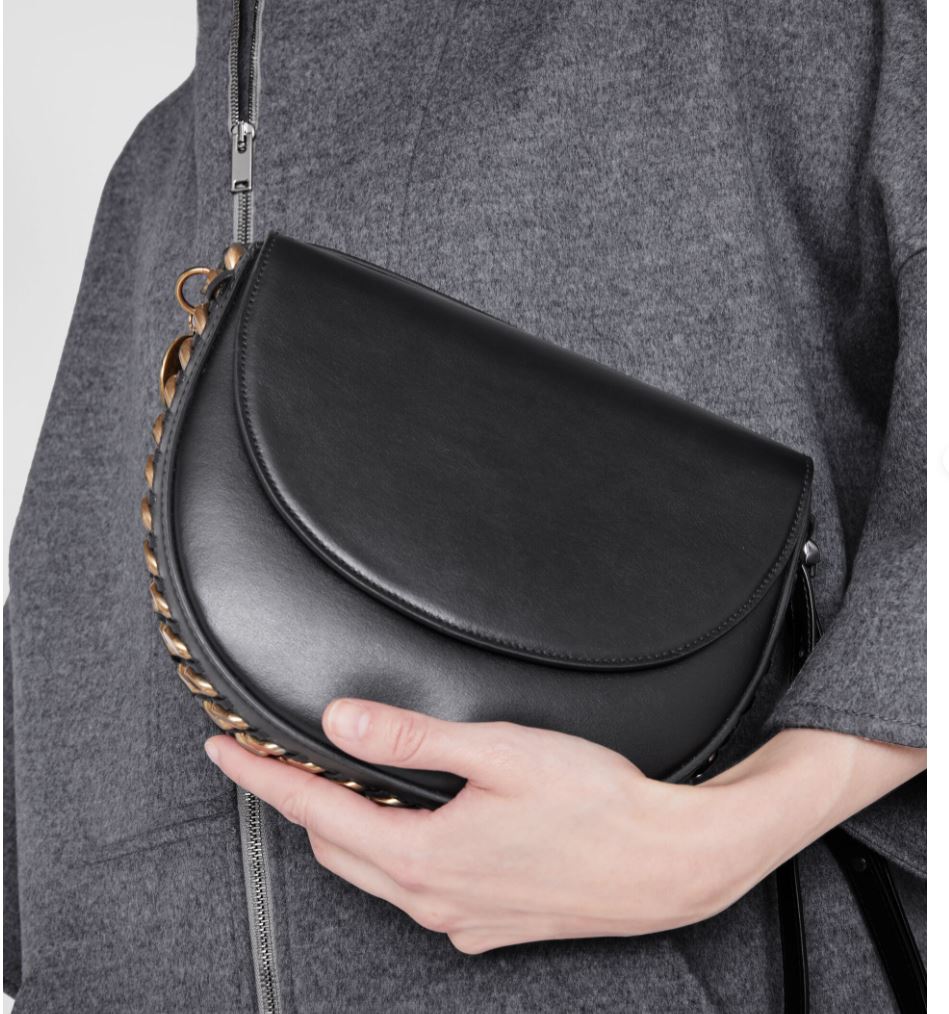 Cleverly considered from its smooth Alter Mat material, a vegan alternative to leather, to its engraved logo medallion, this Frayme flap shoulder bag combines fluidity and structure. The bag can be carried crossbody or on the shoulder and is consciously framed with an oversized signature chain crafted from infinitely recyclable aluminium.