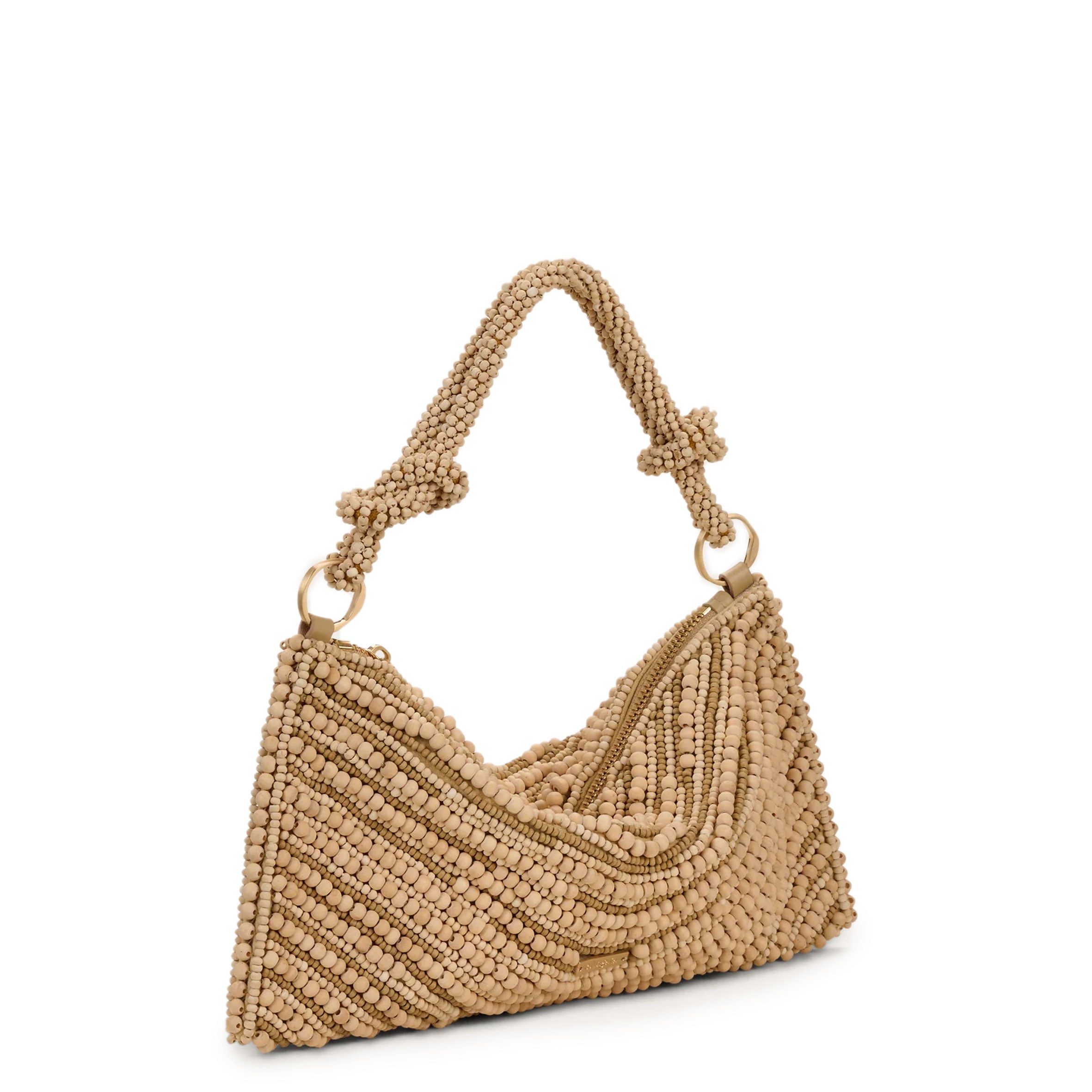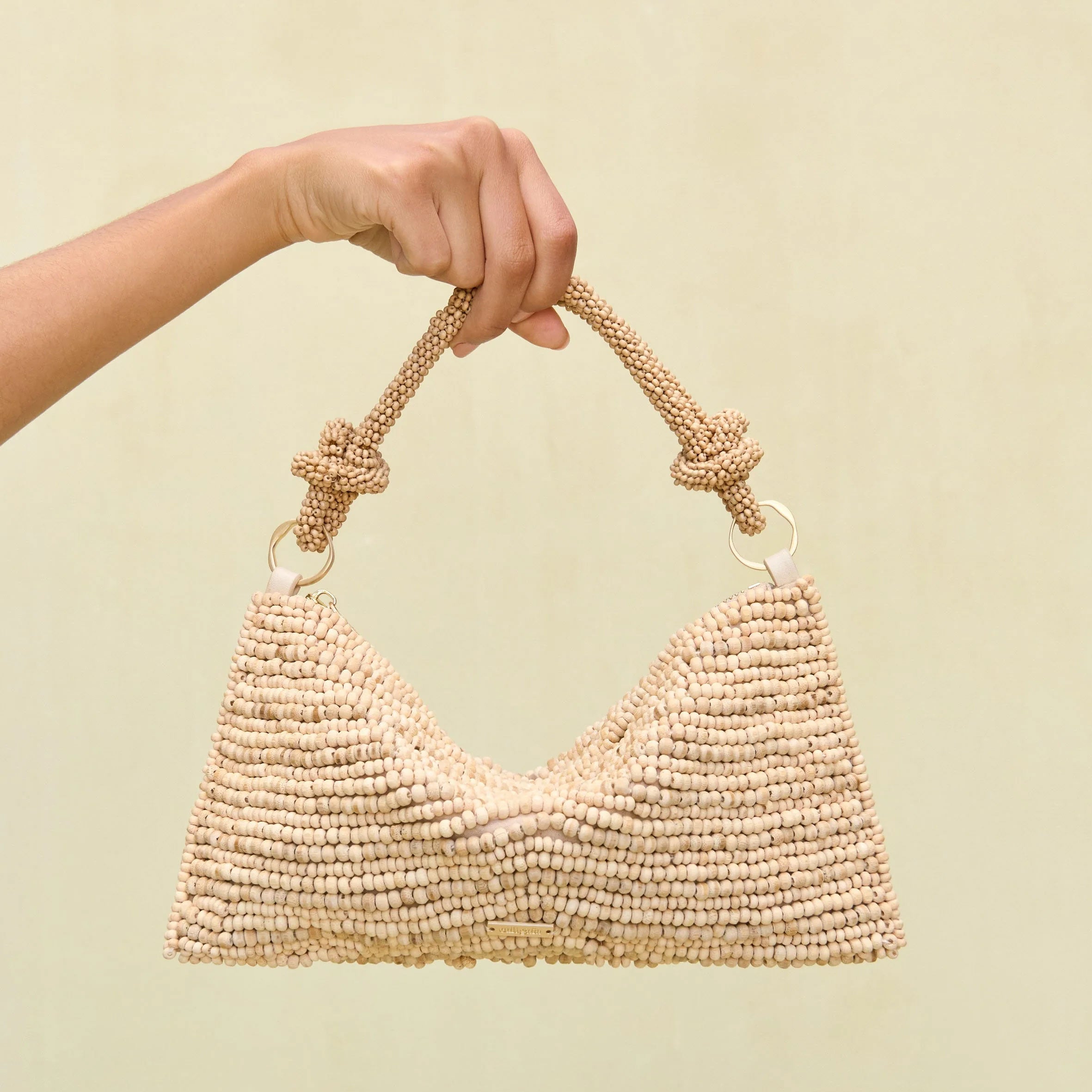 A classic nano sized bag designed in a natural wooden beads that sits as a relaxed silhouette on your shoulder.