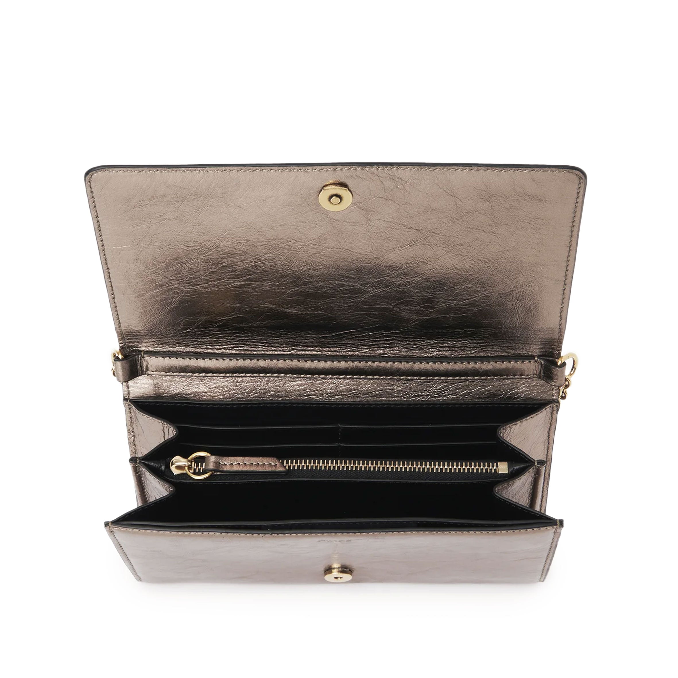Crafted from metallized calfskin, the Chloé Iconic flap wallet on chain combines a minimalist silhouette with a metallic signature from the Maison's archives.