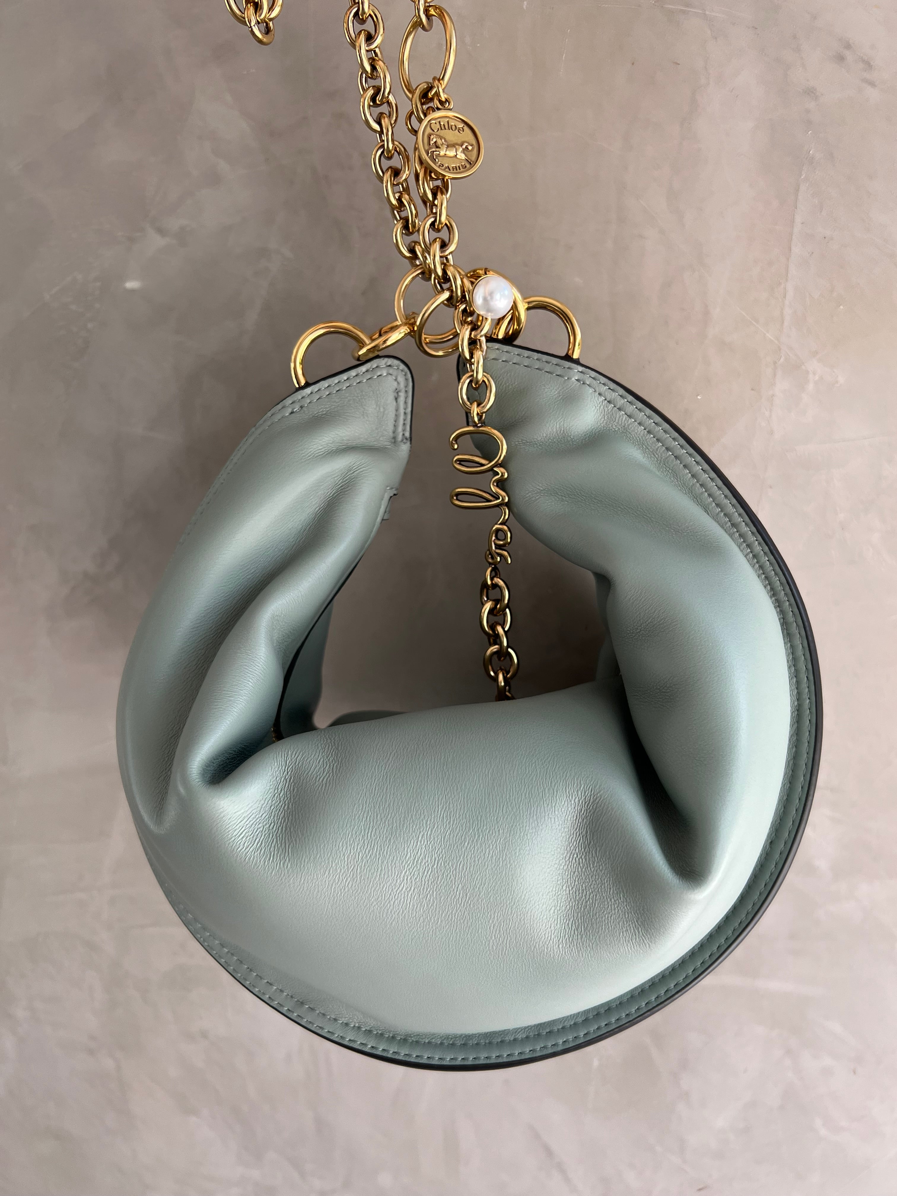 This Chloé Icons shoulder bag is crafted from smooth nappa lambskin with a rounded, padded silhouette. In a nod to the Maison's DNA, the gold-tone chain is embellished with a Horse Medal, miniature charms and the Chloé Iconic signature.