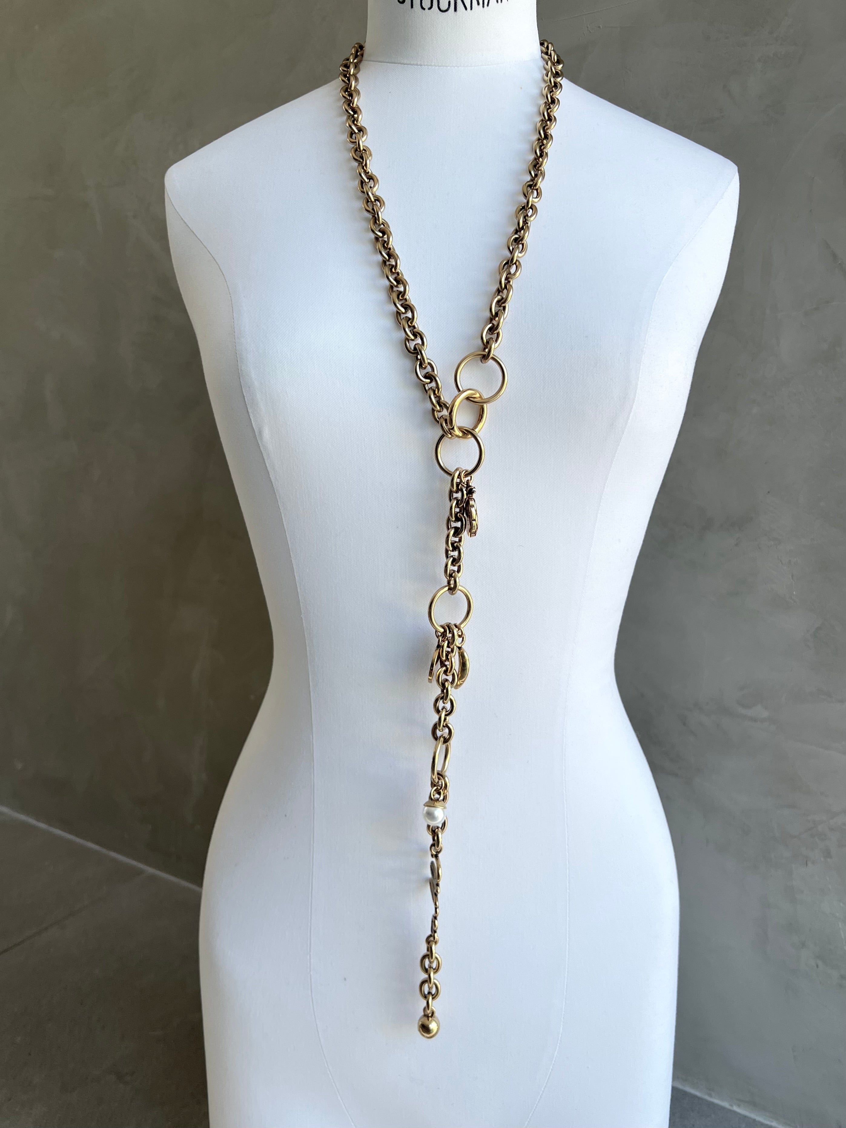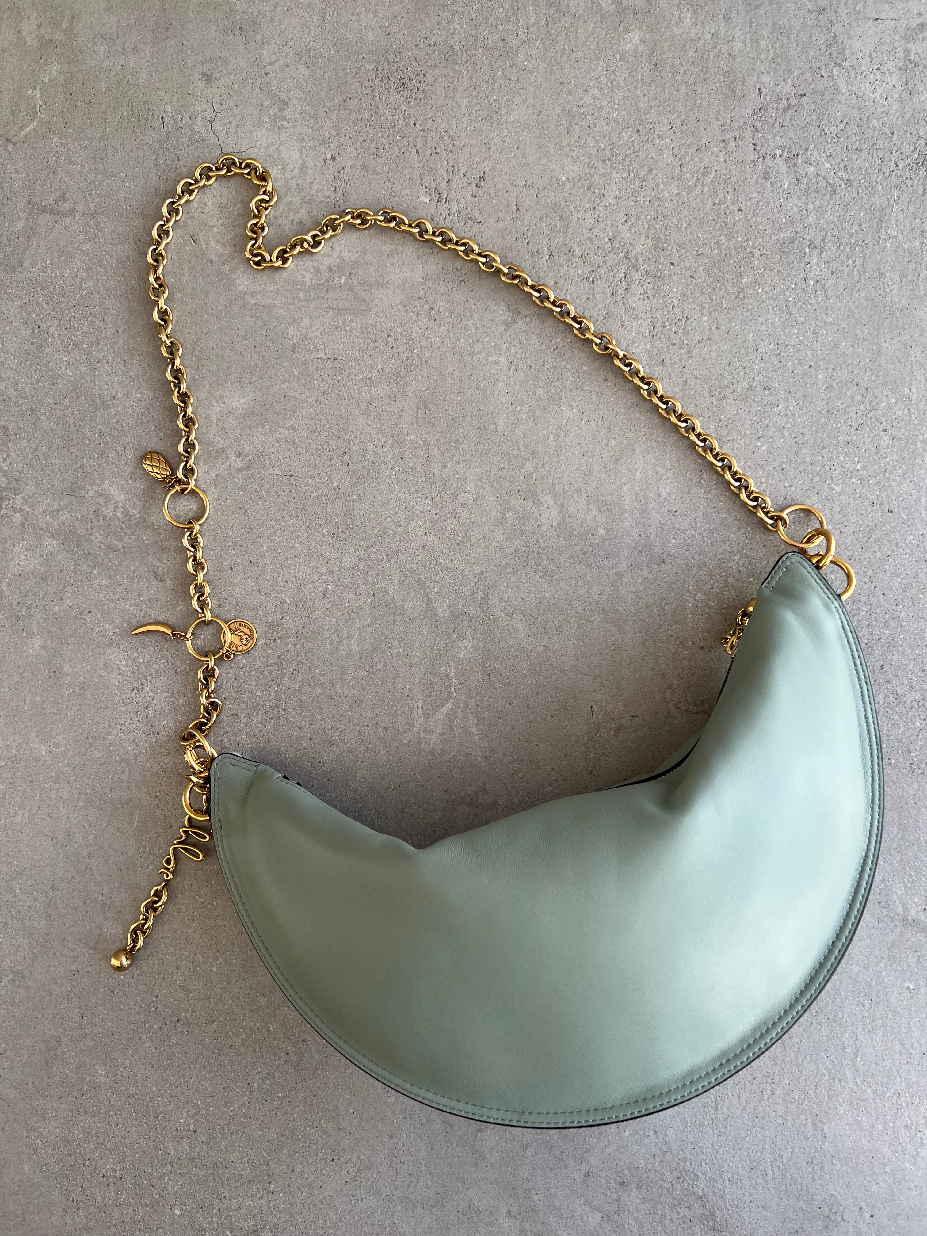 Carry on the shoulder or crossbody, or play with the various rings and hooks on the chain to explore your own way of wearing the bag.