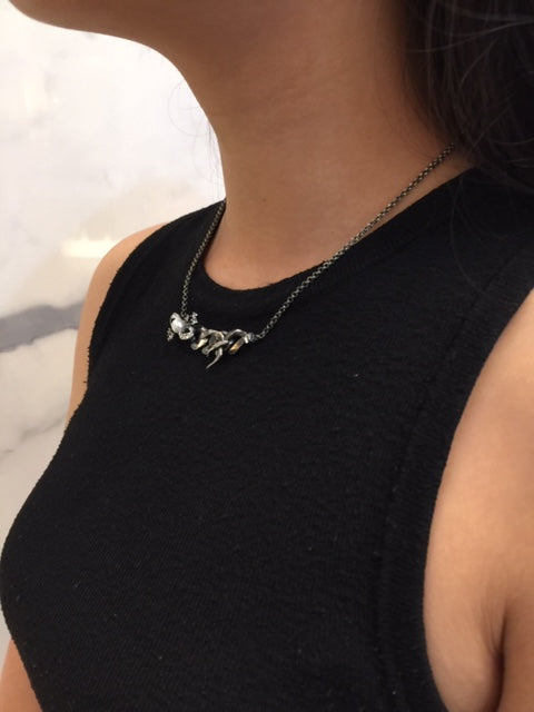 Pearl Bow And Bird Necklace, Silver