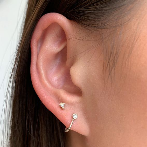 A tiny stud to hug your lobe. The Diamond Hook Earring has a sleek profile, while adding a bit of texture with our hand implemented milgrain.