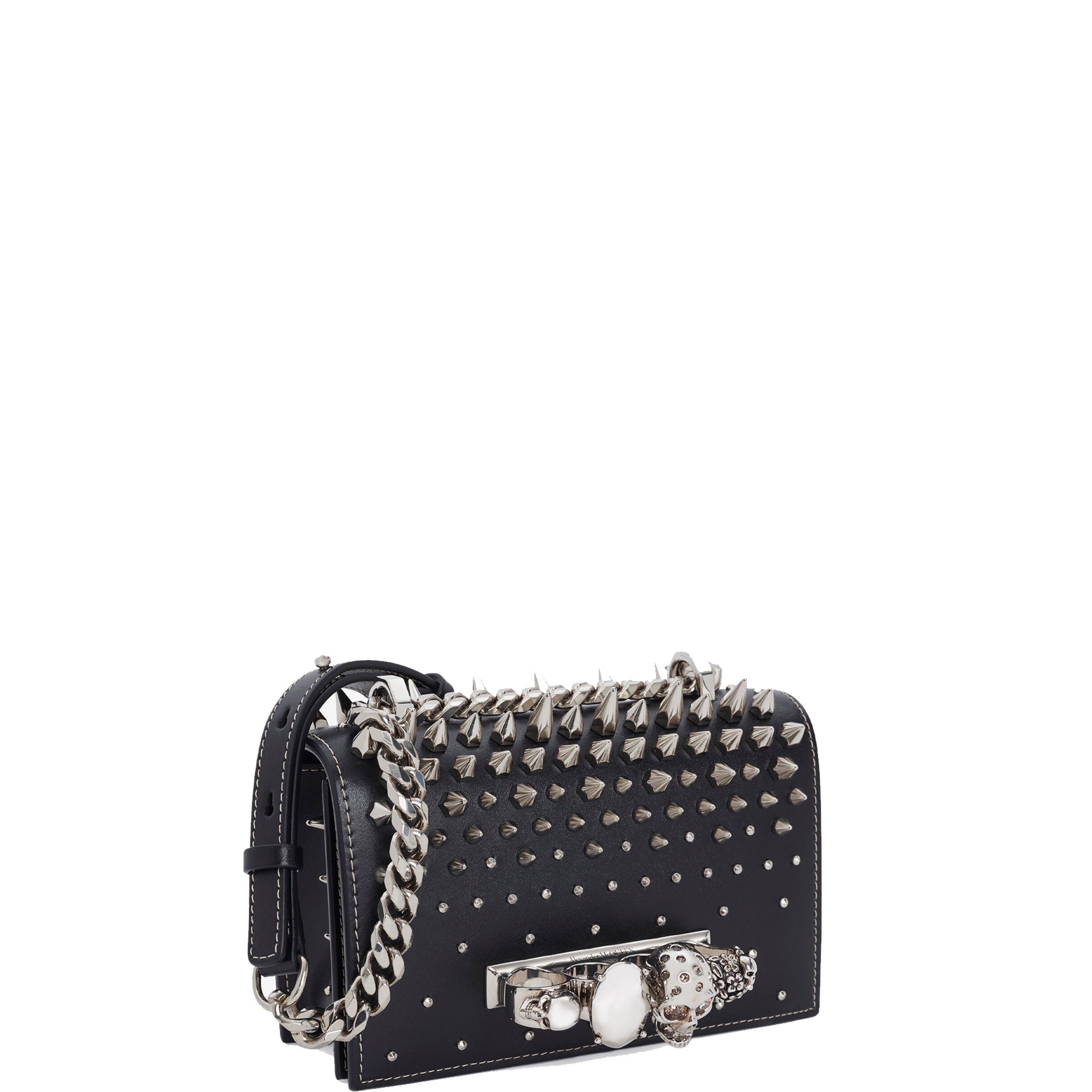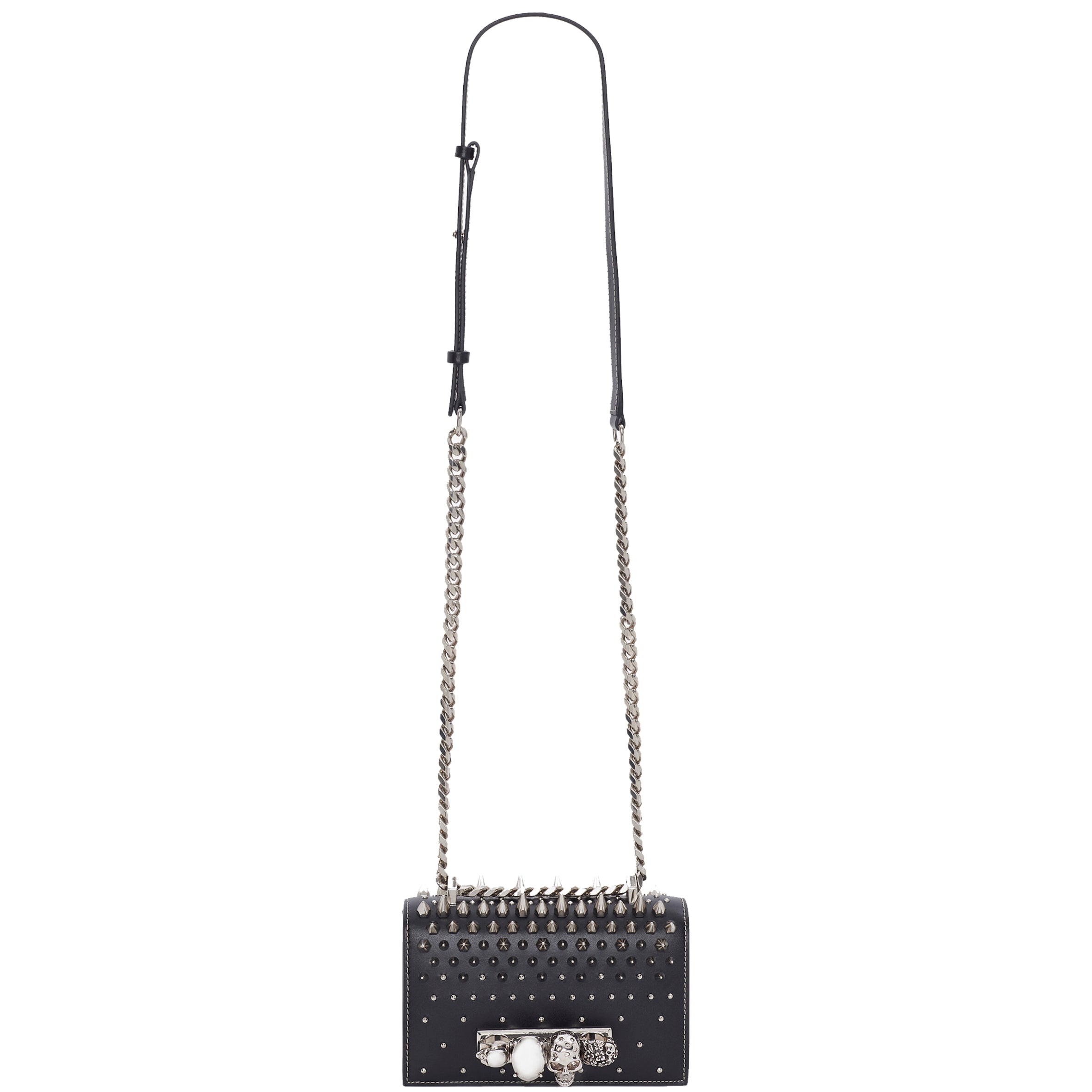 Alexander McQueen's 'Jewelled Satchel' is topped with a signature knuckleduster that's embellished with the label's iconic crystal-encrusted skulls. Made from black leather, it's decorated with scores of studs and suspended from a chunky chain strap. The interior is divided to organize all your essentials, and has a secure zipped pocket.