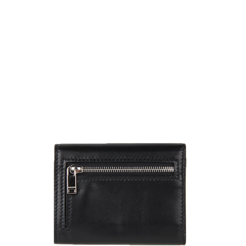 A petite size wallet in smooth soft leather. Featuring a snap button closure, three card slots, a bill compartment and exterior zip pocket.