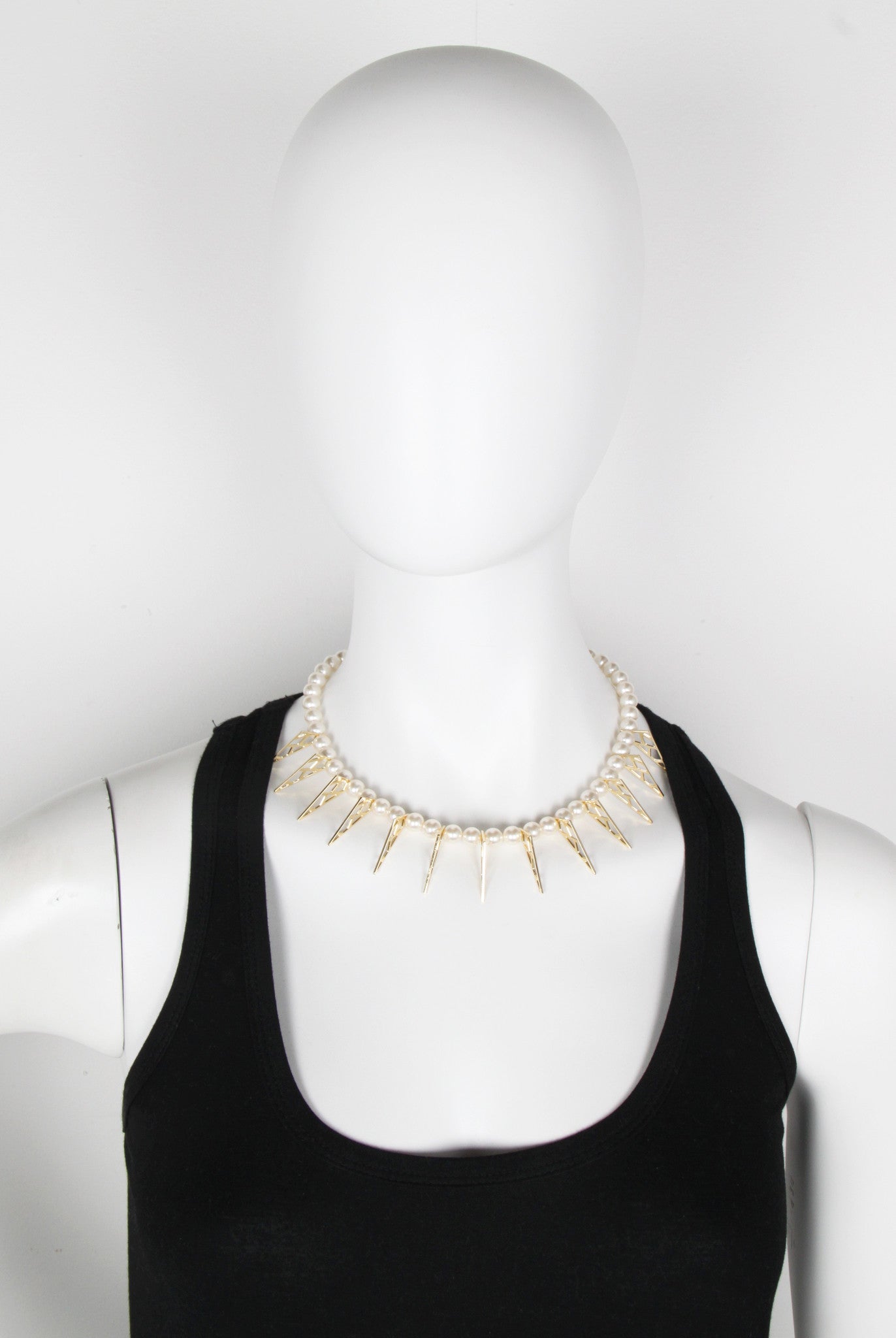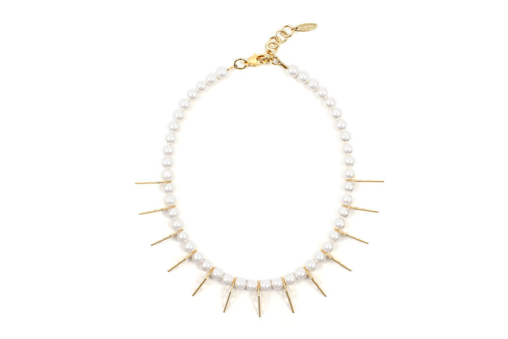 Joomi Lim pearl necklace with gold traingles. Made in NYC