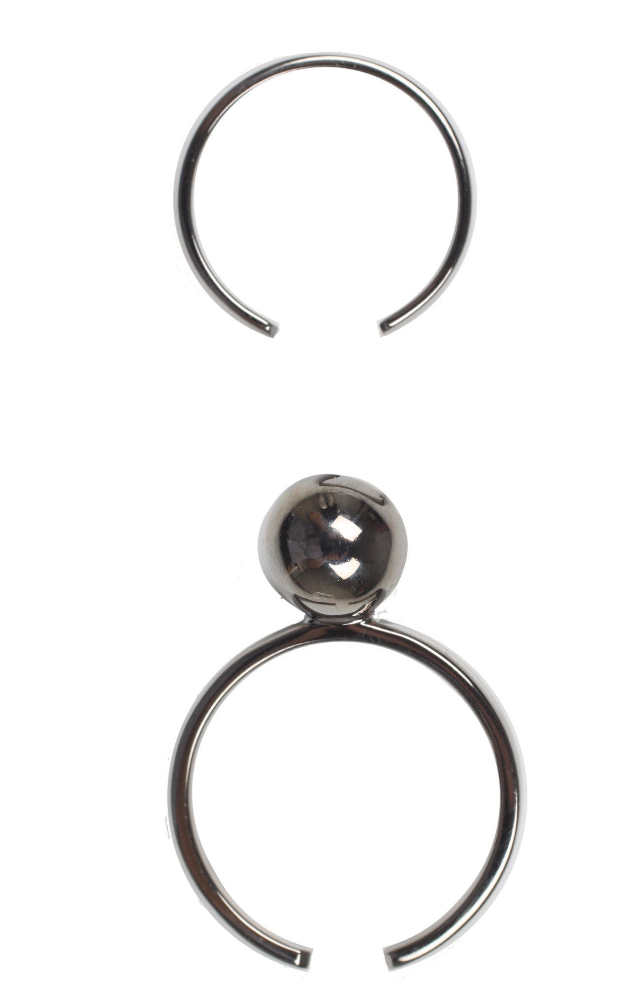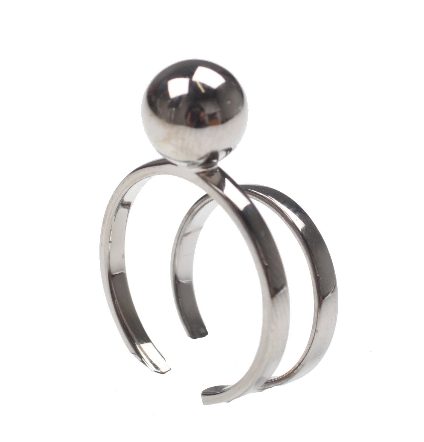Small sphere ring dipped in ruthenium comes together with a simple small band worn on the finger tips.