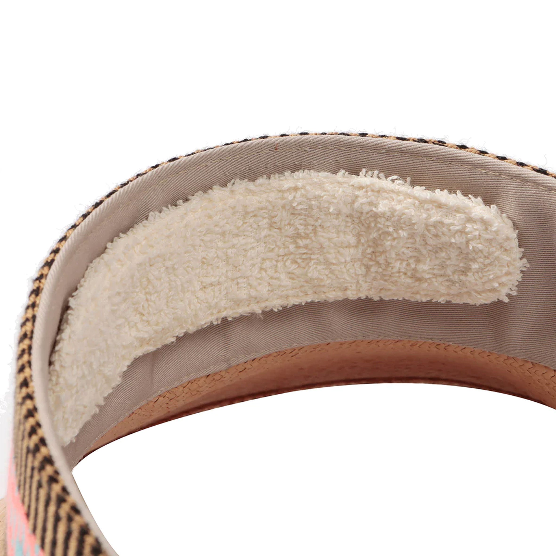 The Kenia Visor is expertly handwoven from Iraka Straw and features an embroidered multicoloured ribbon. Each piece takes up to 10 hours to hand weave by artisans in Latin America.