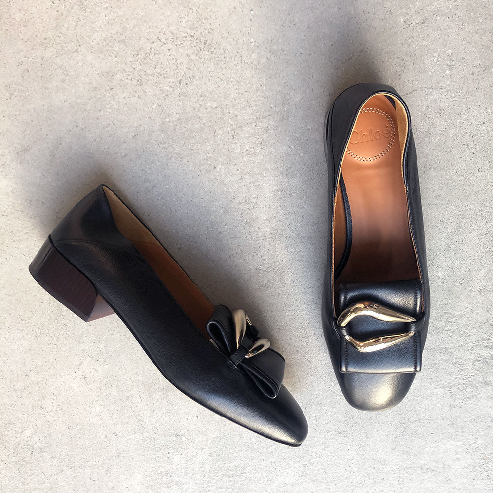 Featuring the Maison’s new "Kiss" detail features a streamlined shape defined by curving, sculptural hardware. The small heel and thin leather sole combine comfort with elegance, while the layered upper and black edges add a masculine twist to these effortless loafers for ladies.KISS loafers from Chloé. This black leather pair has collapsible heel counters, allowing them to be styled as mules if you'd prefer to go backless.