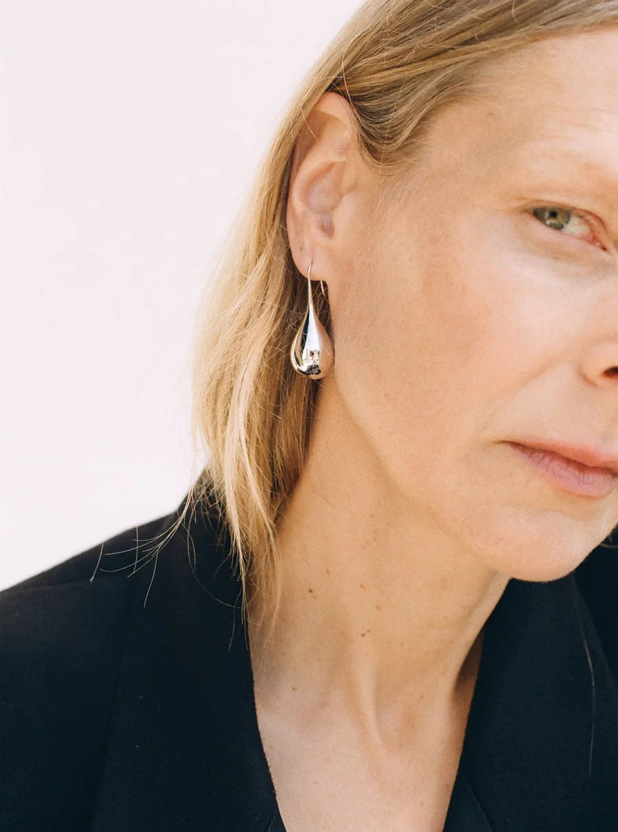 Large Drop Earrings, Silver