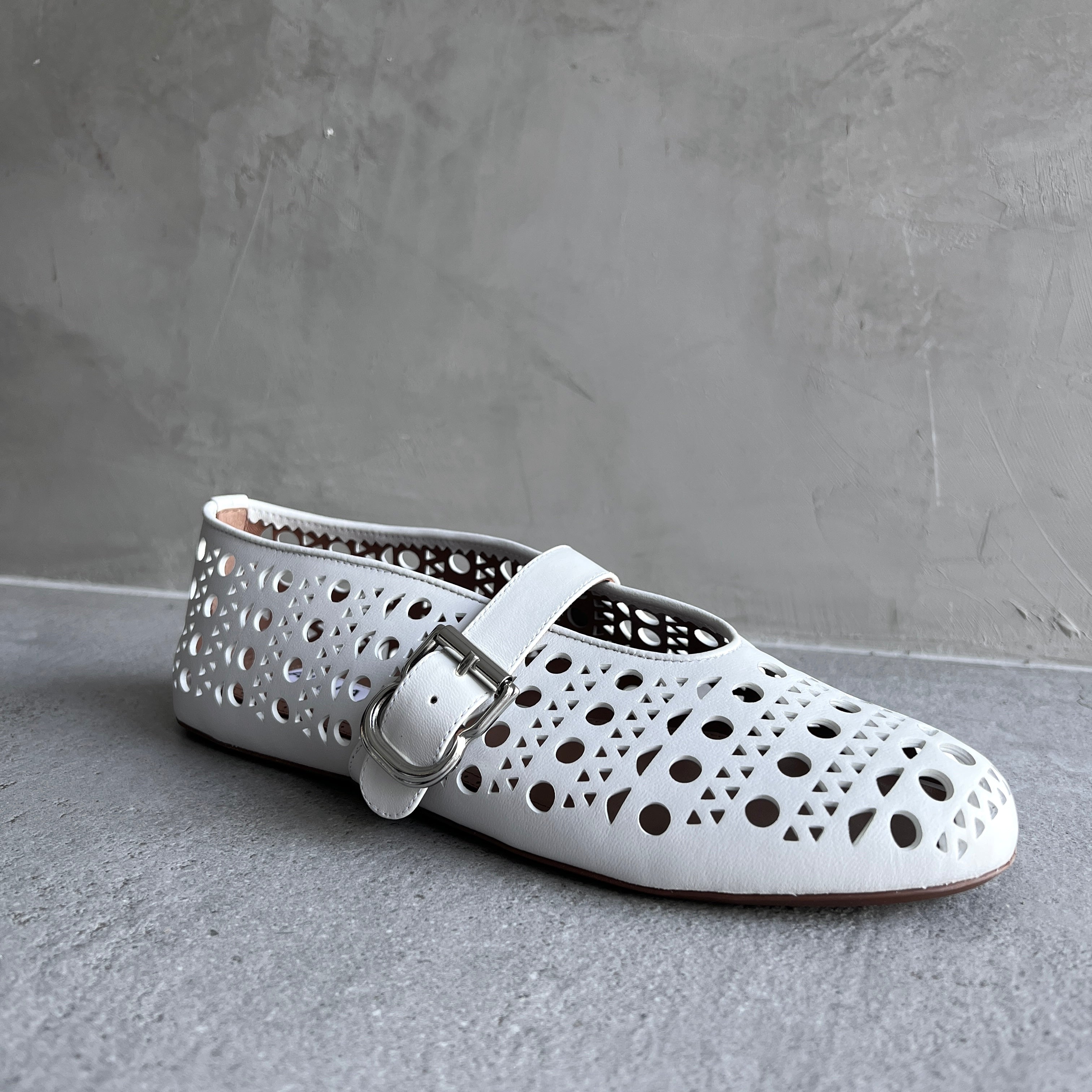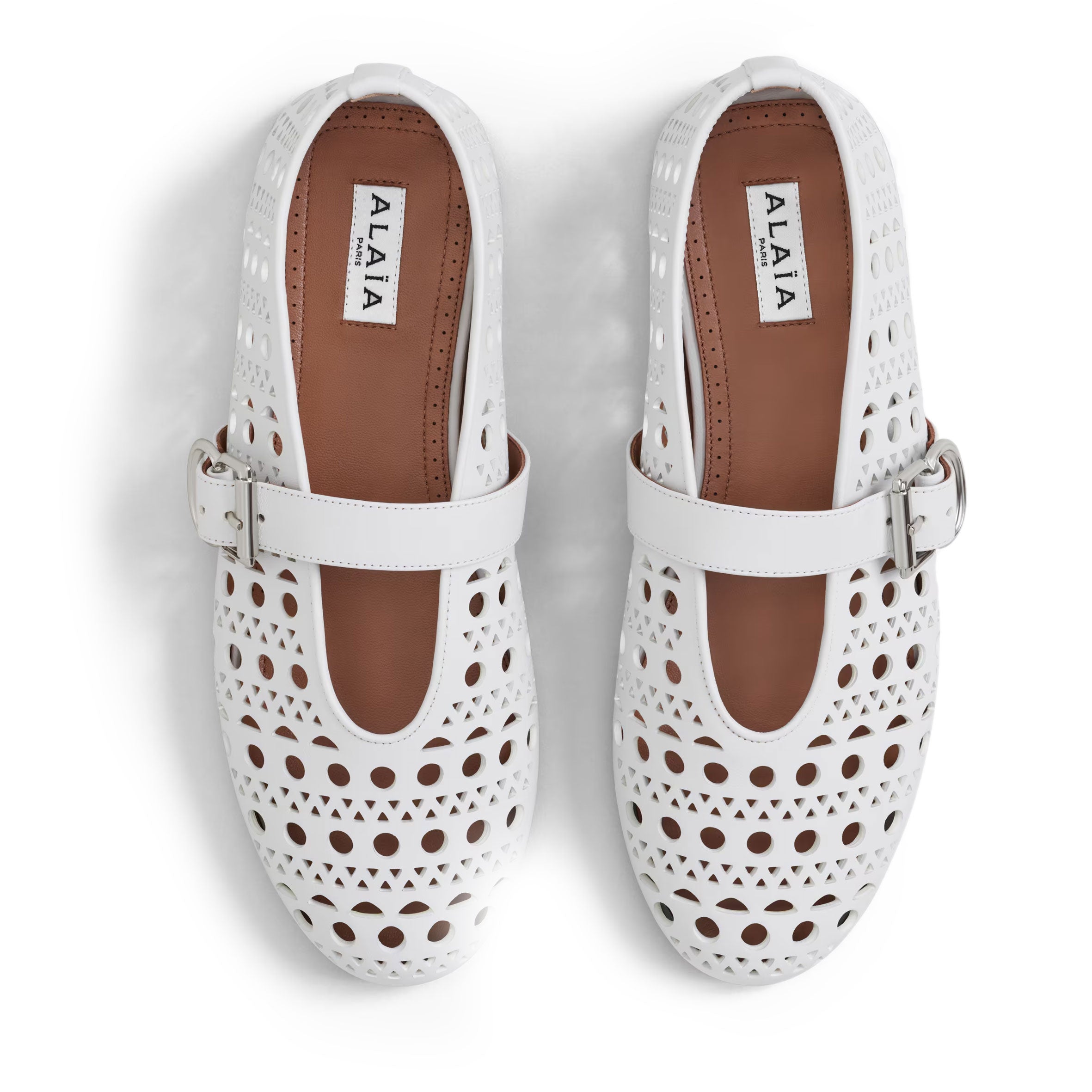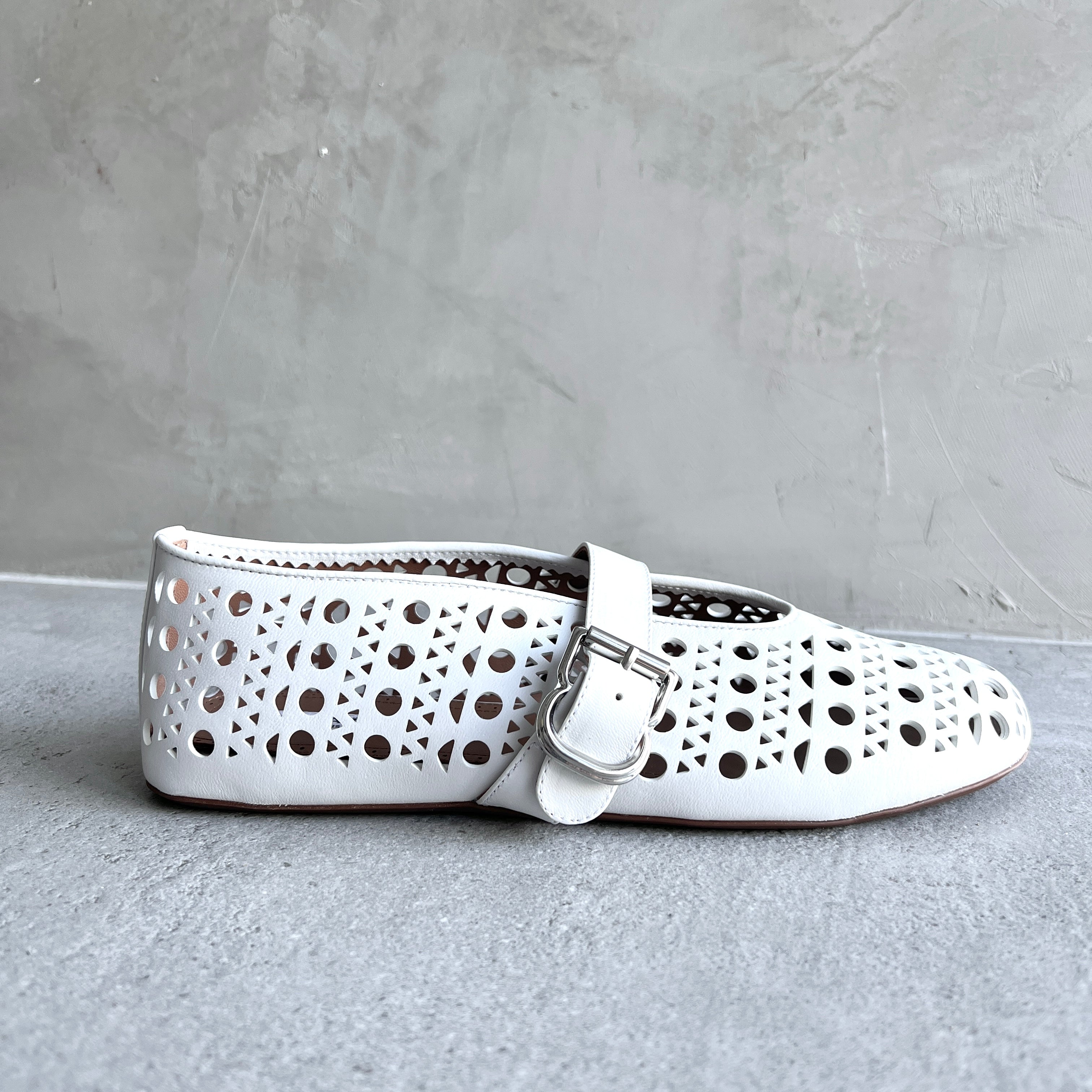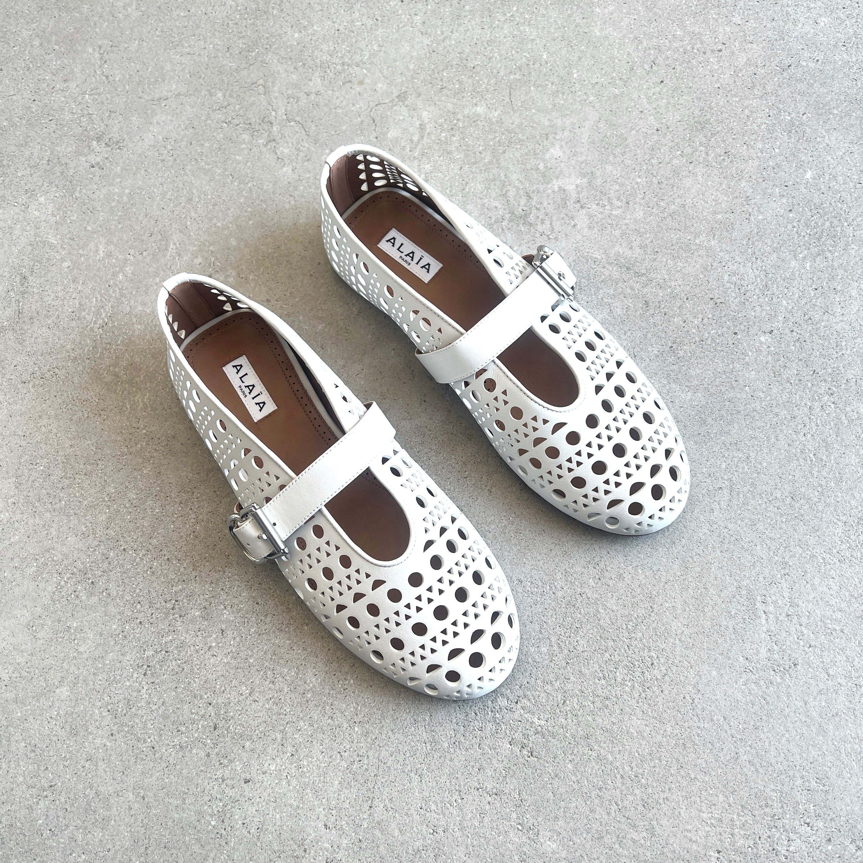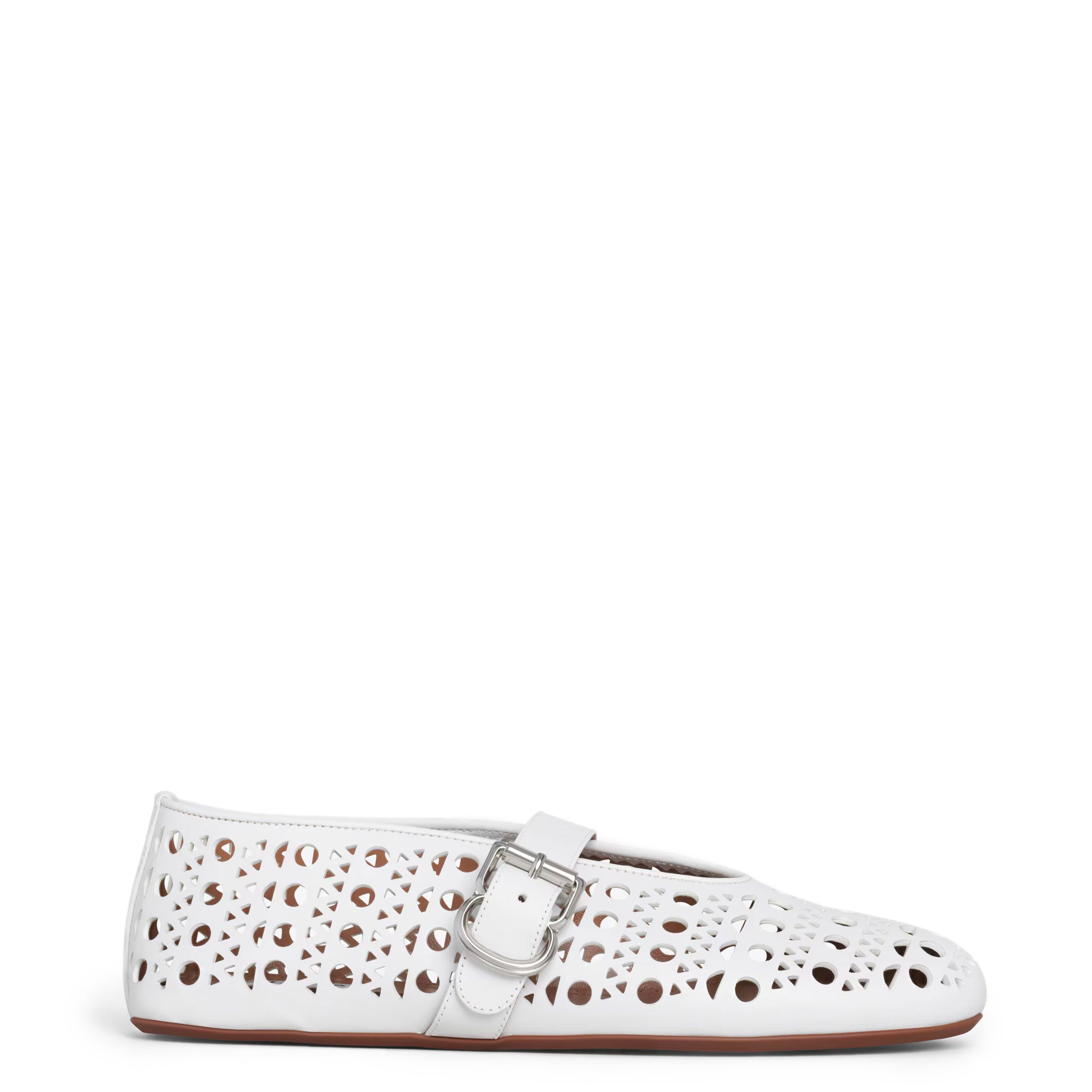 Step into luxury with Alaïa's Ballet Flats inspired by classical Japanese shoes. Featuring a rubber sole, they provide both comfort and durability, making them a perfect choice for any occasion. Elevate your footwear collection with these exquisite ballet flats from Alaïa.