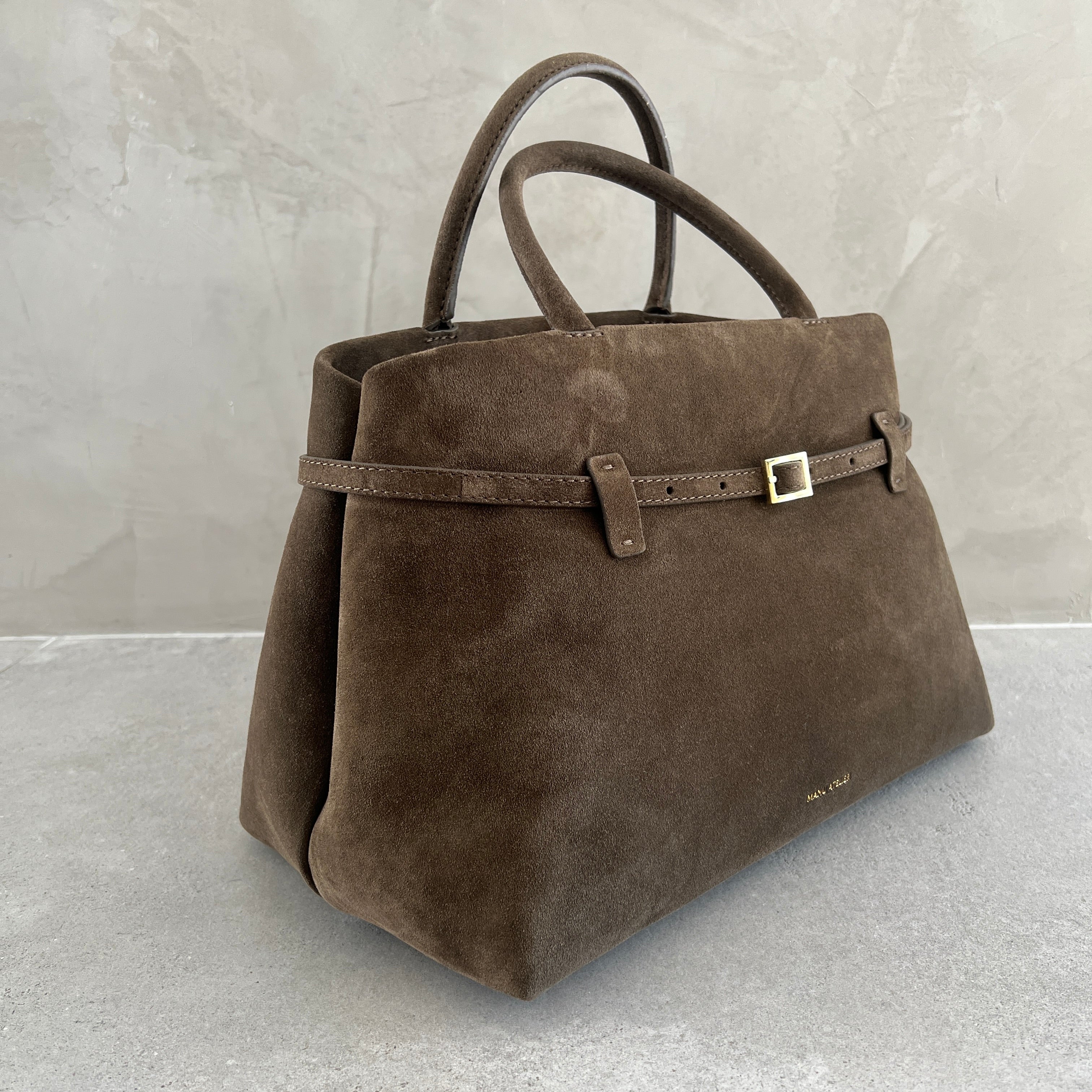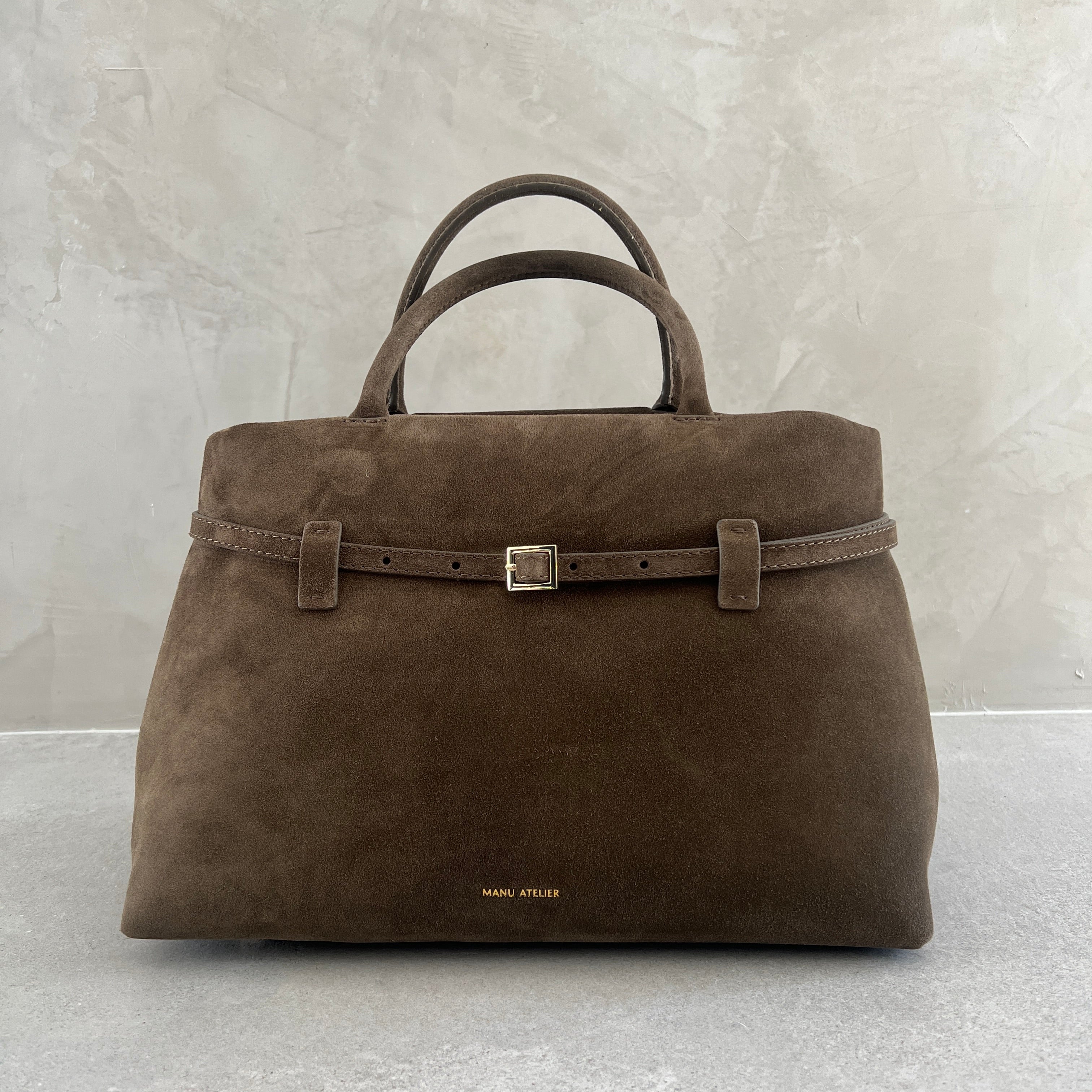 Introducing the latest addition to the Manu Atelier signature pieces, the Le Cambon 40 - a fusion of simplicity and artistry crafted to effortlessly fit into your daily life. Designed with suede leather, this bag blends sophistication with practicality, accommodating a 16-inch MacBook and offering a spacious, softly structured shape for all your essentials.