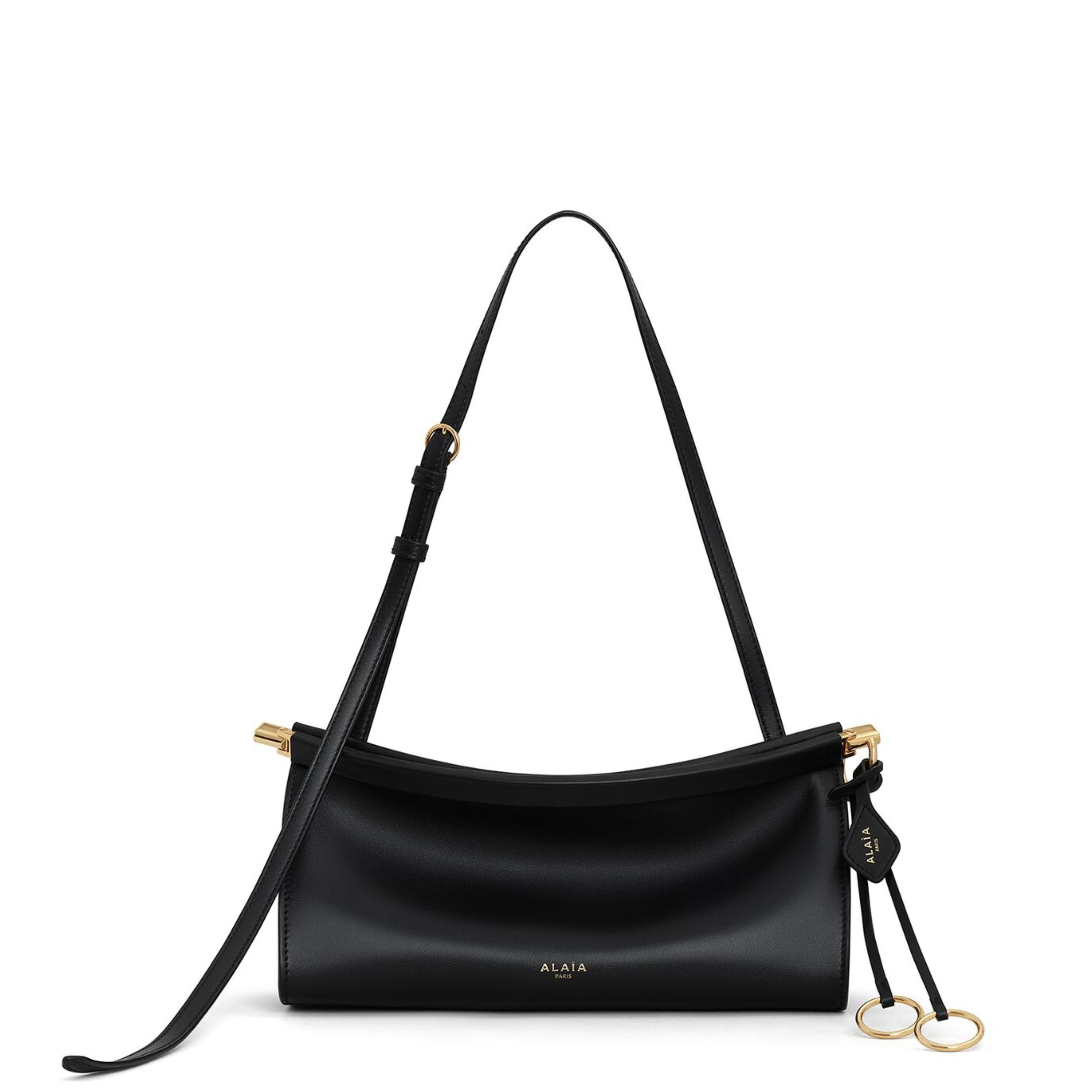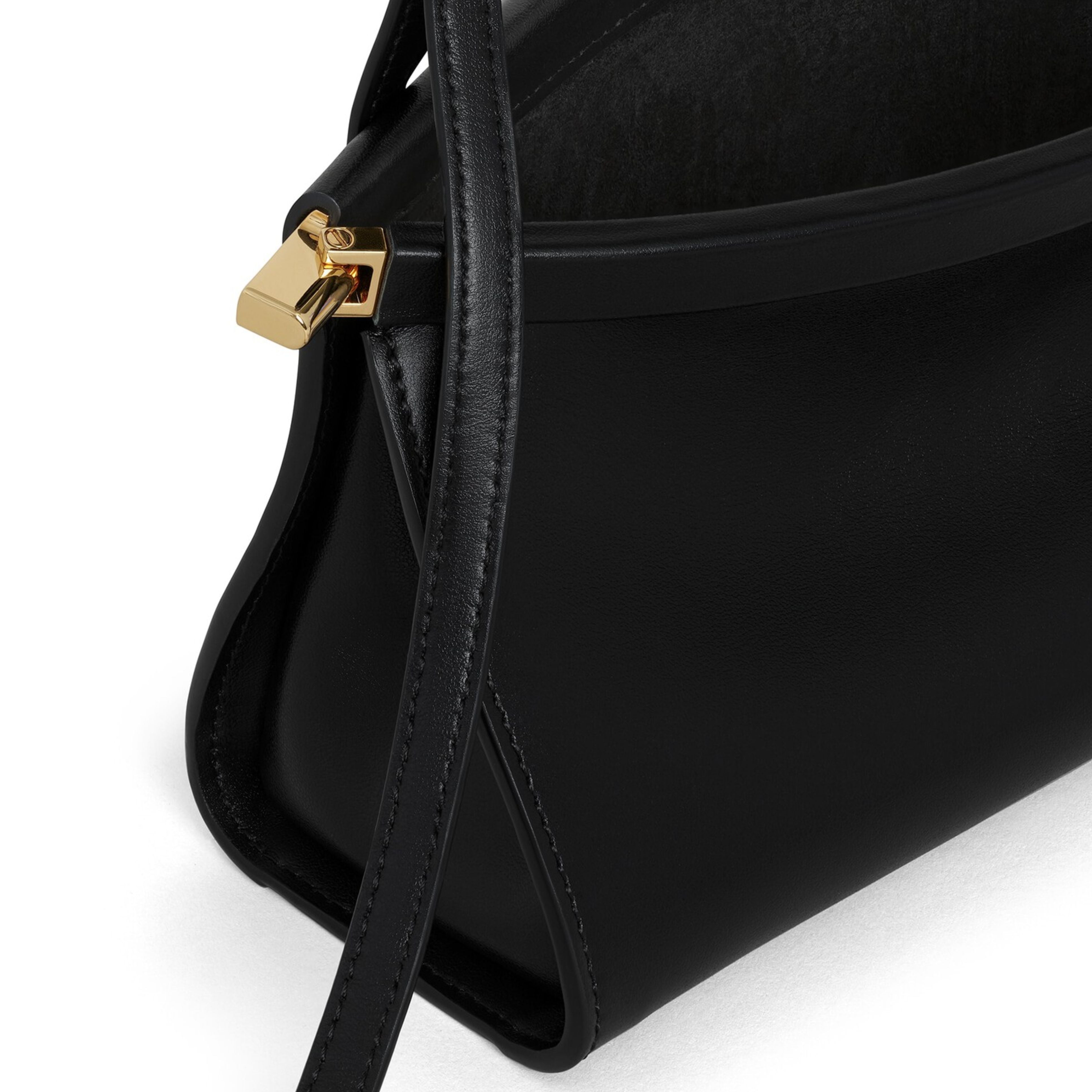 Small East West curved bag in a soft feel calfskin leather. The bag that hugs the body and features a hinge opening system wrapped with leather signature folding detail on the bottom of the bag. Designed for shoulder or waist carry thanks to an adjustable strap.