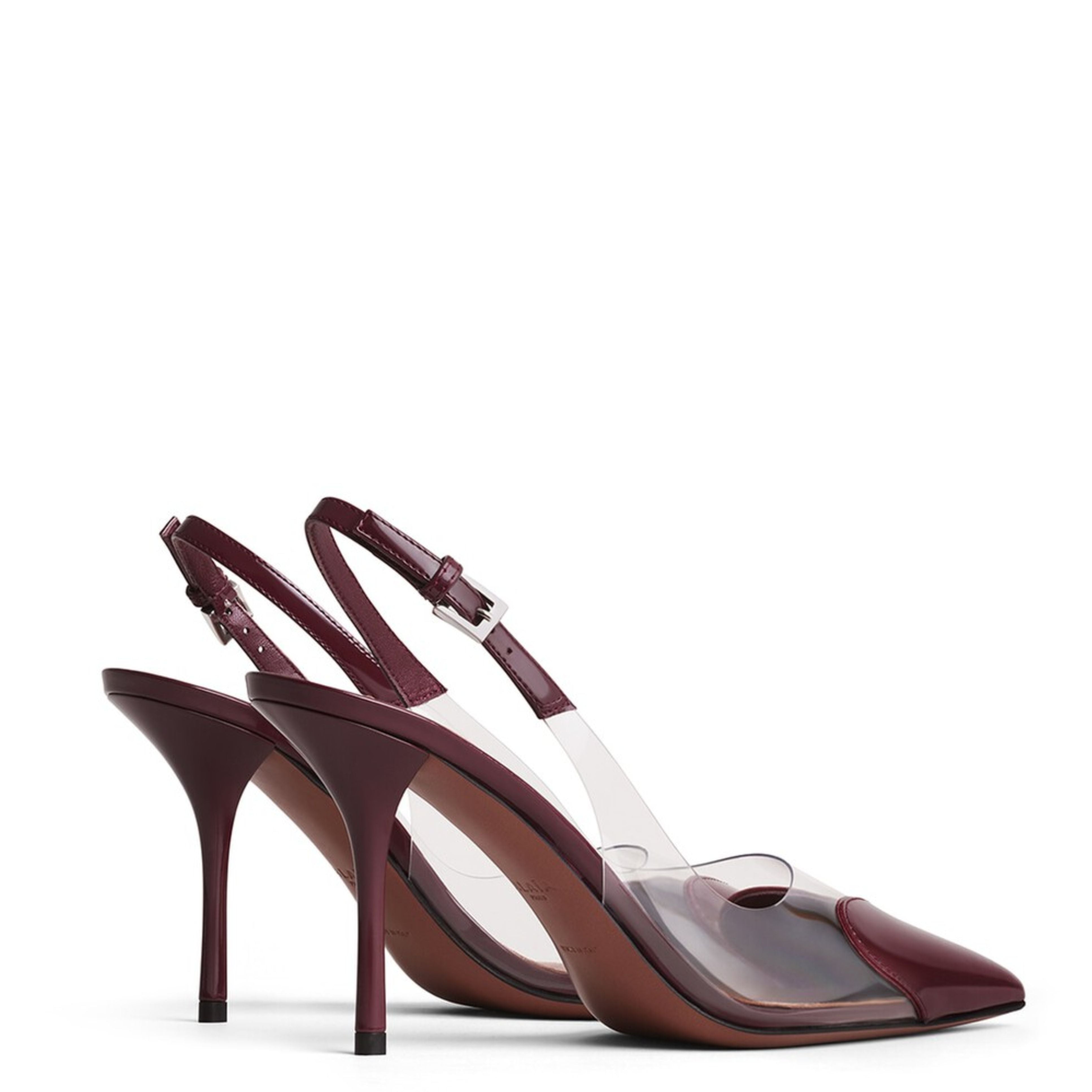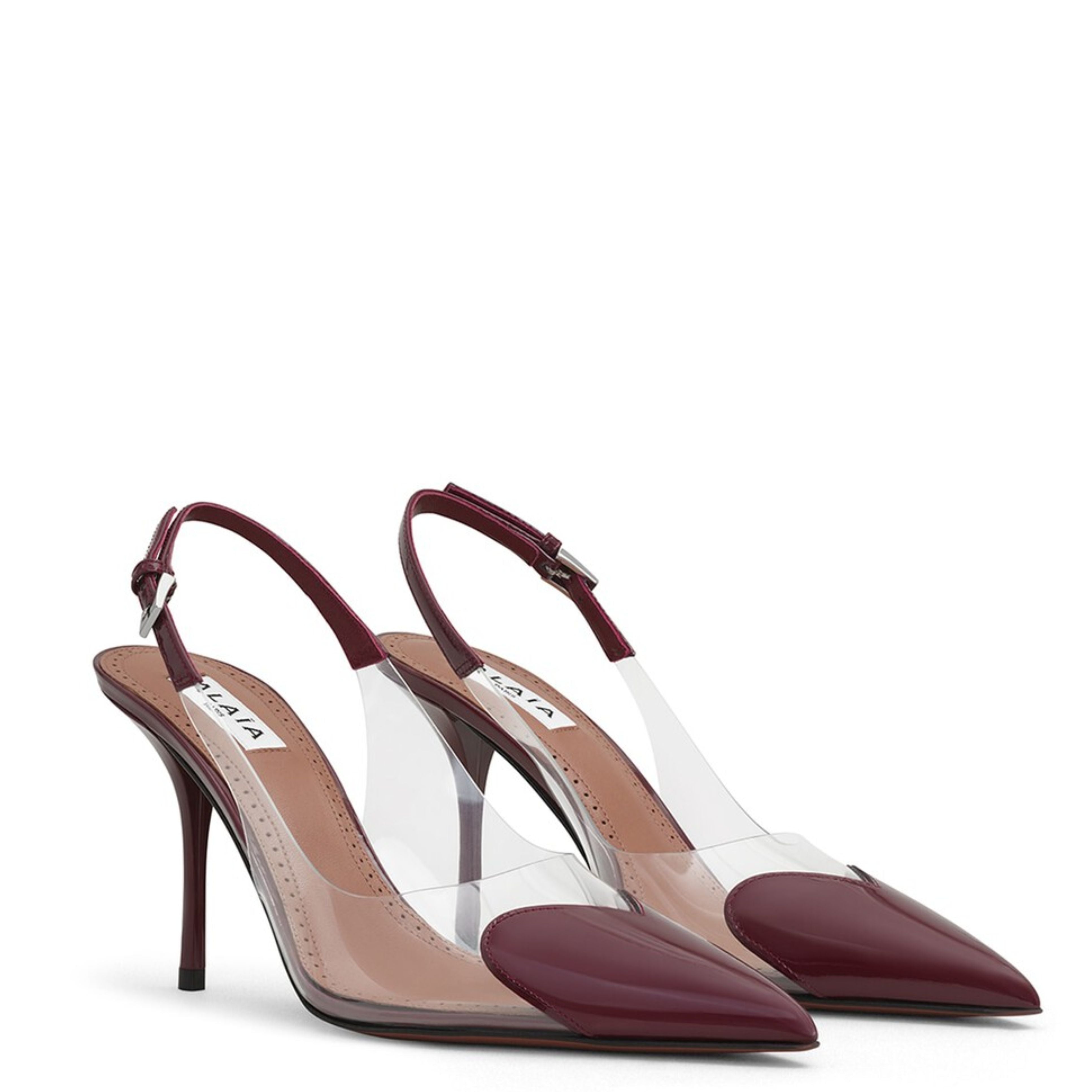 Discover Alaïa's Heart Heel Slingbacks – a blend of sophistication and charm. These slingbacks feature a heart cut at the front, adding a delightful detail to your ensemble. With a comfortable kitten heel, they offer both style and comfort, making them perfect for any occasion.