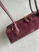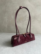 'Le Teckel' (or "Dachshund" in French) has an elongated body made from structured leather with luggage-inspired top handles and a moniker-stamped hangtag. Features a double zip closure and a small mirror.