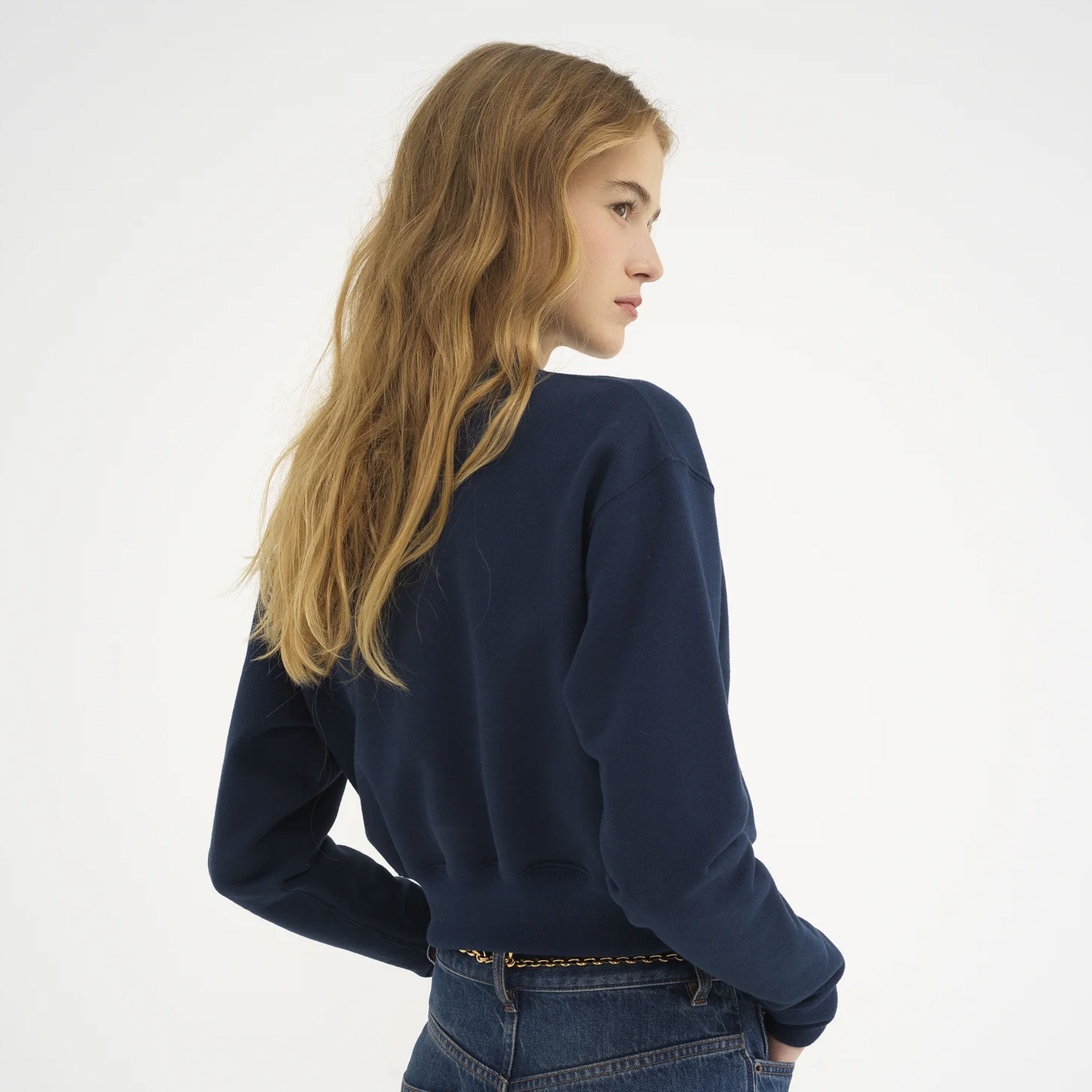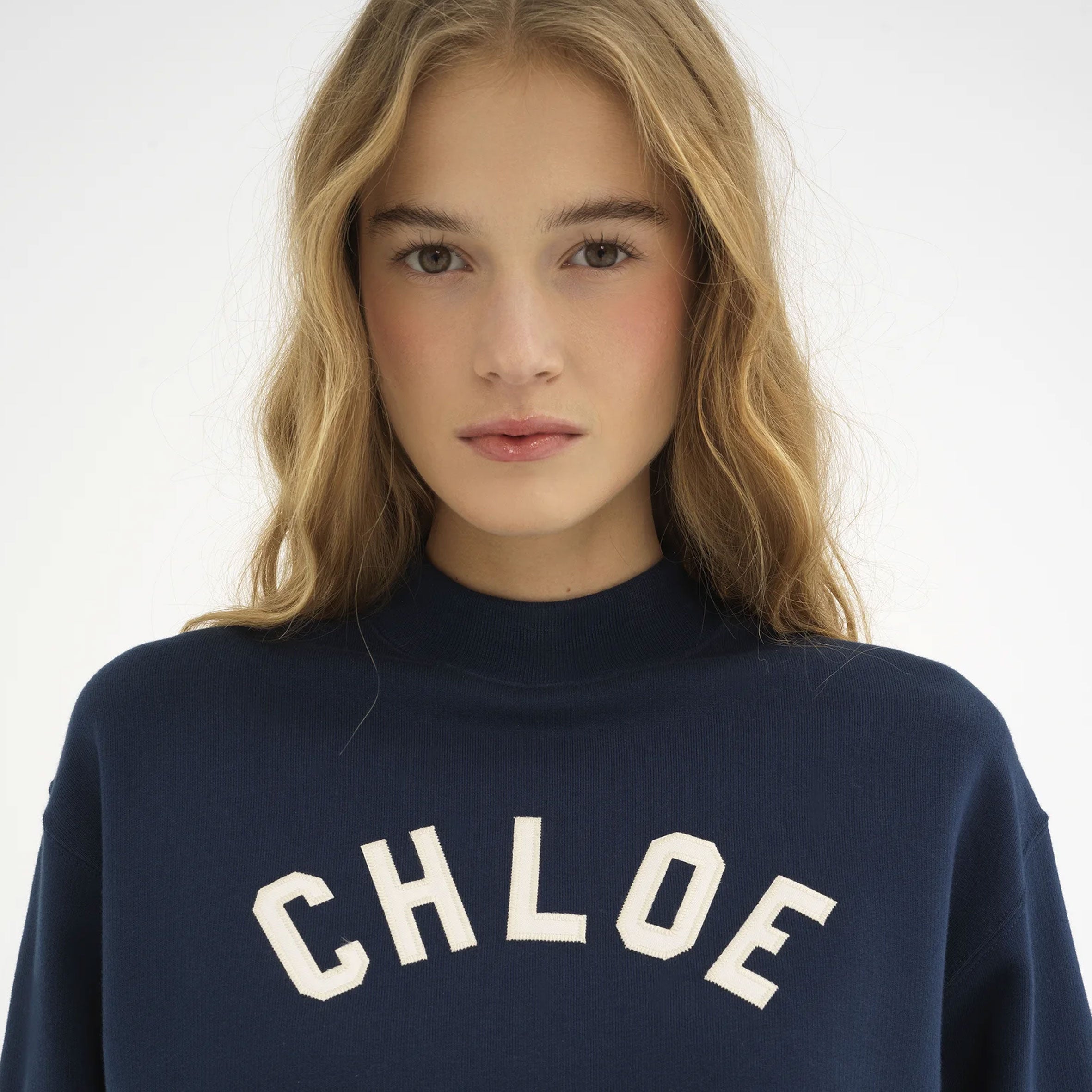 Mock-neck sweater in cotton fleece with a cropped, boxy shape featuring varsity Chloé logo appliqué patches.
