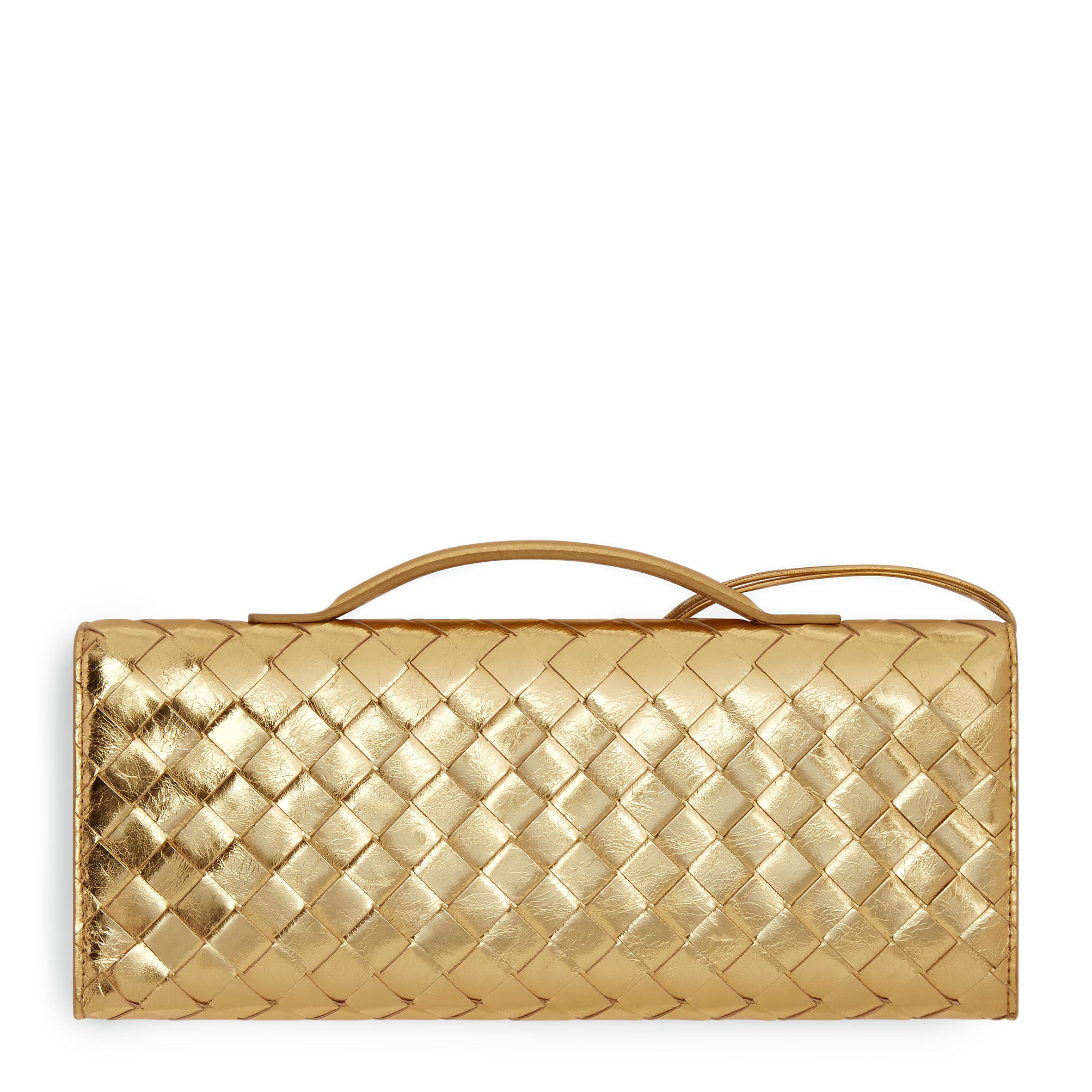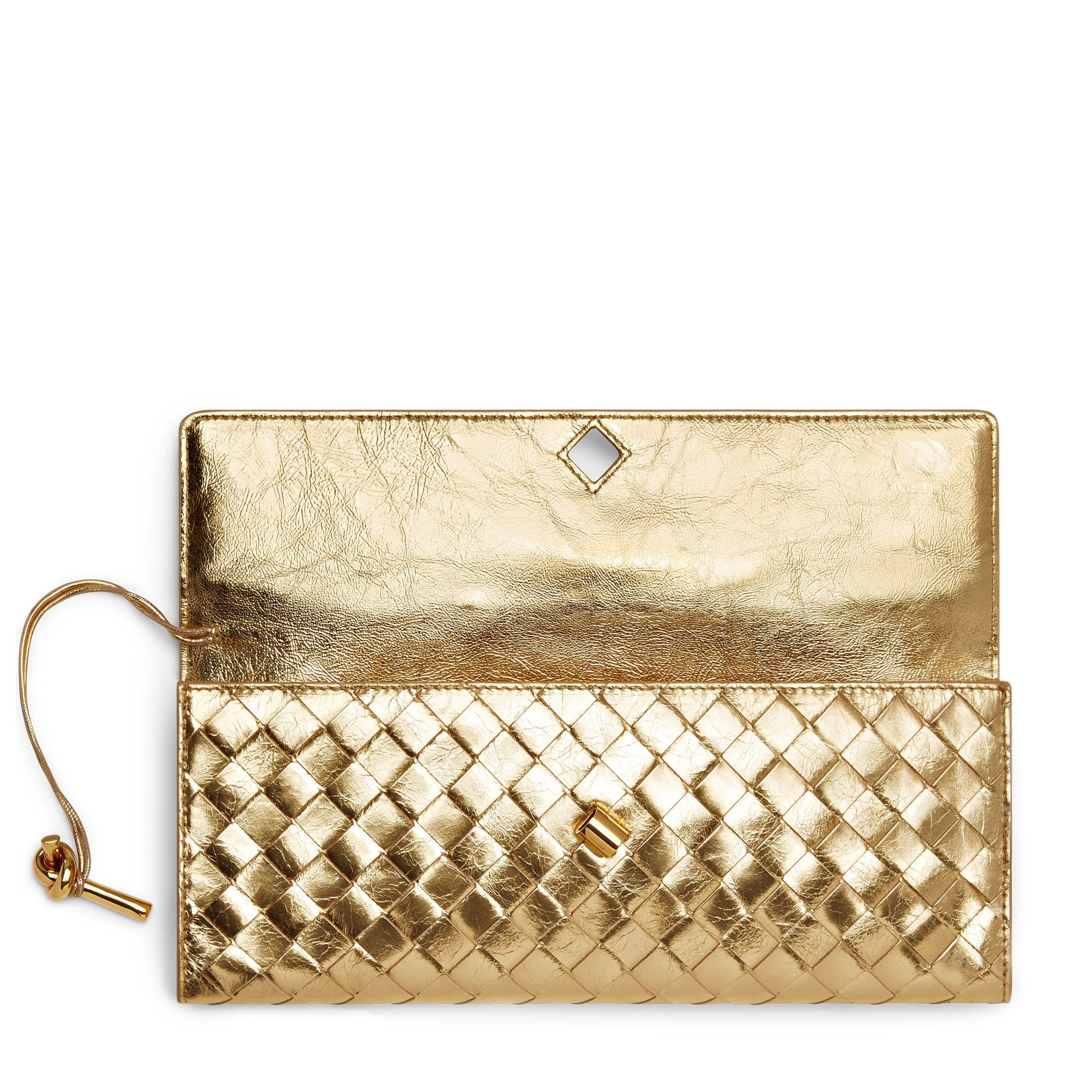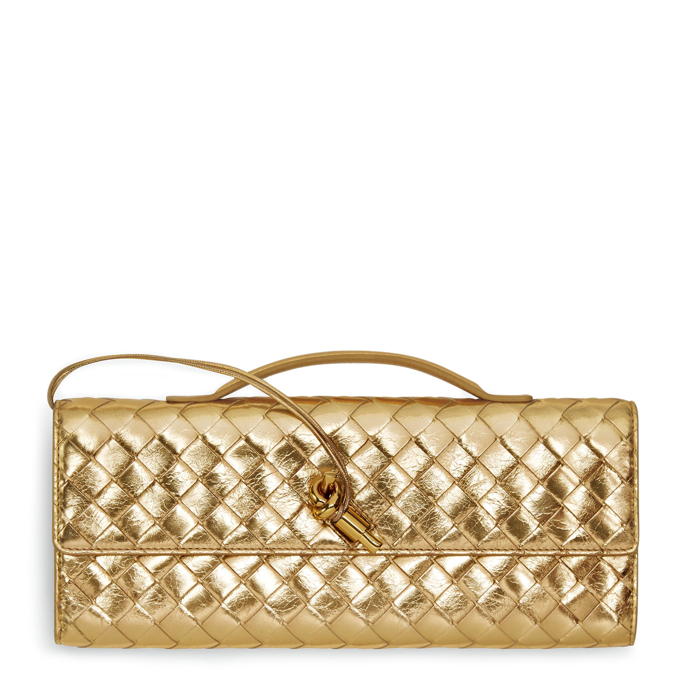 Clutch with handle realised with Intrecciato craftsmanship in soft lambskin leather