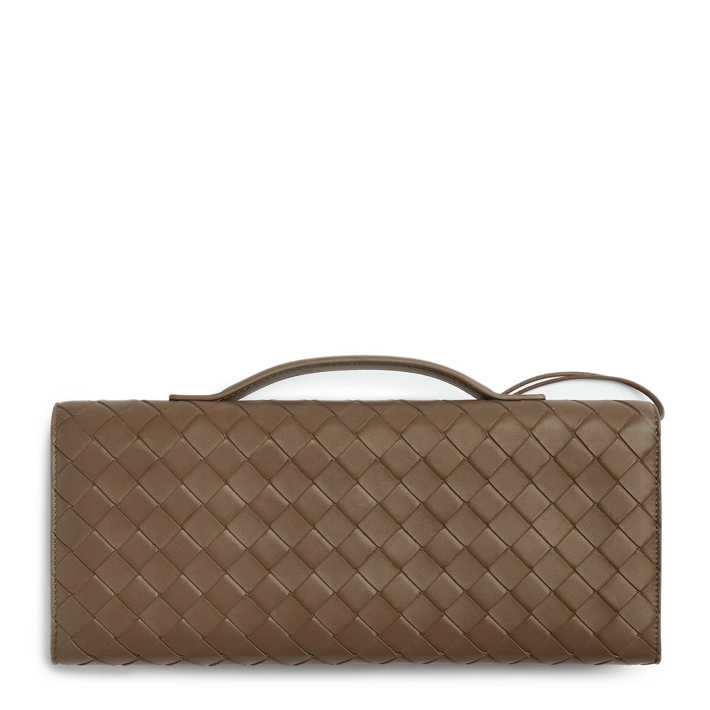 Clutch with handle realised with Intrecciato craftsmanship in soft lambskin leather