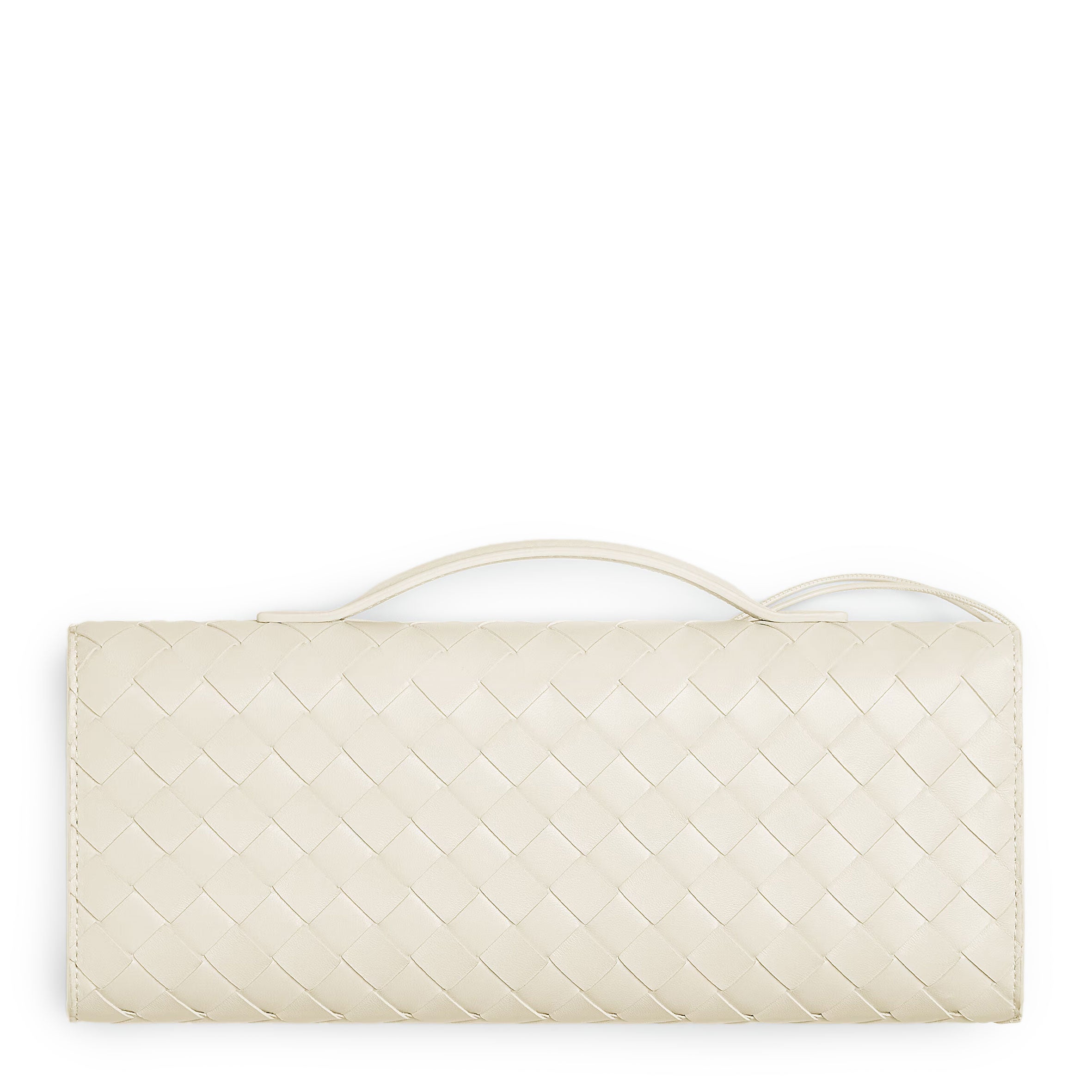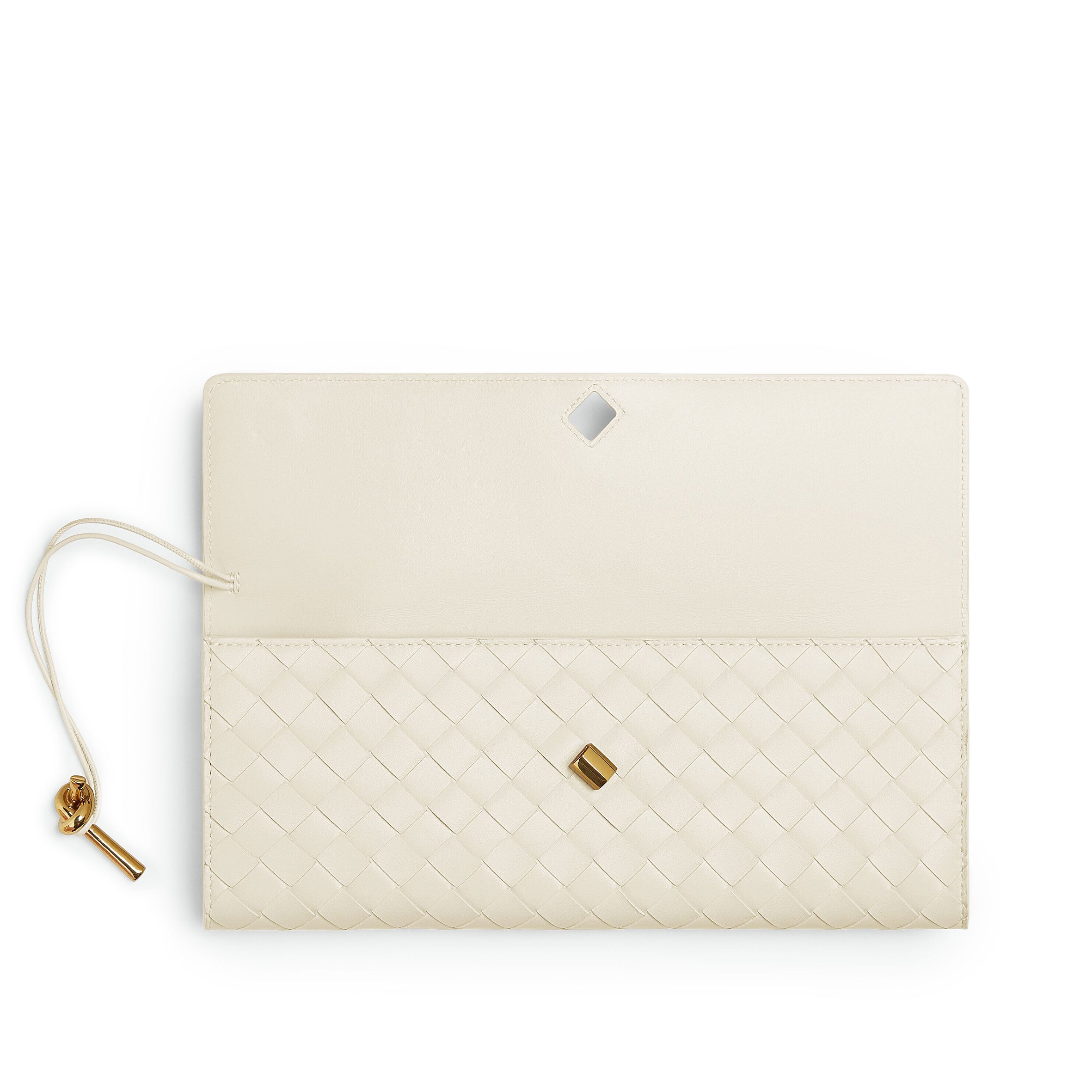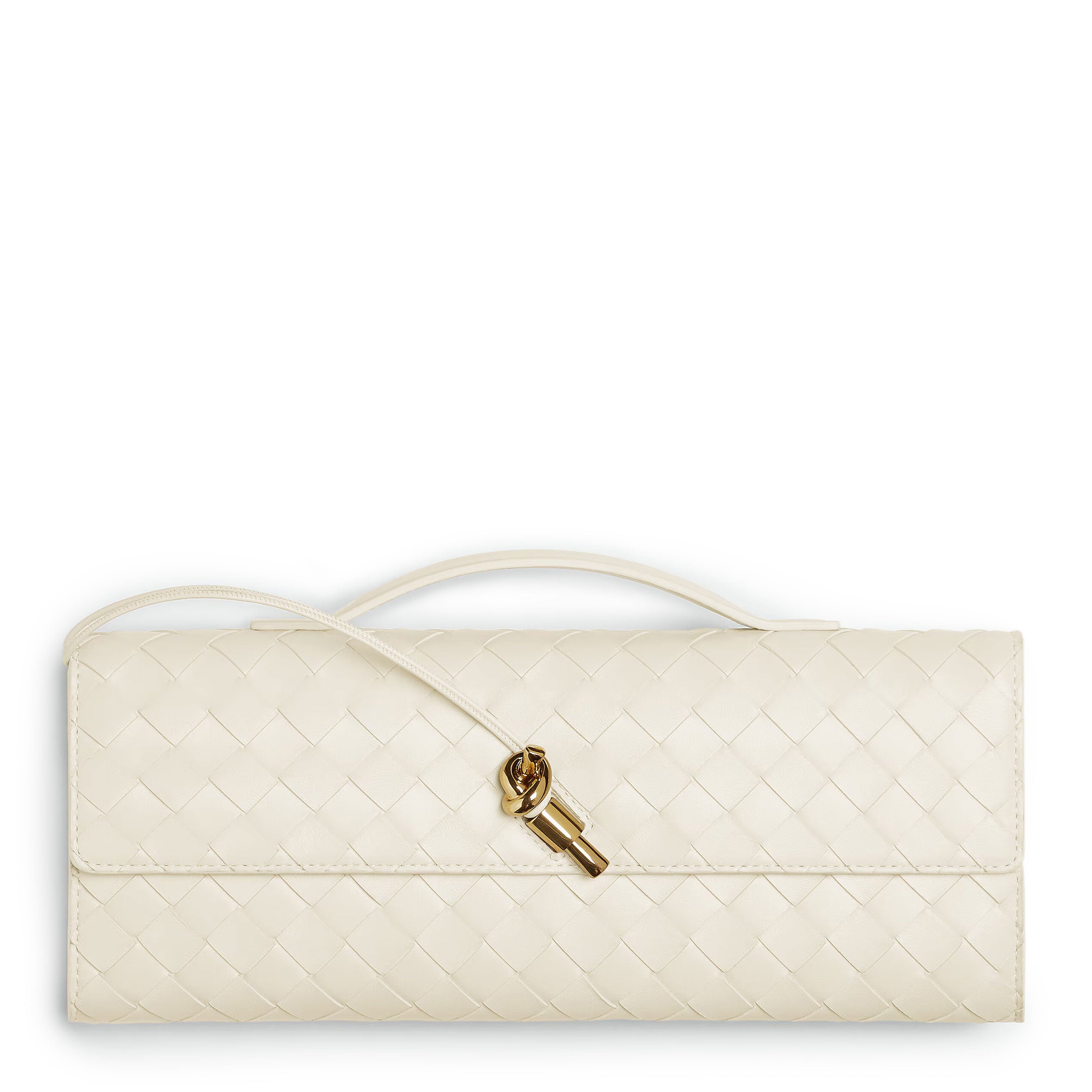 Clutch with handle realised with Intrecciato craftsmanship in soft lambskin leather