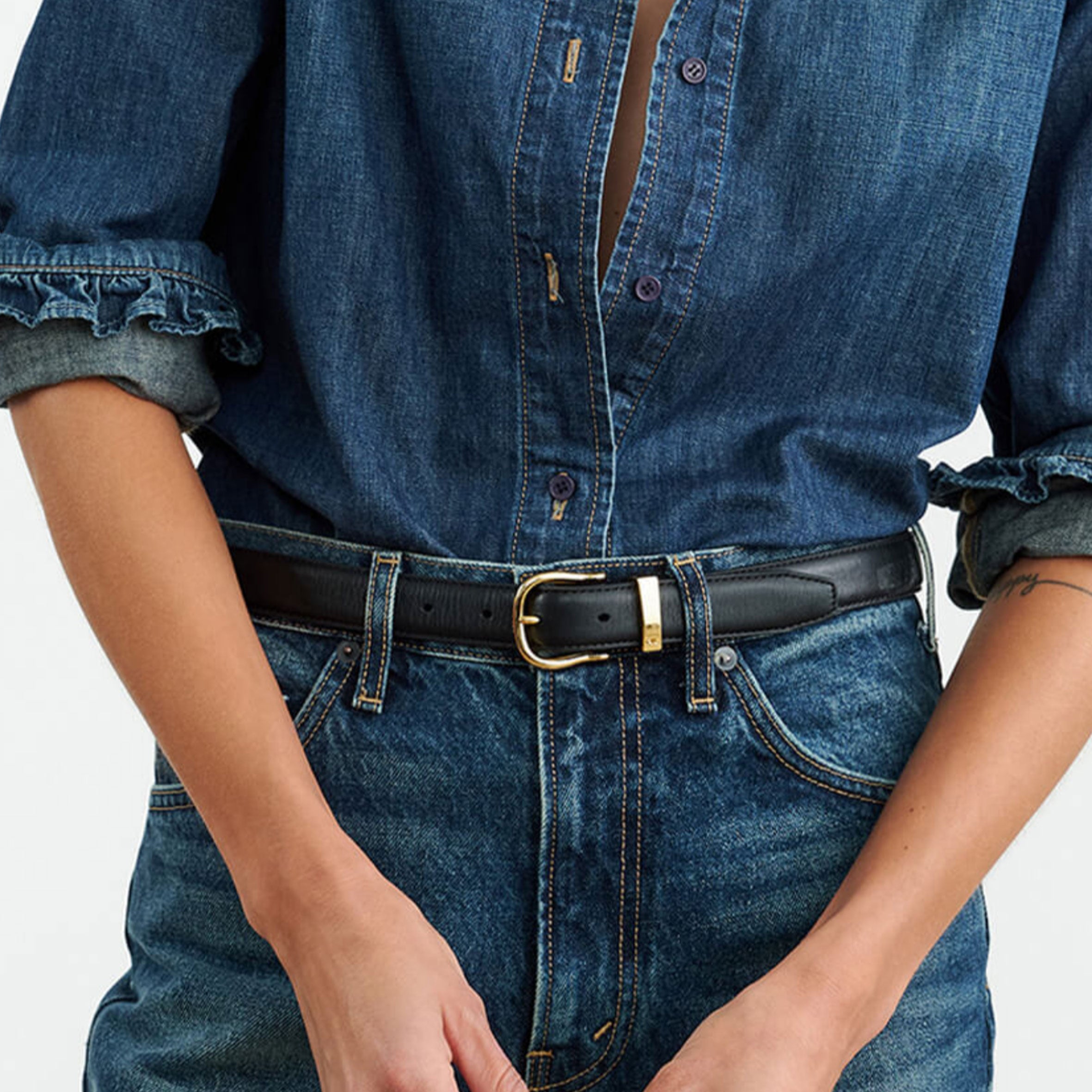 Designed with the modern women in mind. Pair with either your favorite pair of denim jeans or dress pants, the elevated ease and versatility of the Louise belt makes it the perfect accessory to pull together just about any look. Made in Italy from fine Italian leather with shiny brass buckle.
