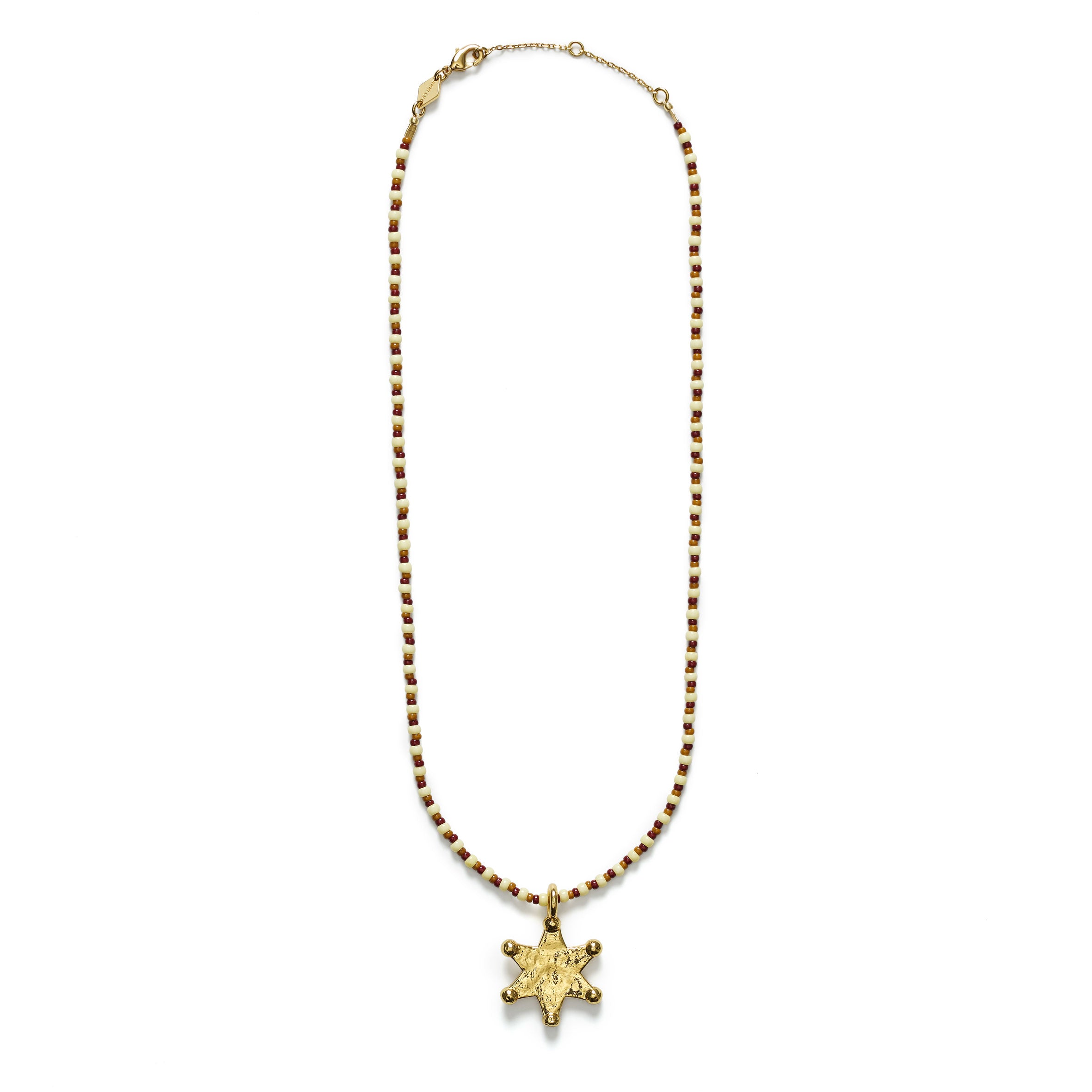 Do you feel lucky? Well, you should, if you are wearing our Lucky Star. Golden-brown beads with a starry pendant. Lucky Star is a perfect mix of western charm and rock’n’roll.