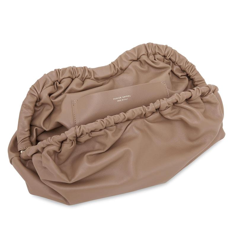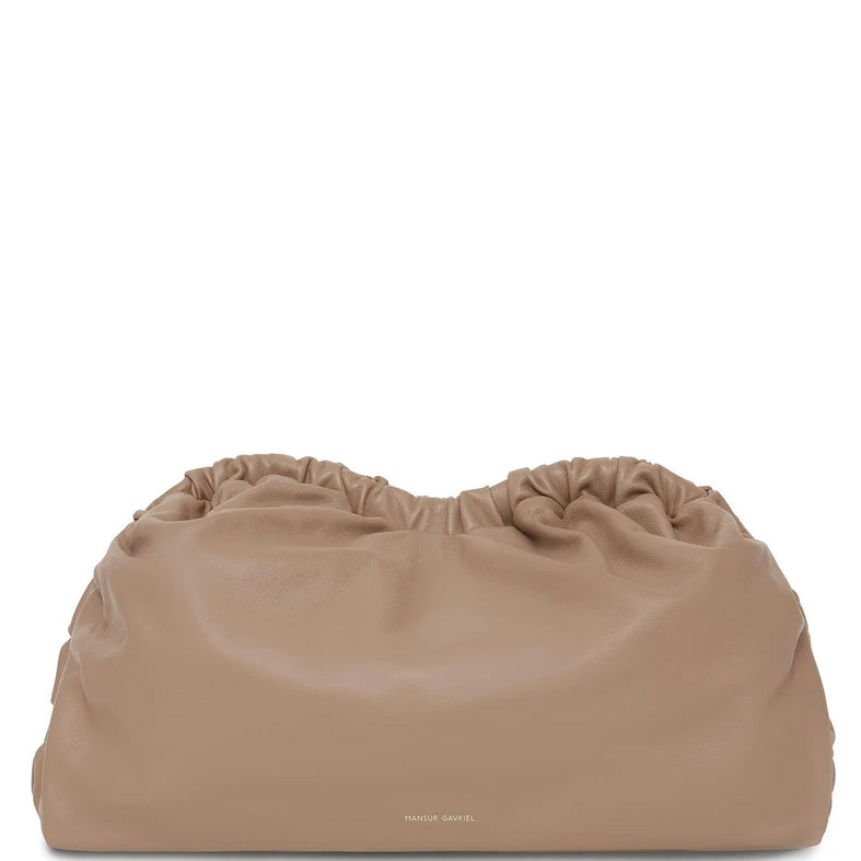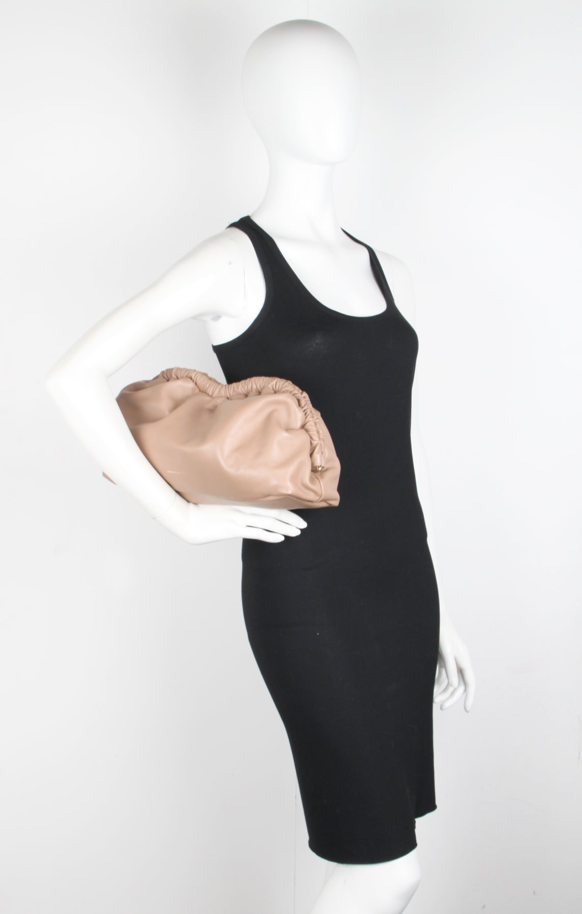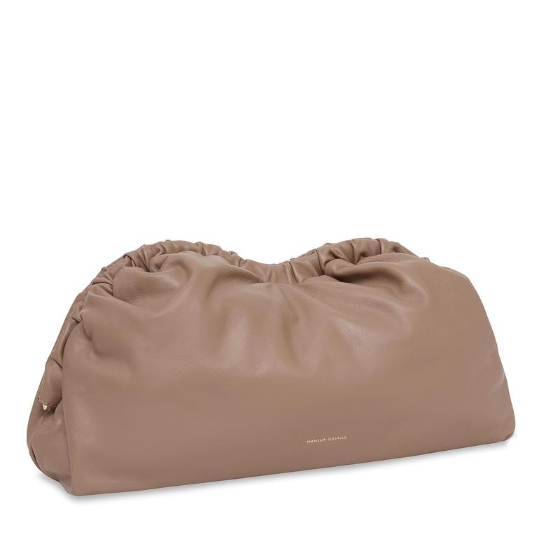 Soft supple lamb leather is crafted into a slouchy, cloud-like shape with a ruched magnetic closure to create this day-to-night clutch. The matching leather interior features a pocket and gold foil stamp.