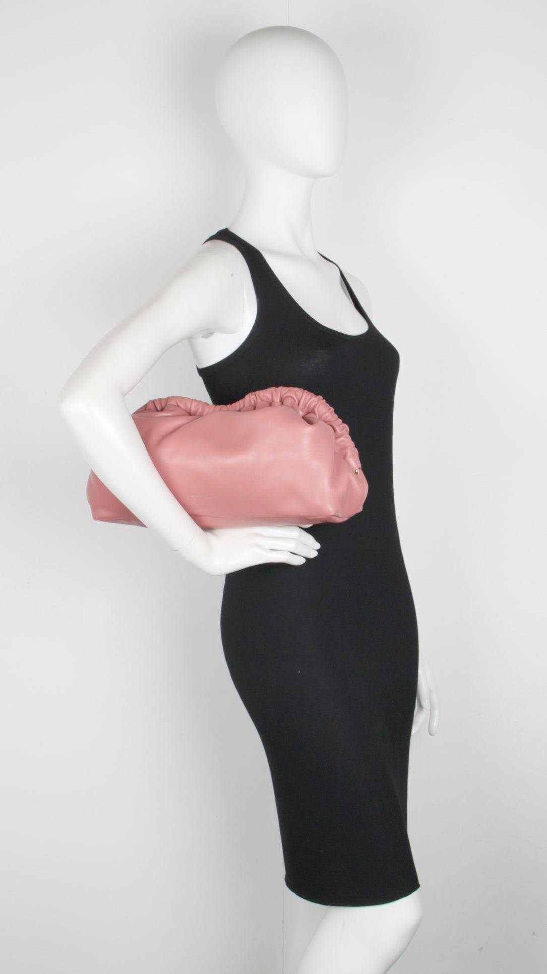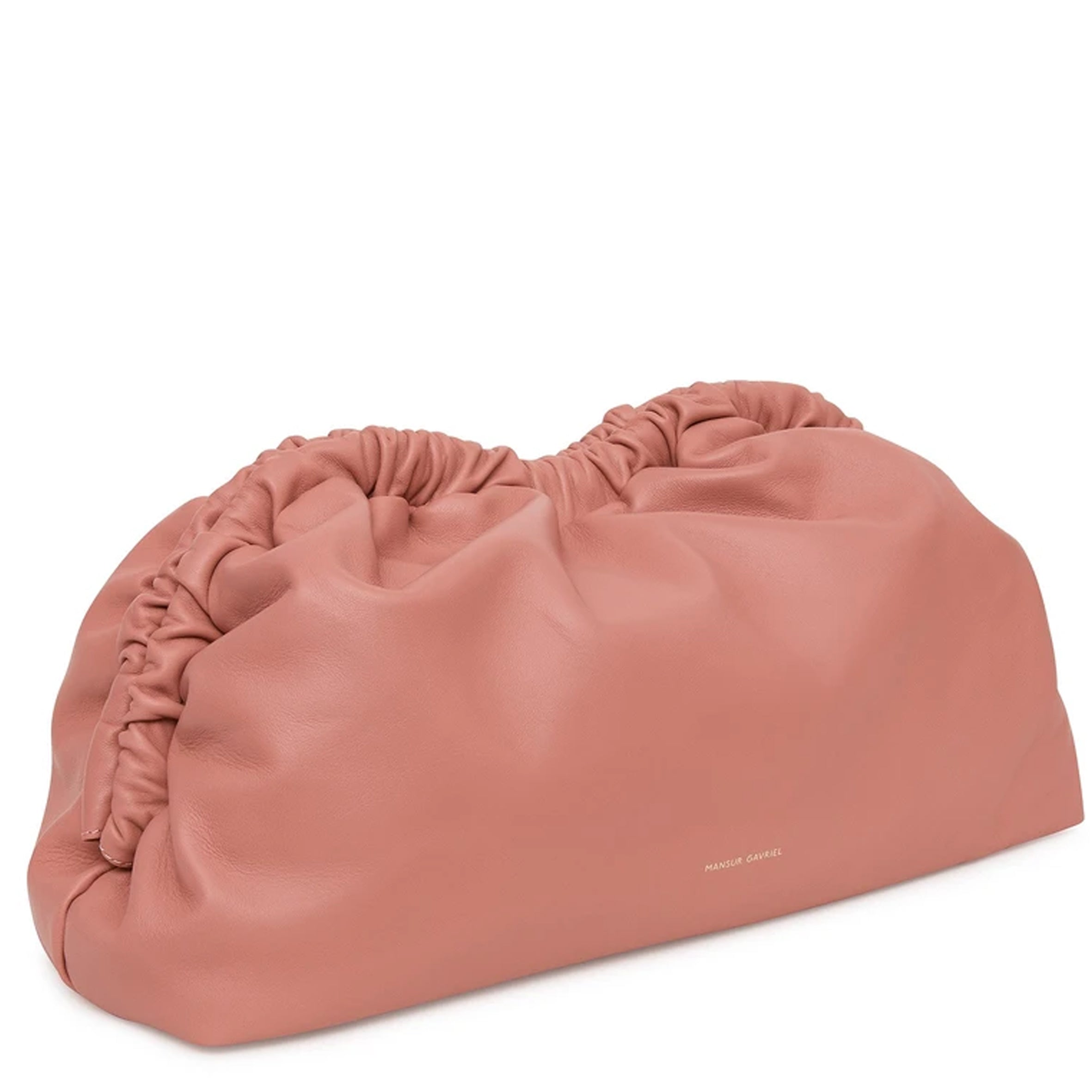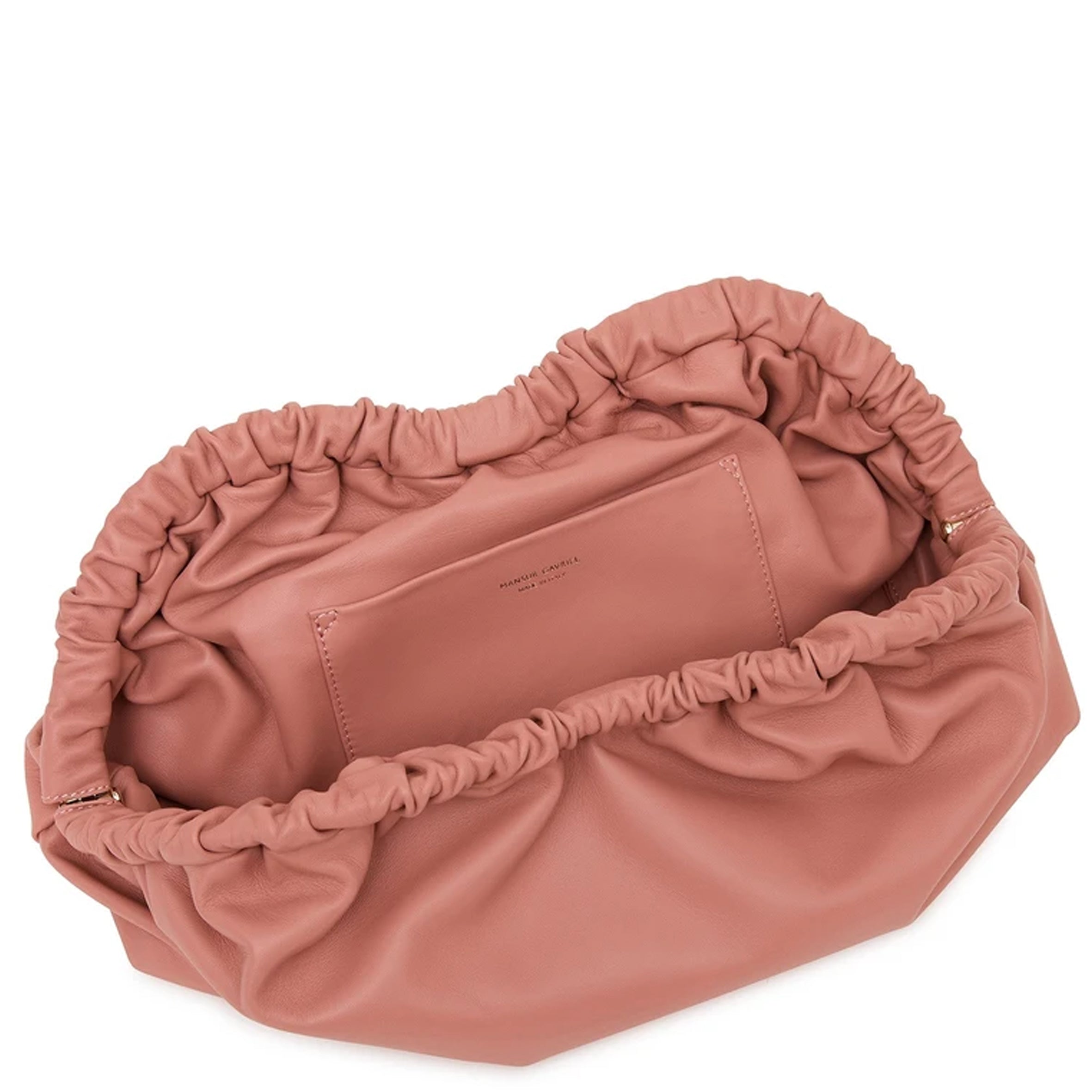 Soft supple lamb leather is crafted into a slouchy, cloud-like shape with a ruched magnetic closure to create this day-to-night clutch. The matching leather interior features a pocket and gold foil stamp.