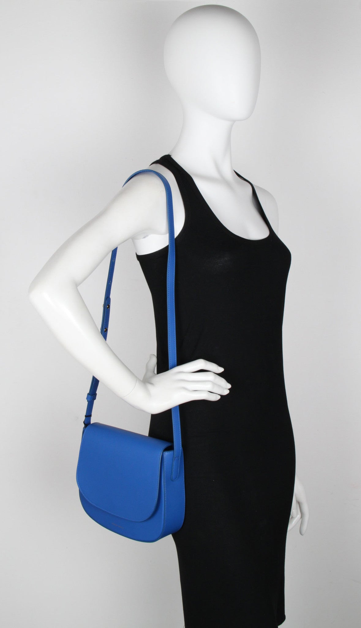 Italian tanned calf leather crossbody with beige canvas interior and an interior pocket. Magnetic closure and adjustable strap.