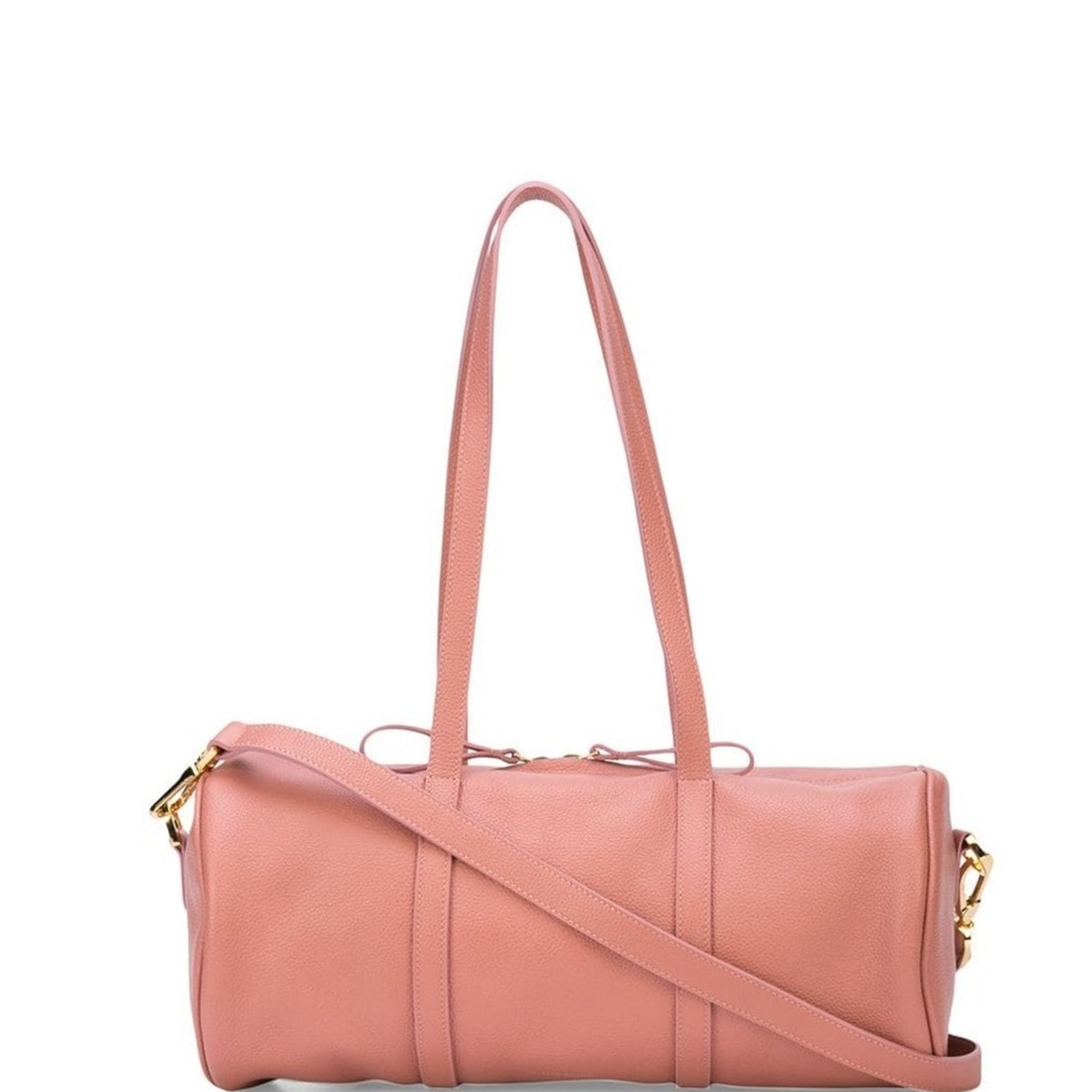 Italian pebble leather blush mini mini duffle bag with blush lamb interior. Removable shoulder strap.