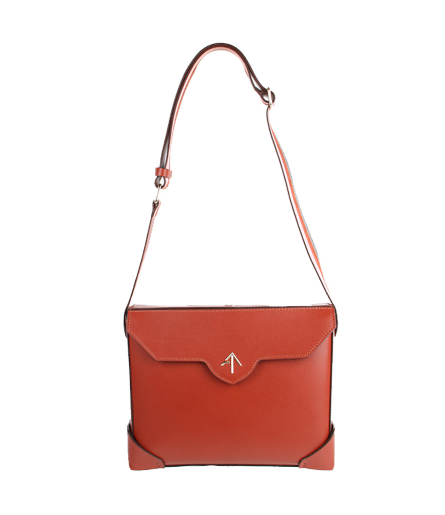 The Manu Atelier Bold satchel is structured bag with a striped adjustable long strap. This bag has one big open pocket with an interior zip compartment and finished with a magnetic flap closure.