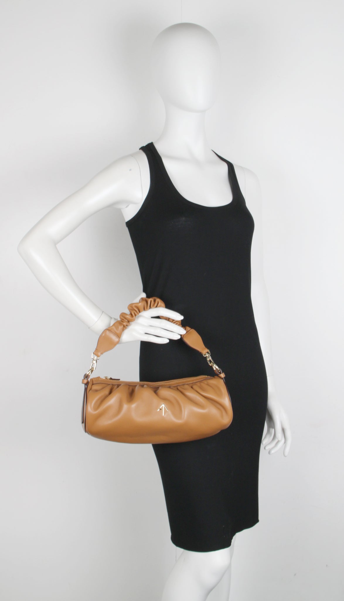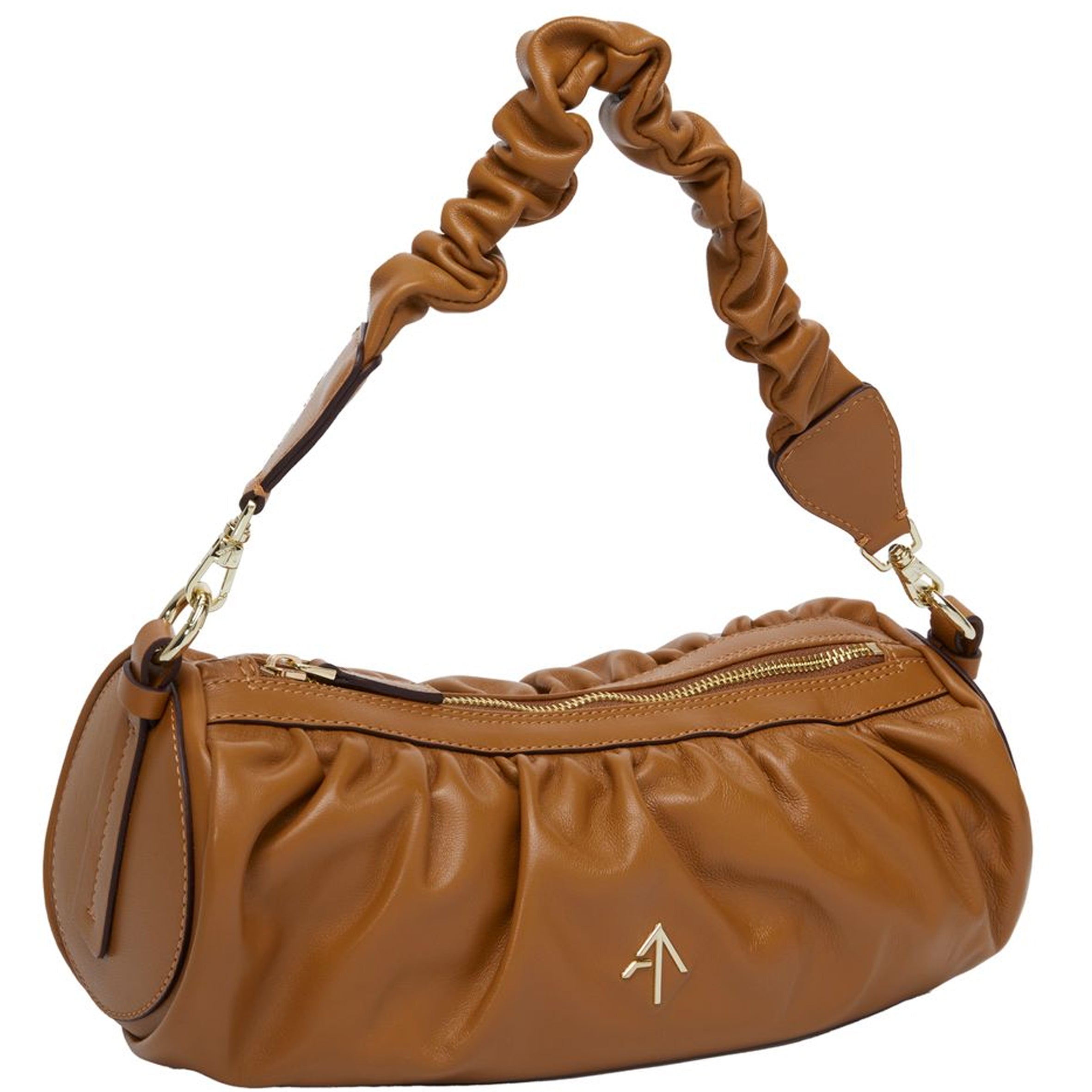This Manu Atelier Cylinder bag features a top zip fastening, gold tone metal logo detailing at the front, a detachable chain shoulder strap and additional gold tone hardware. Constructed from smooth leather.