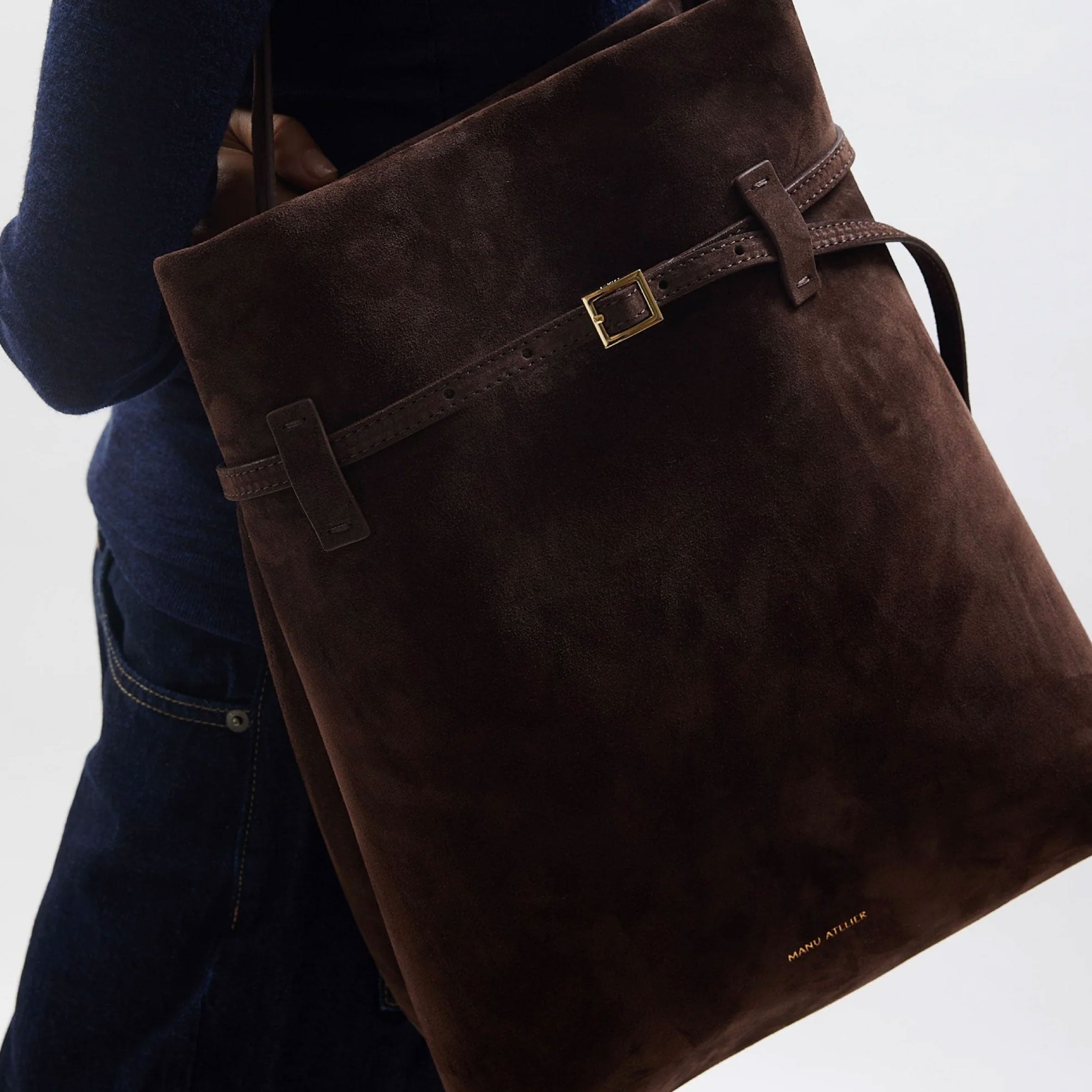 This new style from the Resort24 collection places simplicity, craftsmanship, and sleek details at the forefront. With its spacious interior consisting of a zipped pocket and four card slots, the Tote du Jour bag can fit a 13’’ MacBook Pro and all your everyday essentials. The adjustable leather belt with light gold-toned metal buckle adds a touch of sleek distinction. Magnet closure offers ease of use. The signature light-gold toned “Manu Atelier” logo is embossed on the bottom center of the front panel. It’s a statement piece embodying a combination of functionality and sophistication.