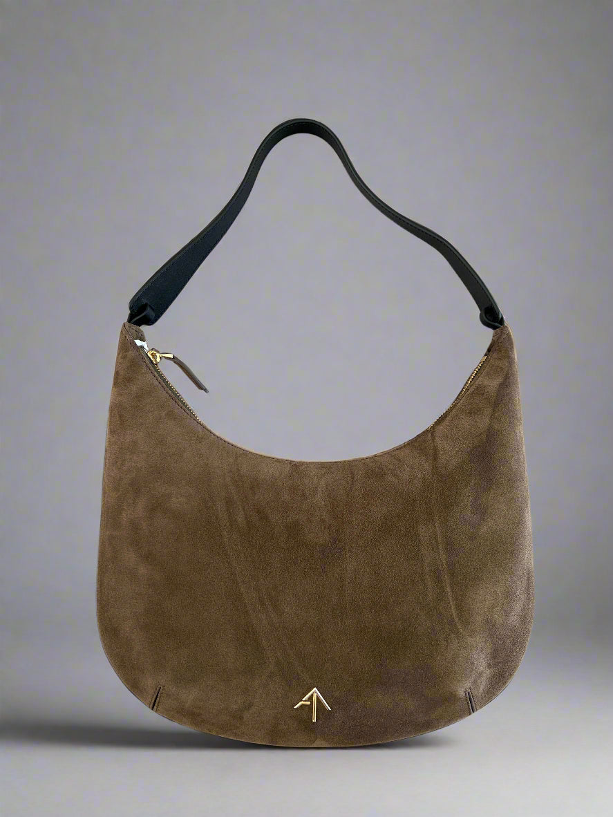 Introducing the latest addition to the Manu Atelier signature pieces, the Hobo. A fusion of simplicity and artistry crafted to effortlessly fit into your daily life. With a rounded shape, leather handle, and a zip closure, this statement piece exudes both practicality and elegance, making it a definitive expression of modern sophistication.