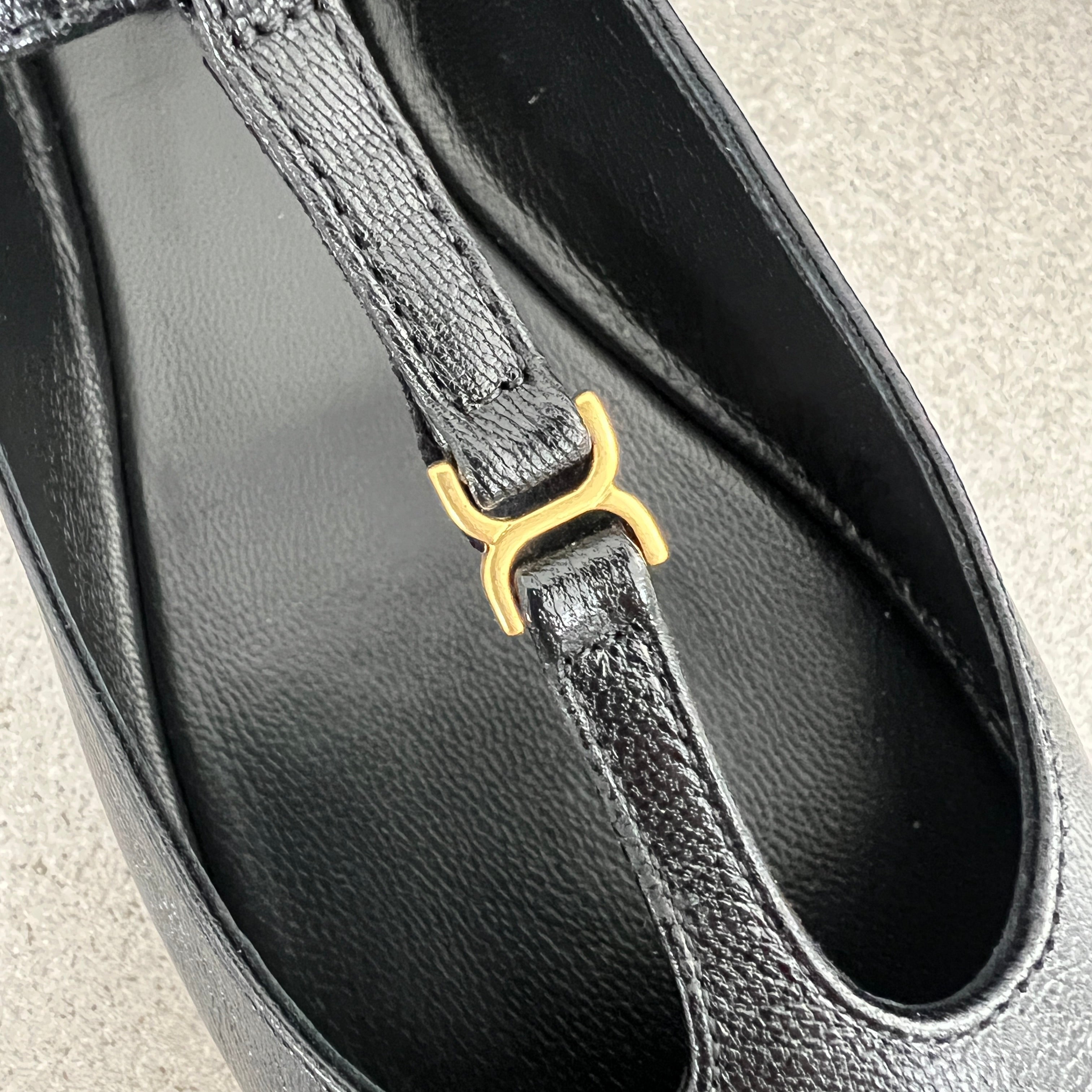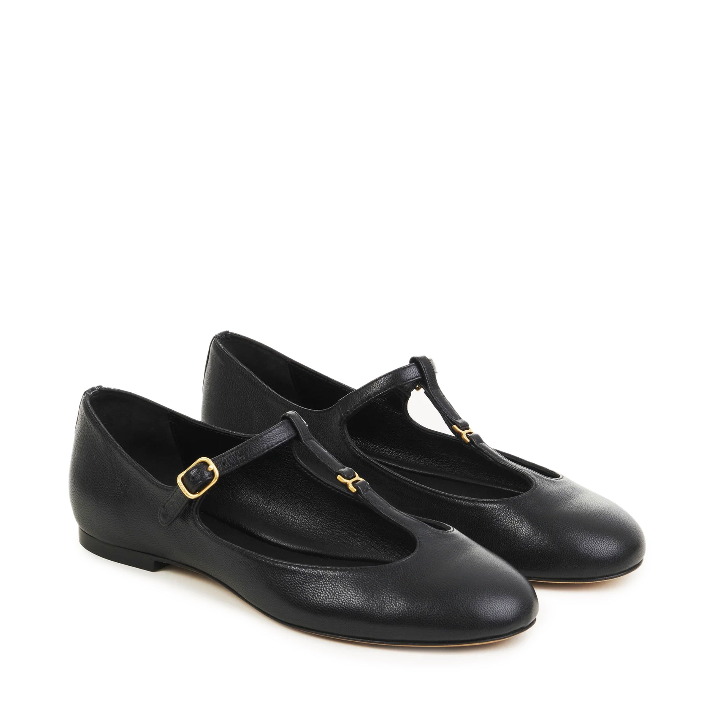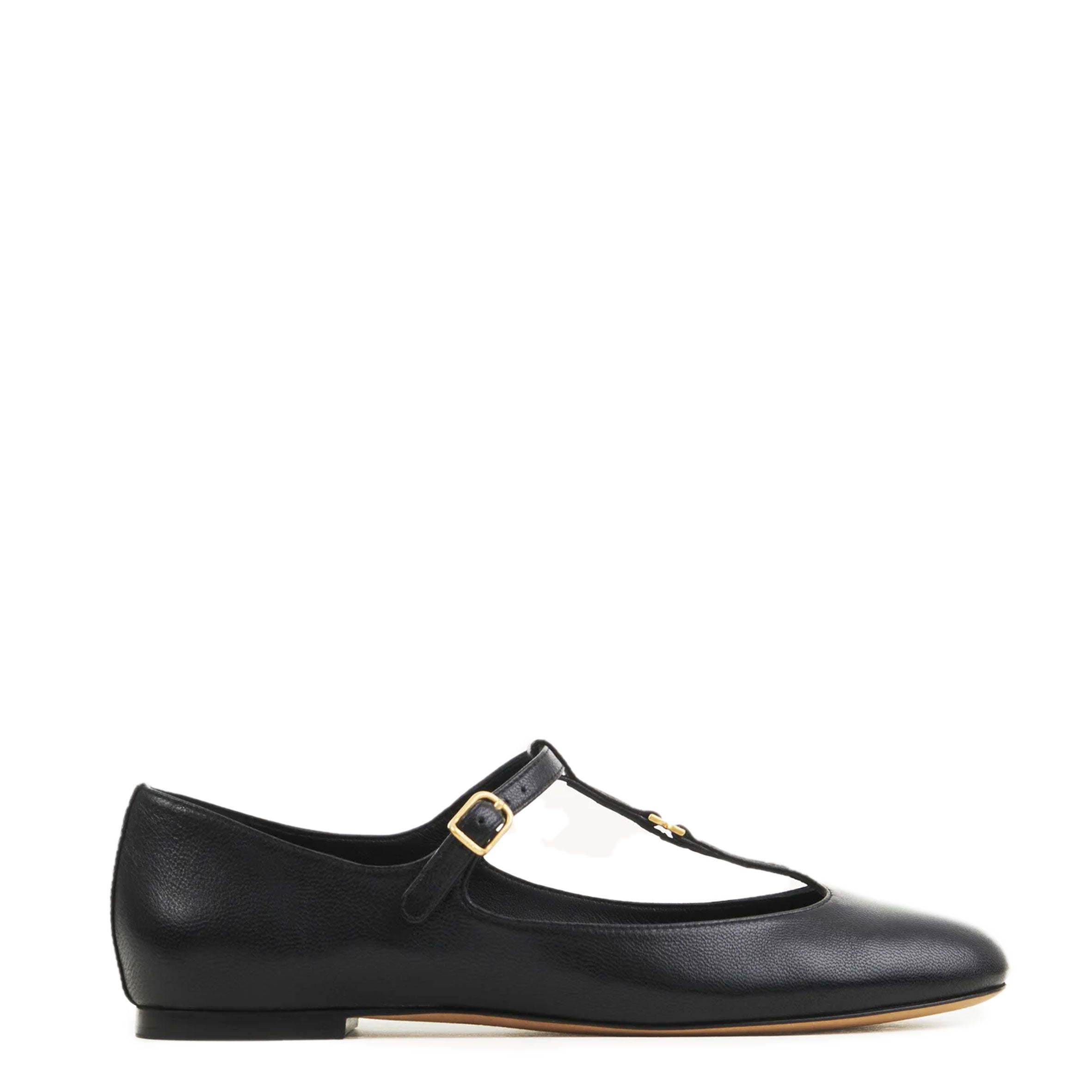 Crafted from nappa goatskin, this revisited Marcie ballerina pairs a Mary Jane silhouette with an almond toe shape for a Parisian attitude.