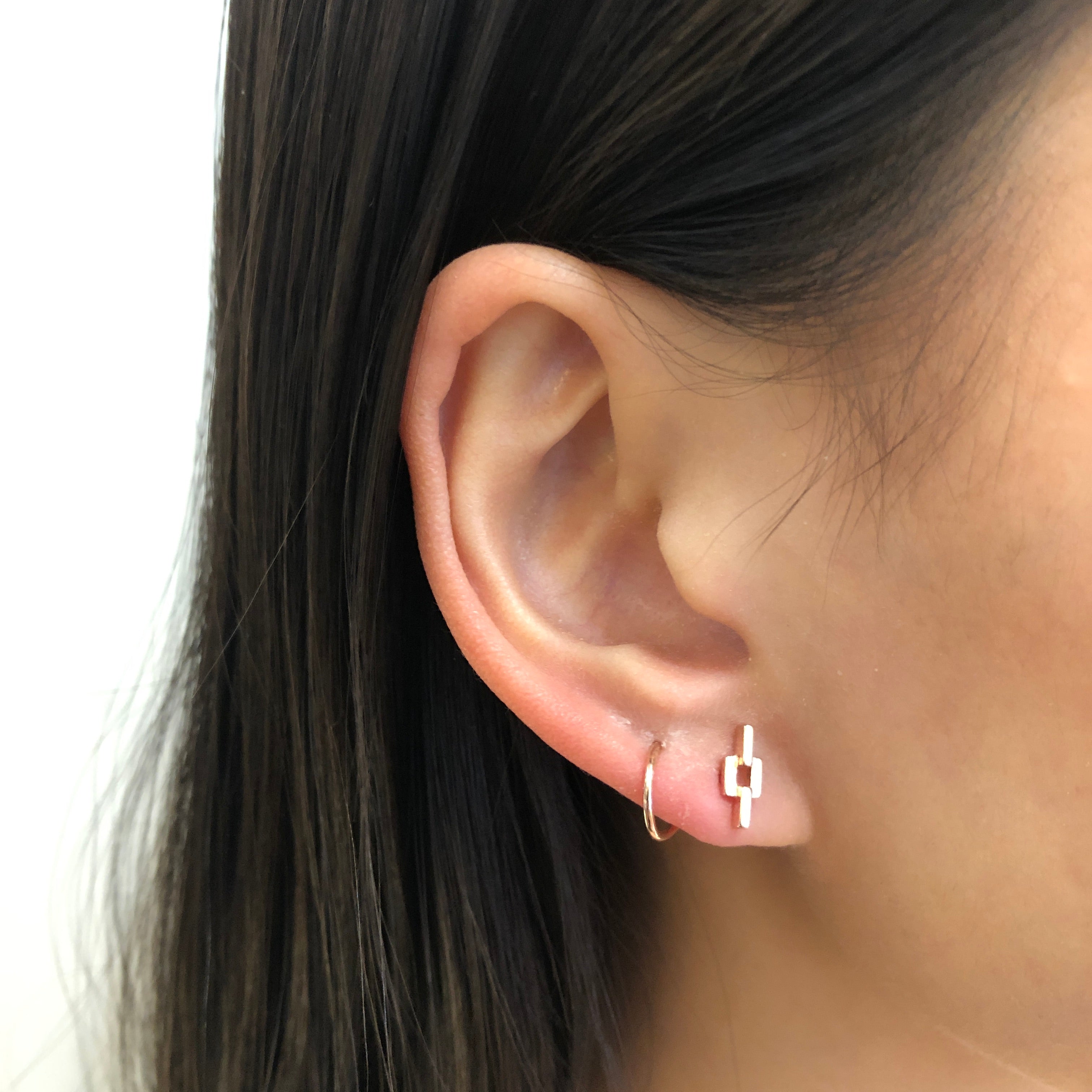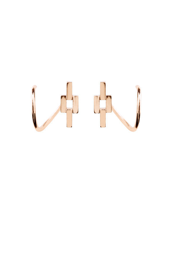Aurore Twirl Earring in high polished rose gold by Maria Black. Rose Gold plated 925 Sterling silver earring.