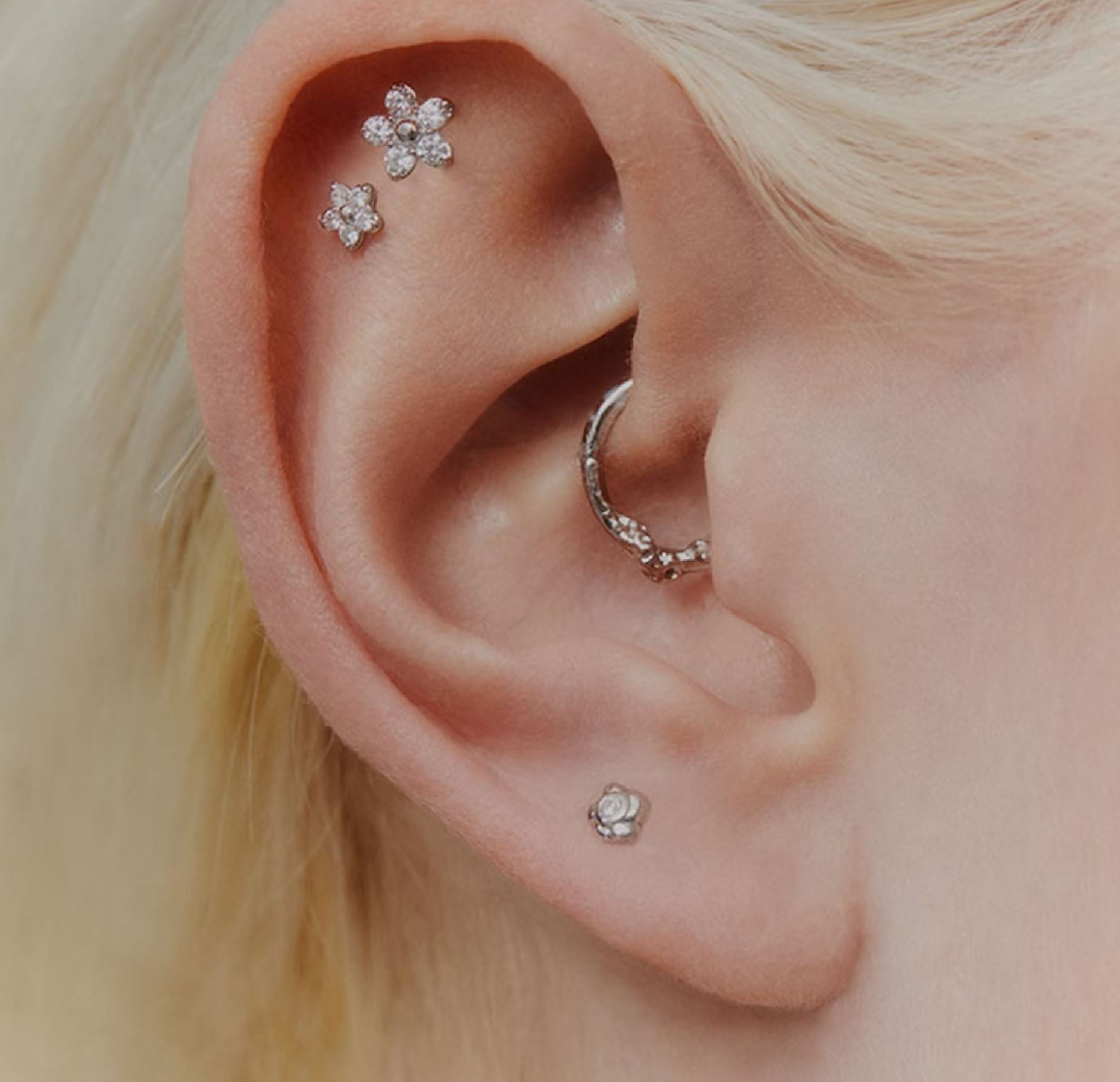 Dainty and cute, this piece packs a punch featuring 5 lab-grown diamonds making up the petals, encased in 14k IMPACT gold. (smaller daisy in photo worn)