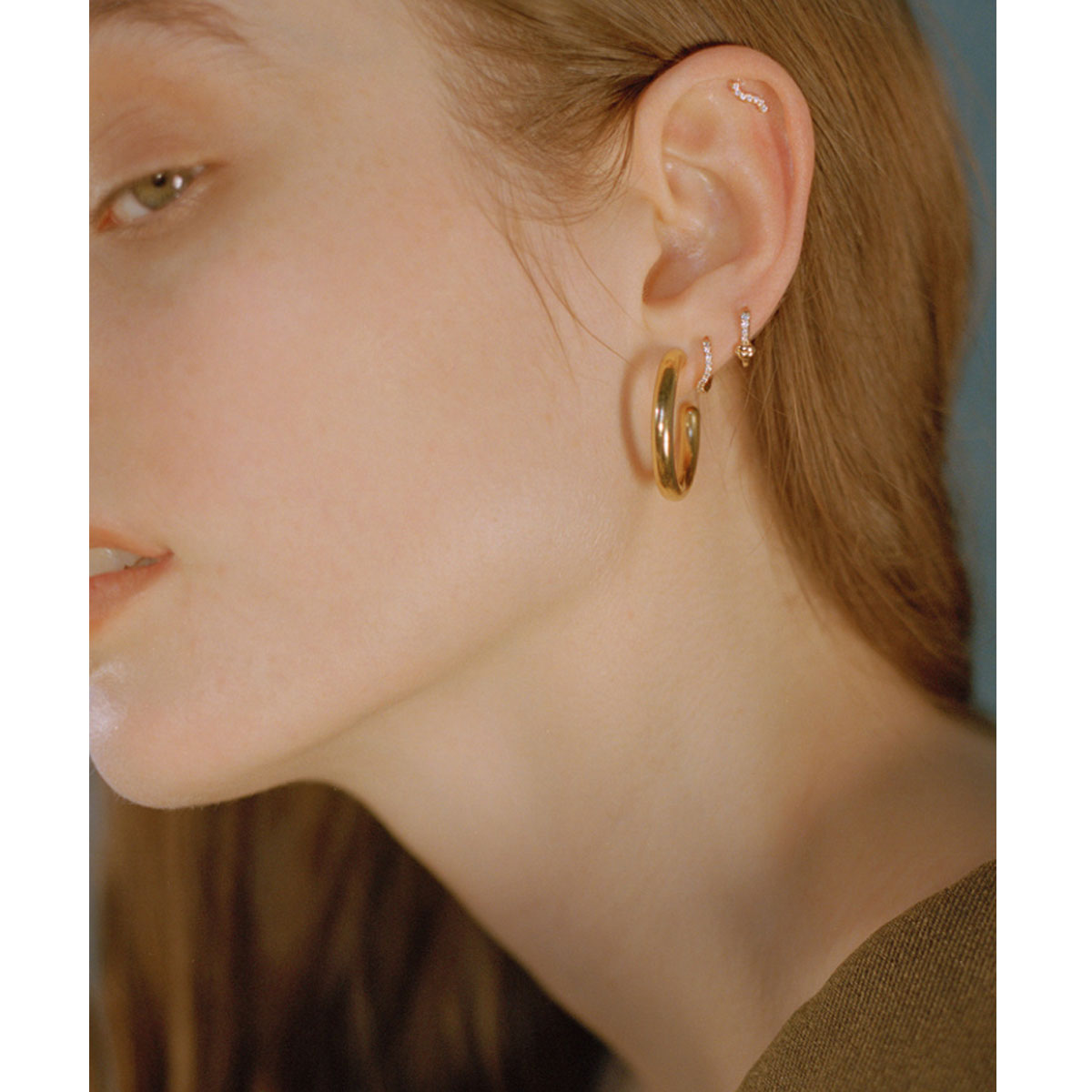 An elegant and organic wave-shaped earring in the company of seven shiny diamonds. Stands out as an upper lobe earring and would look especially nice as a stacked flat piercing with two next to each other.