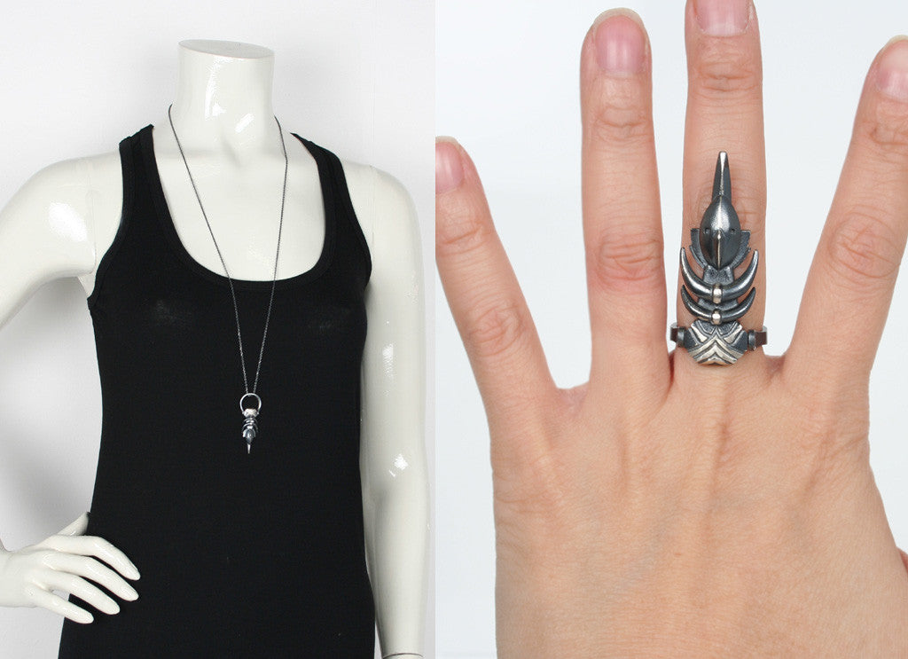 Goma Necklace /Ring, Oxidized Silver
