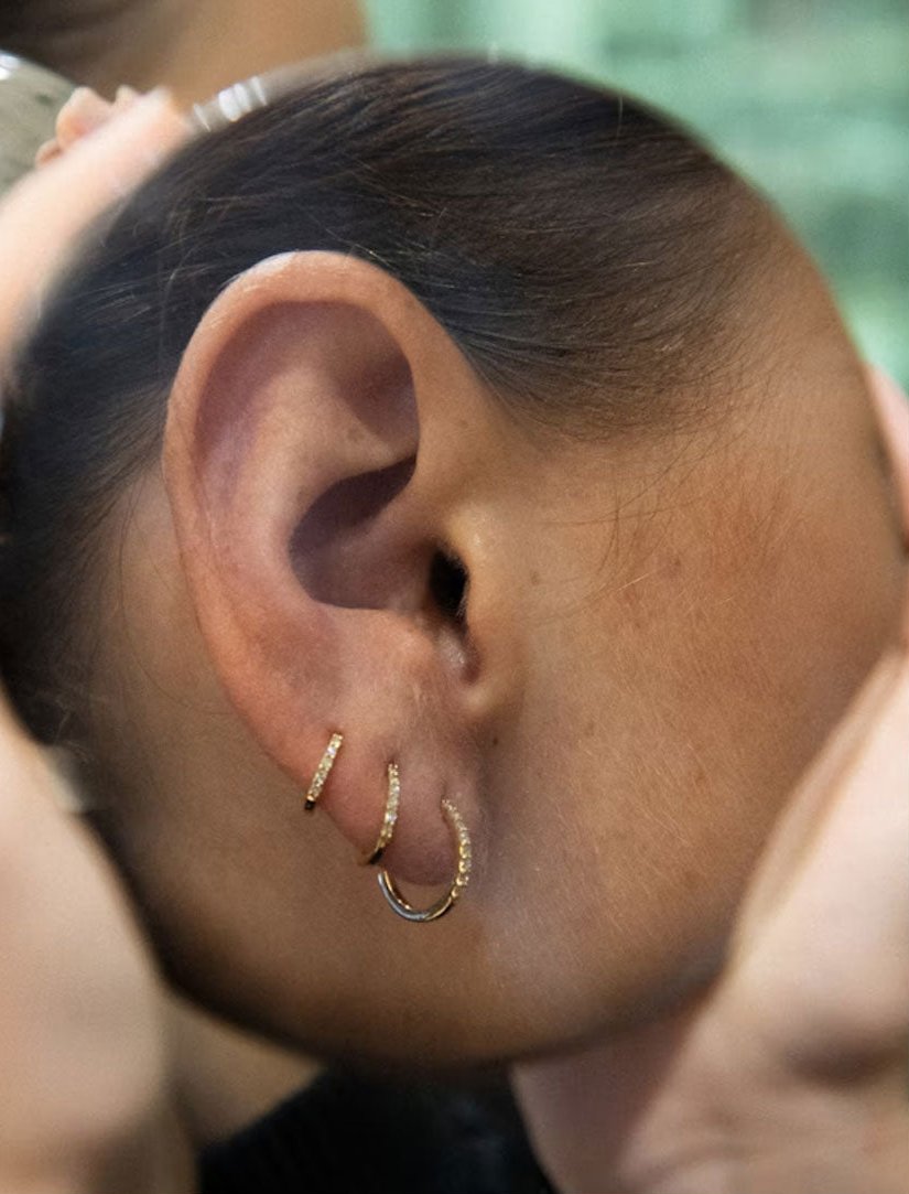 Lamarr Huggie is a fine and delicate piece filled with flirty diamonds for you to always look your best. Diamonds on front only (back of the hoop is smooth finish).