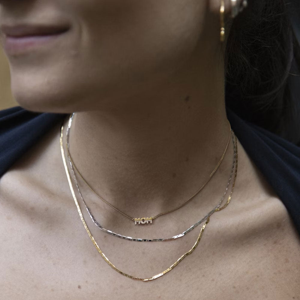 Your new all time favourite: the MOM necklace, features the same limited edition two-tone look as the limited MOM and DAD rings. It's created with a panzer chain as well as a slider lock to adjust the length, perfectly fitting every look and occasion.