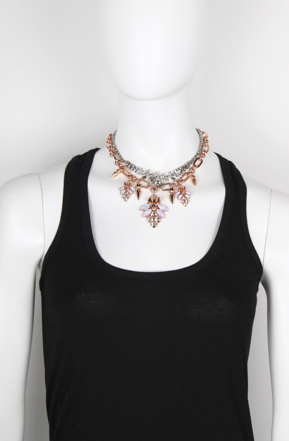 Layered Necklace with Crystal Clusters & Spikes, Rose Gold